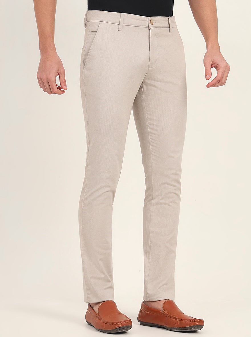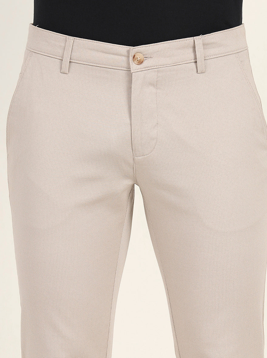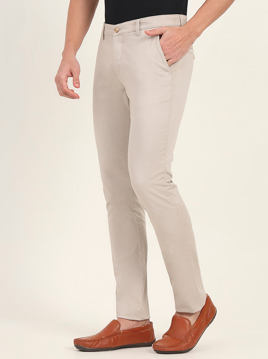 Light Grey Printed Super Slim Fit Casual Trouser | Greenfibre