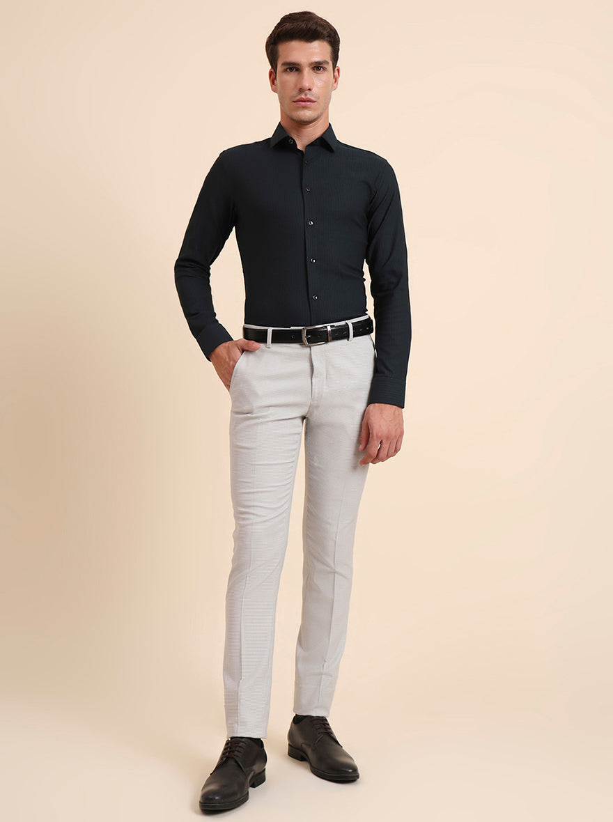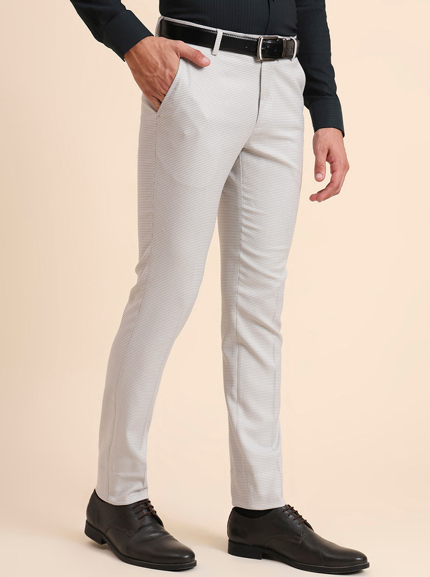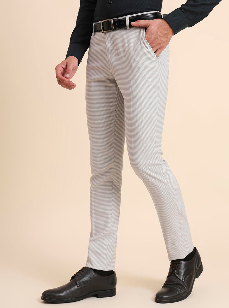 Light Grey Solid Super Slim Fit Formal Trouser | Greenfibre