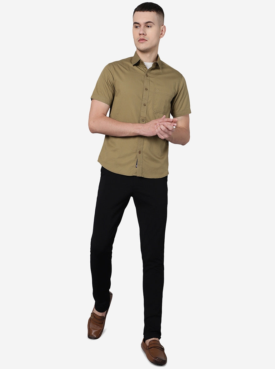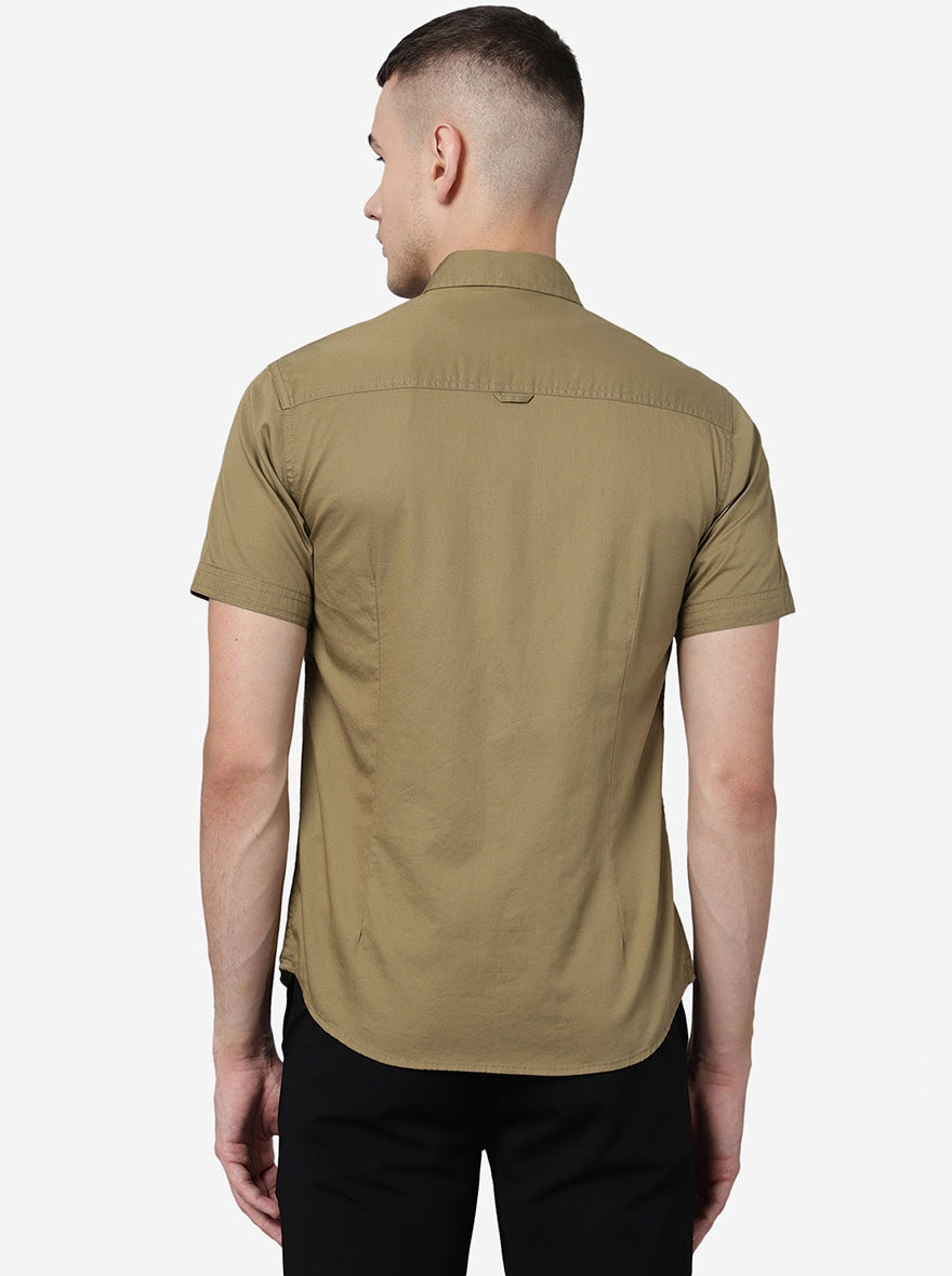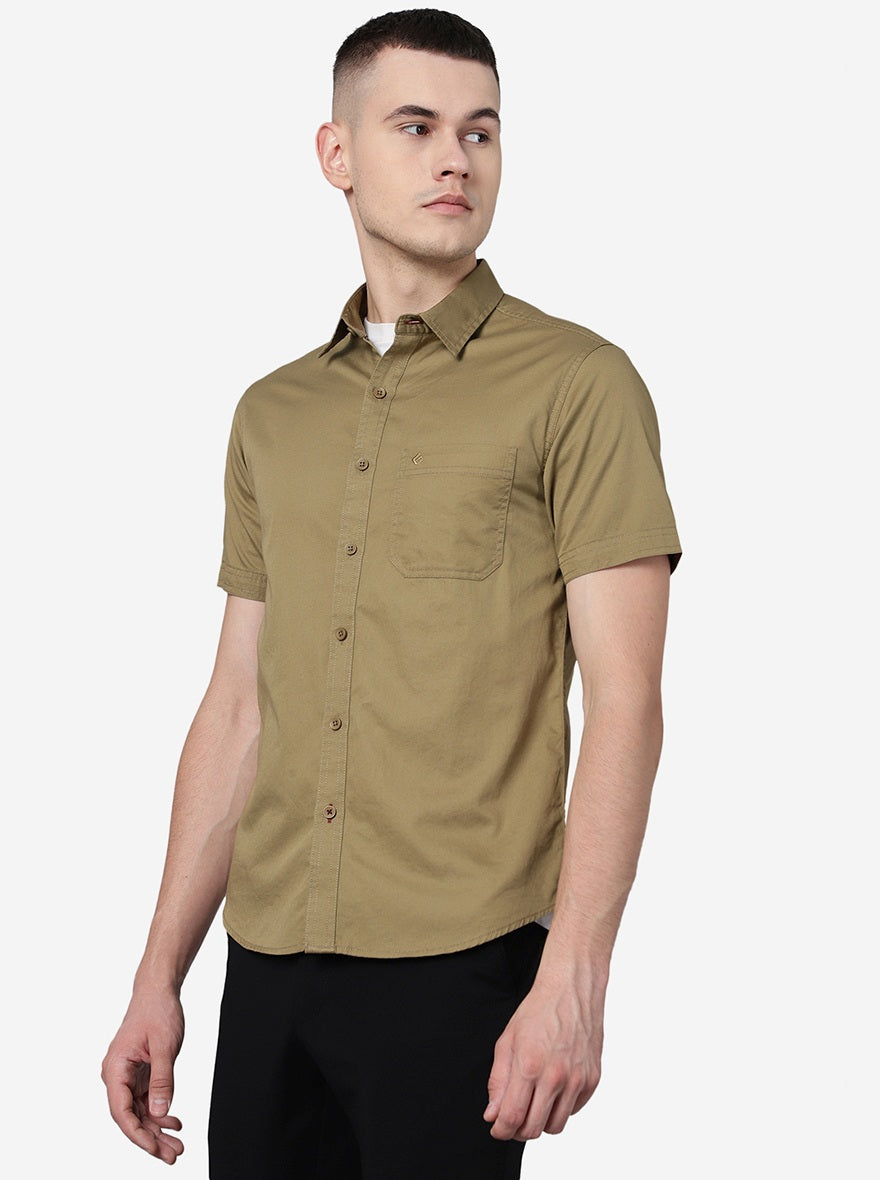 Light Olive Solid Slim Fit Casual Shirt | Greenfibre