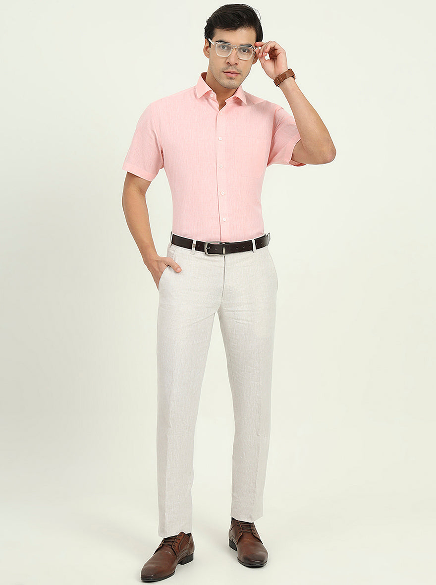 Light Pink Solid Regular Fit Formal Shirt | Greenfibre