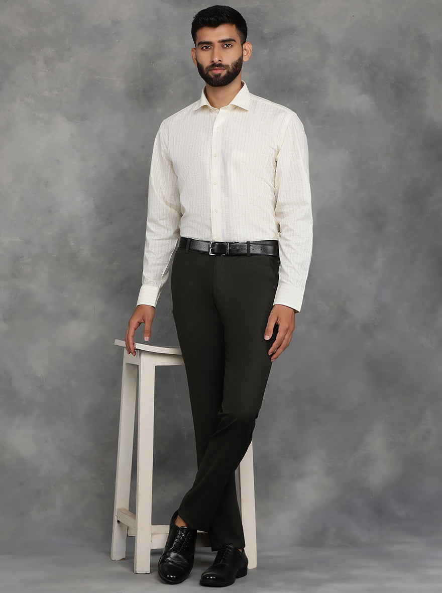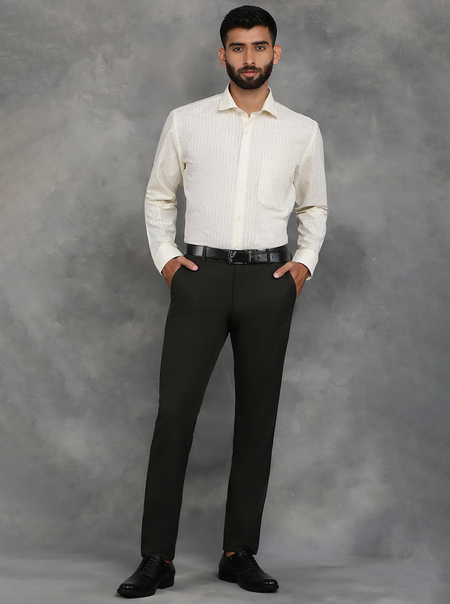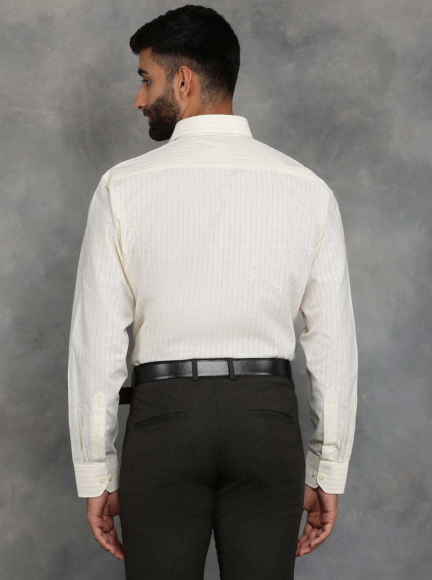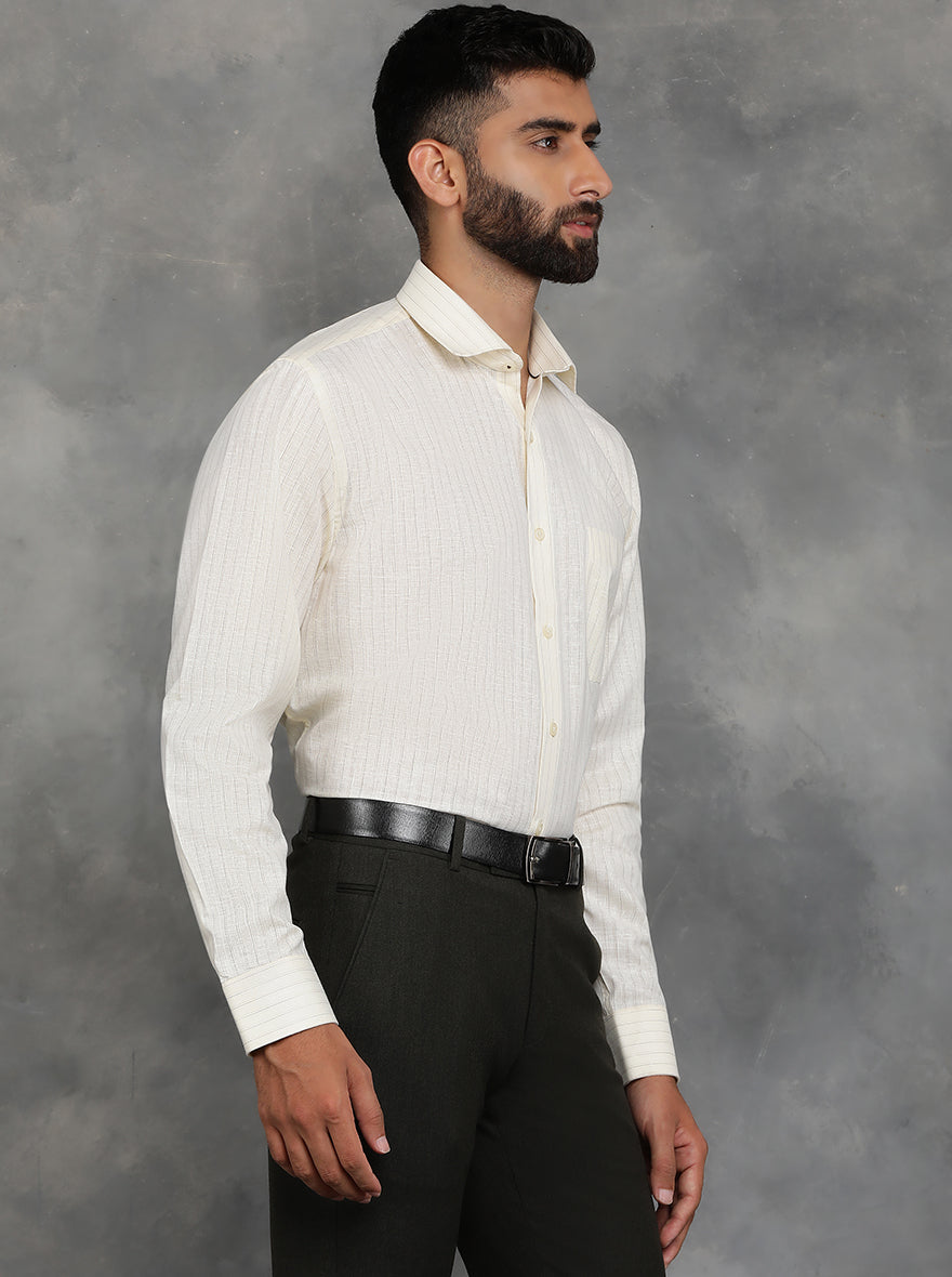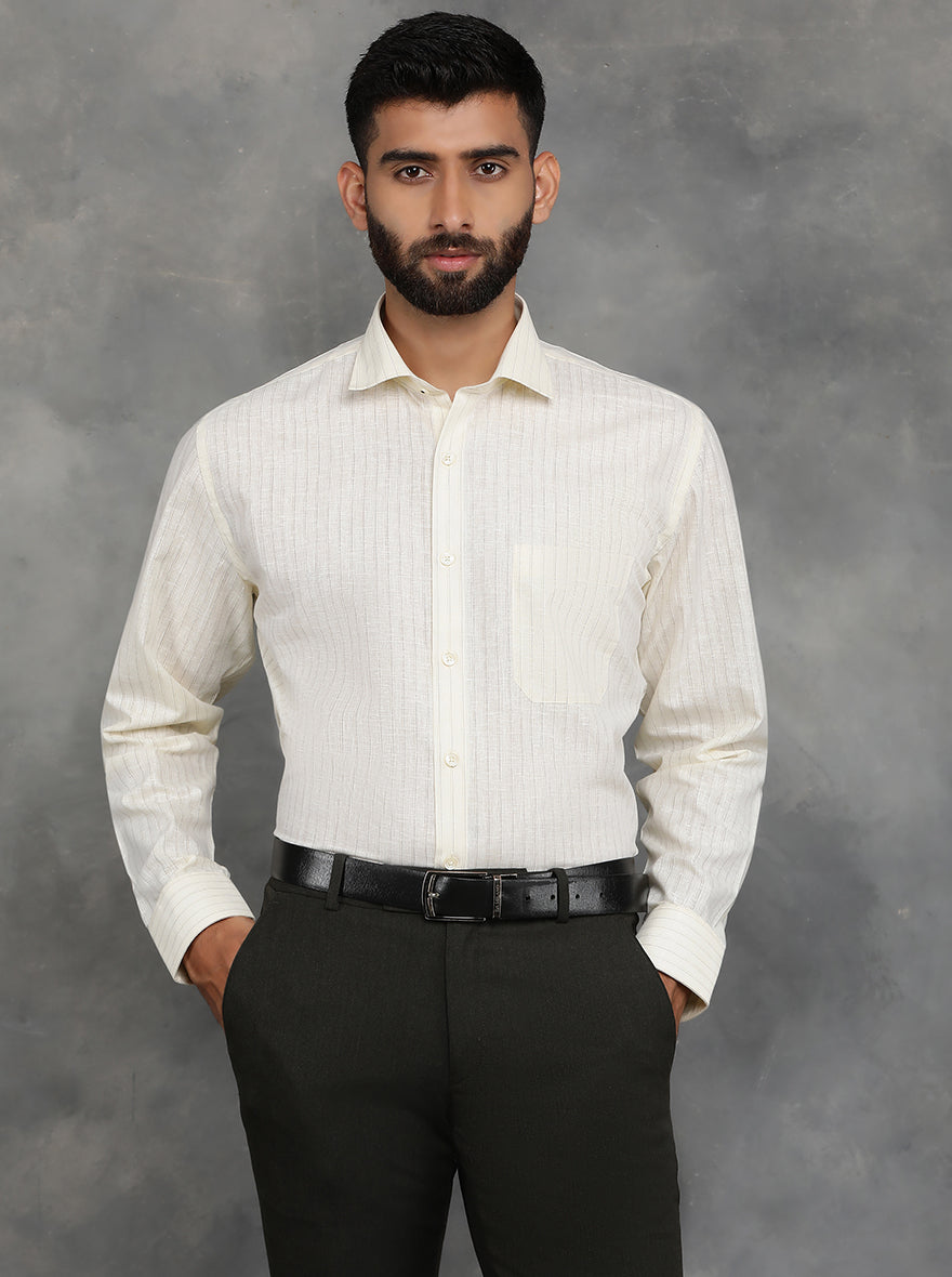 Light Yellow Striped Regular Fit Formal Shirt | GreenFibre