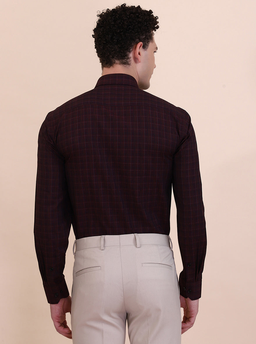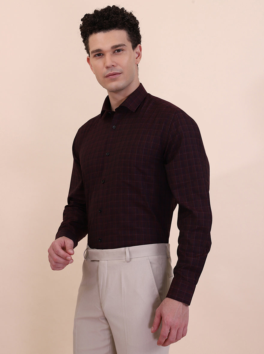 Maroon Checked Regular Fit Formal Shirt | Greenfibre