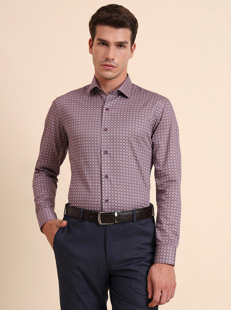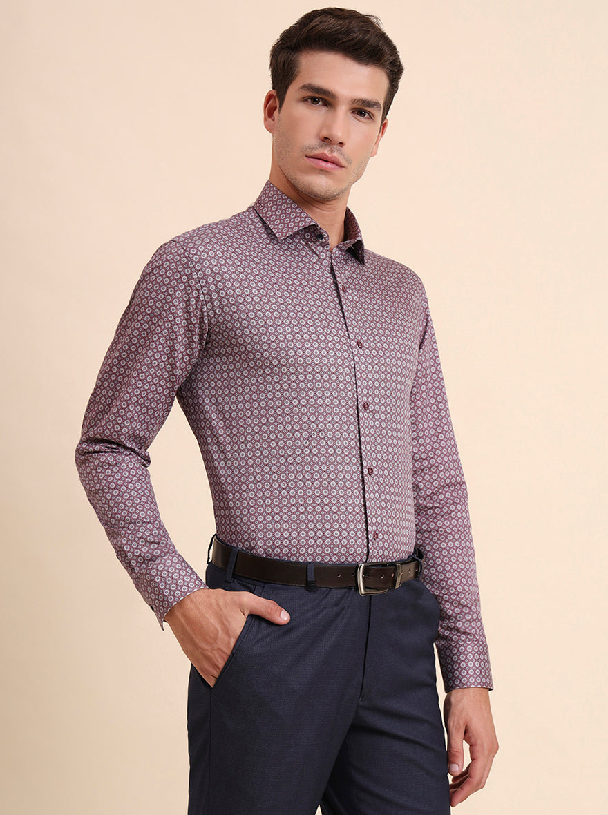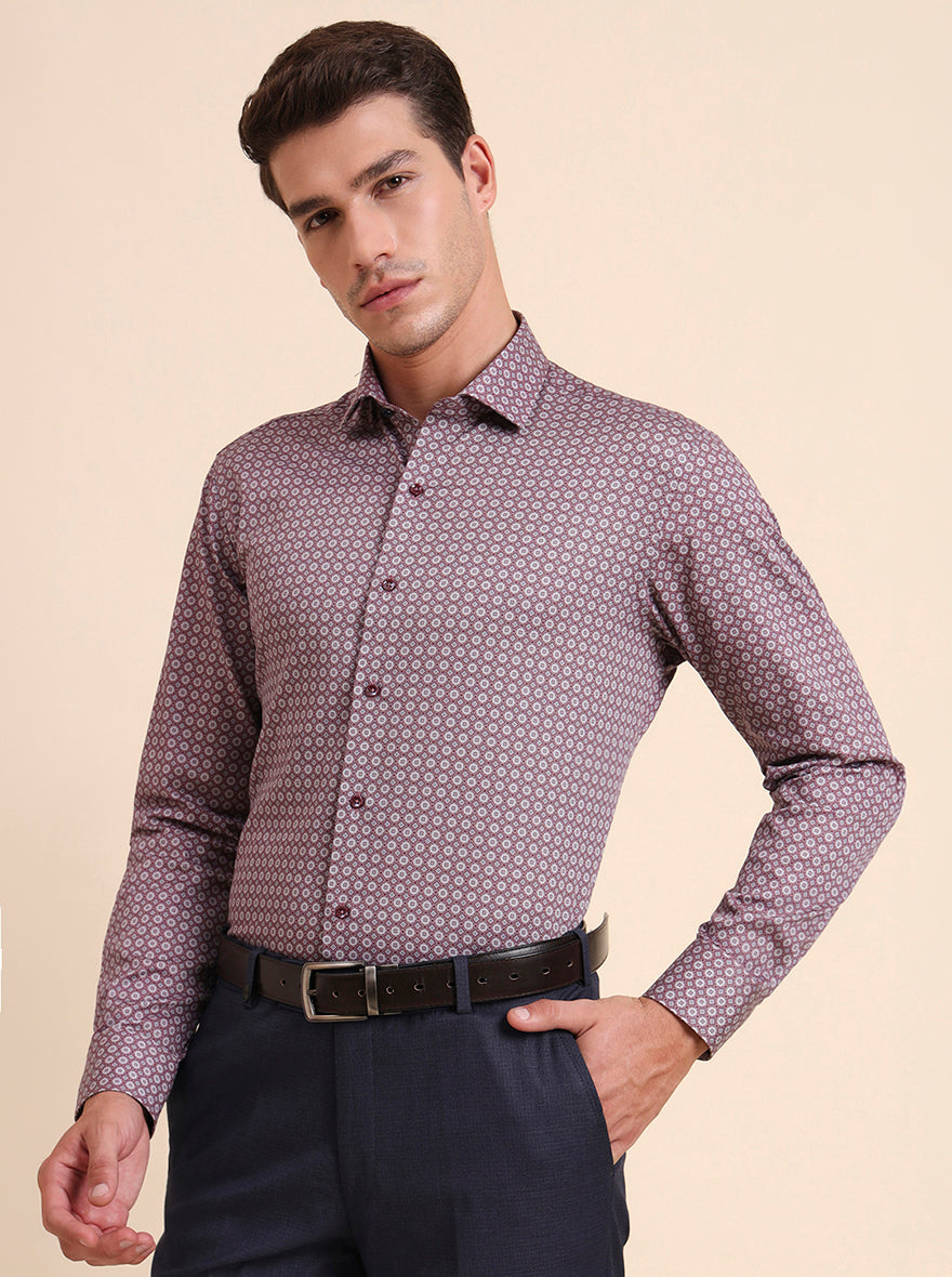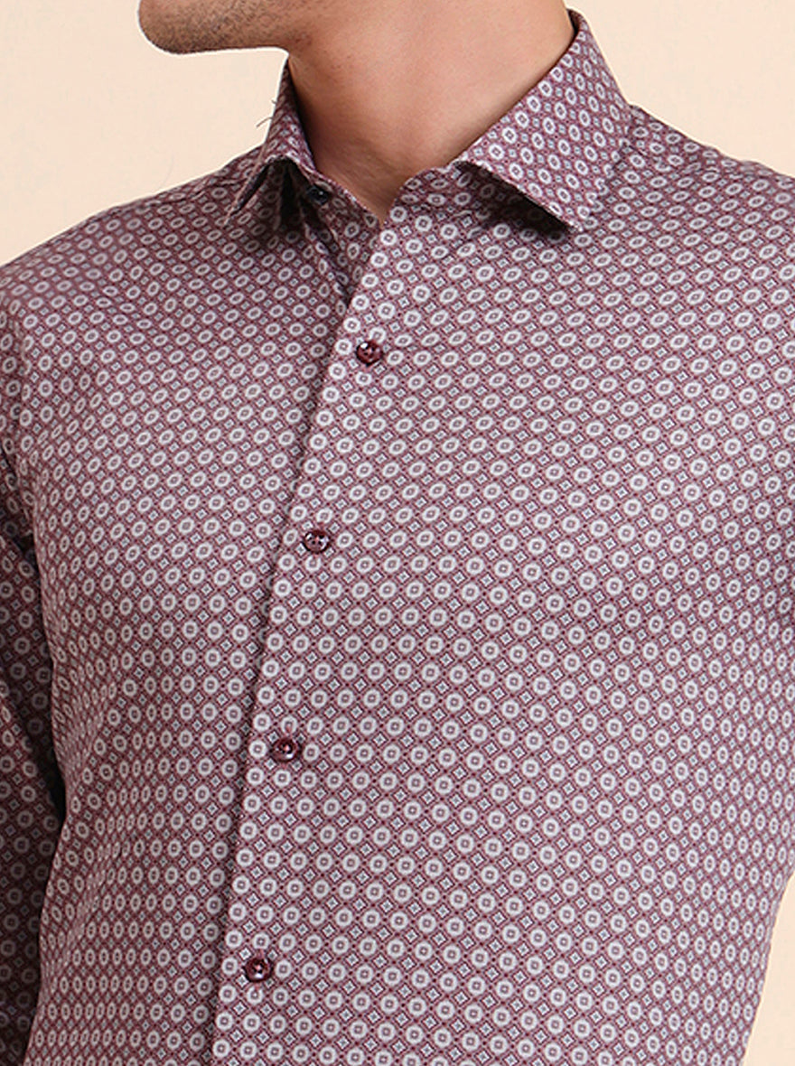 Maroon Printed Slim Fit Party Wear Shirt | GreenFiber
