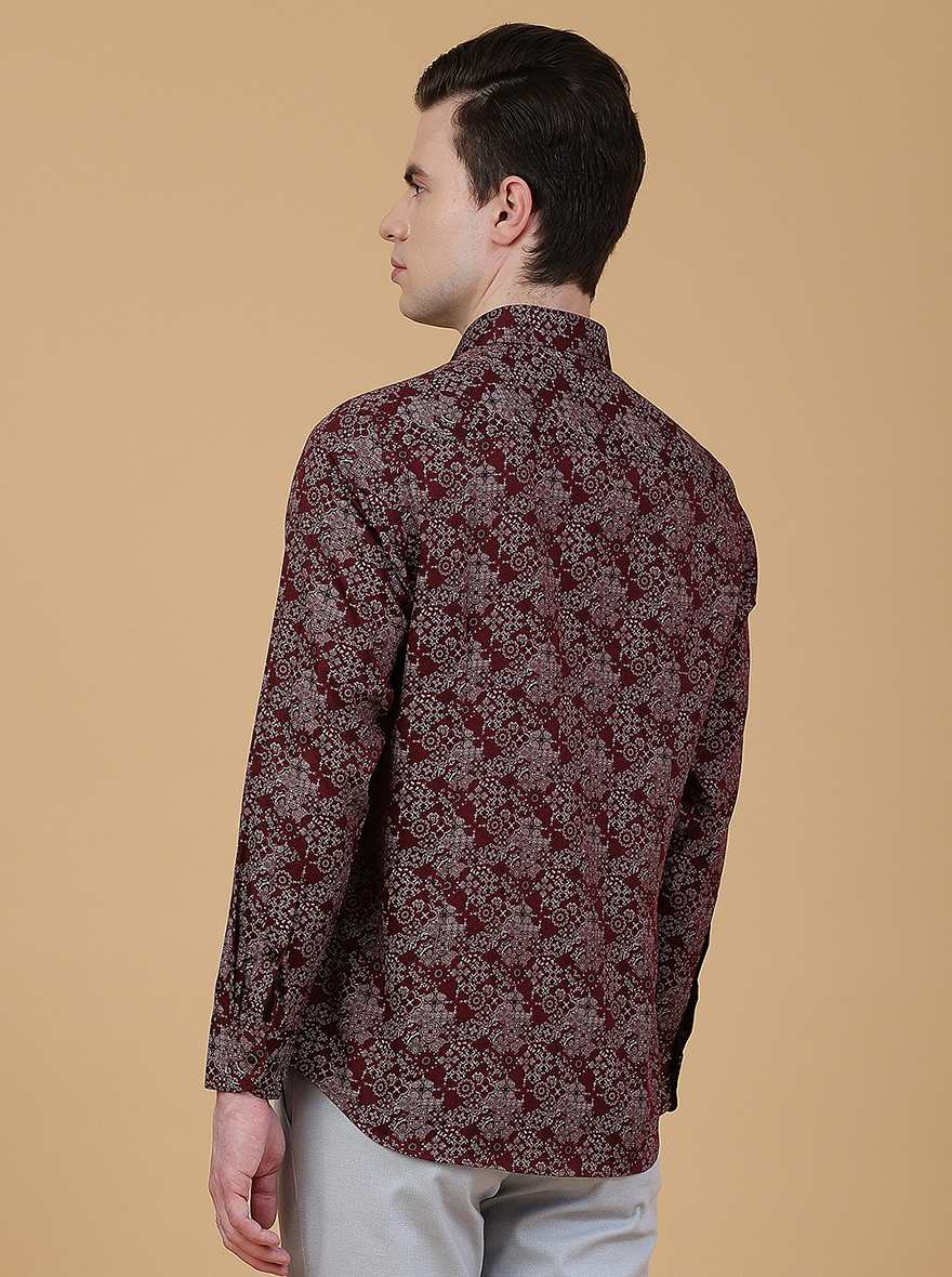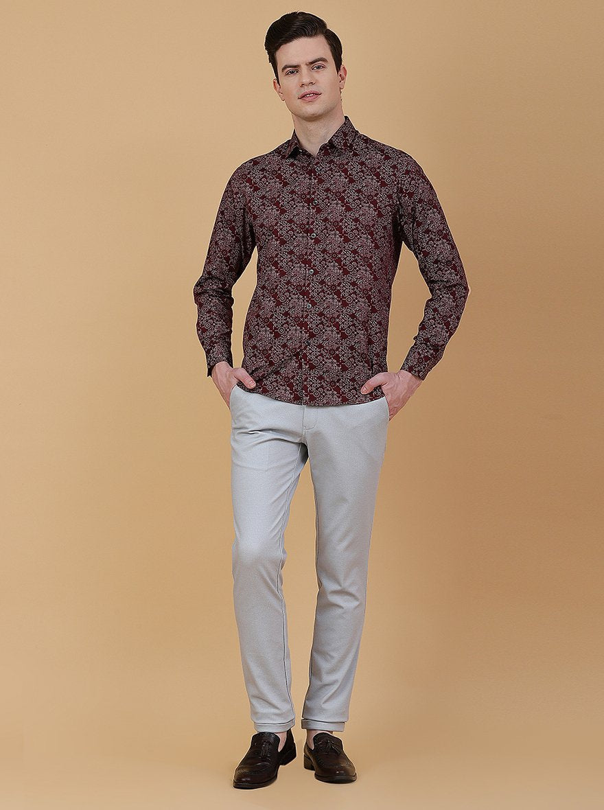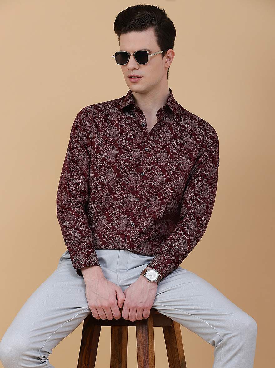Maroon Printed Slim Fit Party Wear Shirt | Greenfibre
