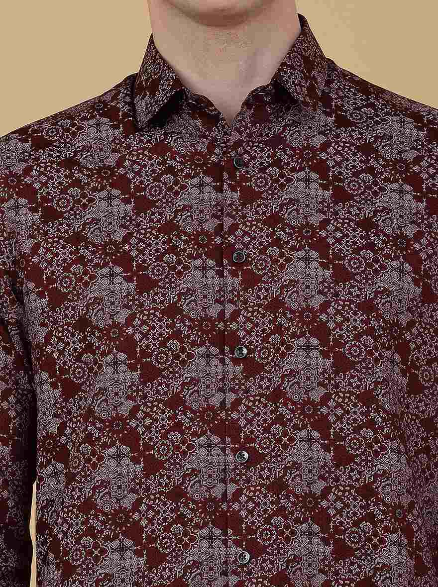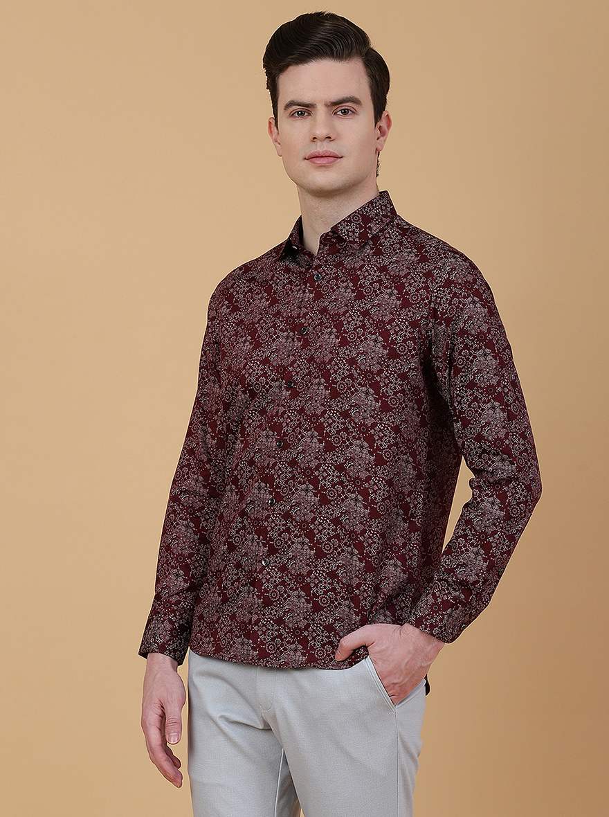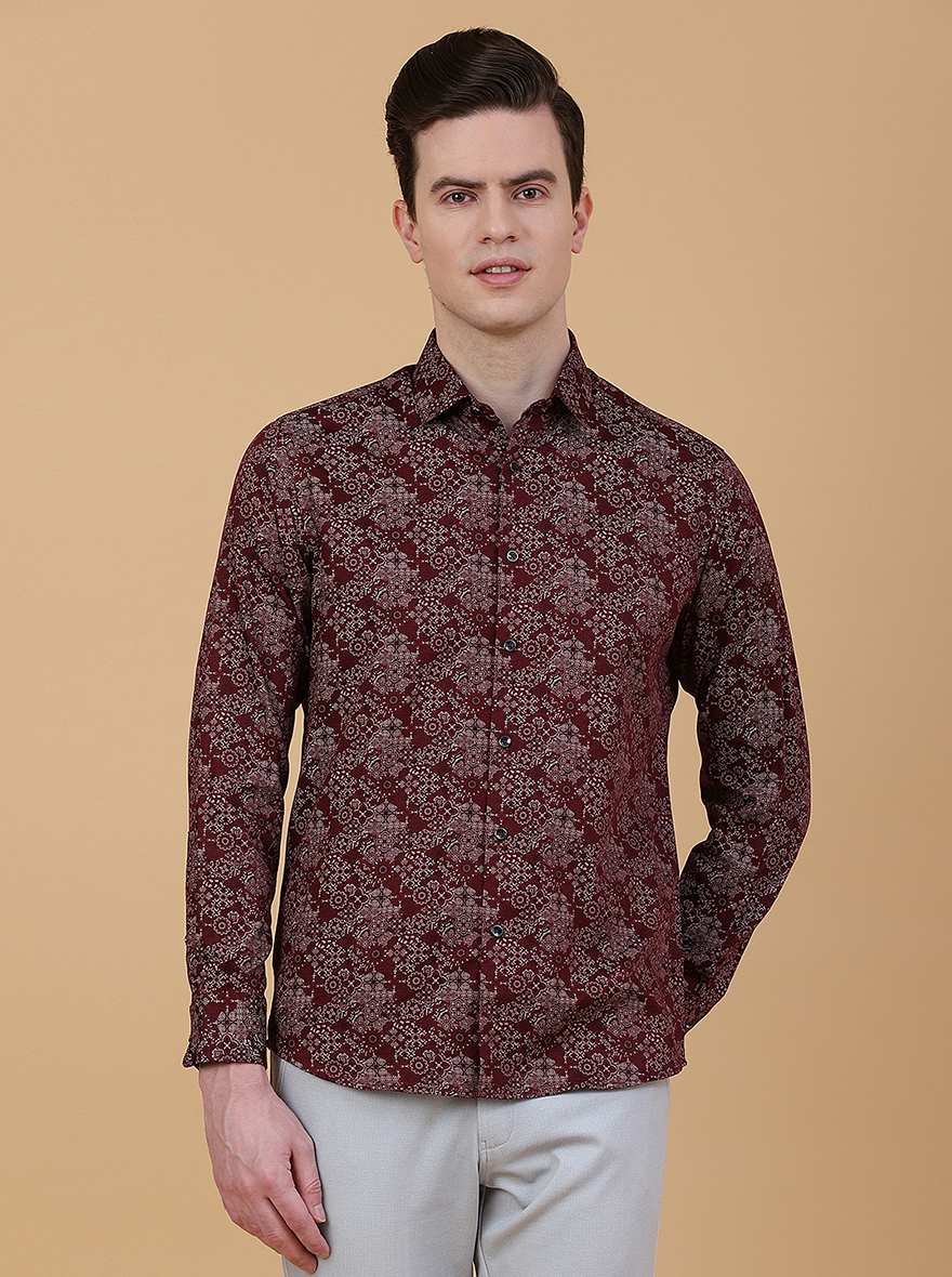 Maroon Printed Slim Fit Party Wear Shirt | Greenfibre