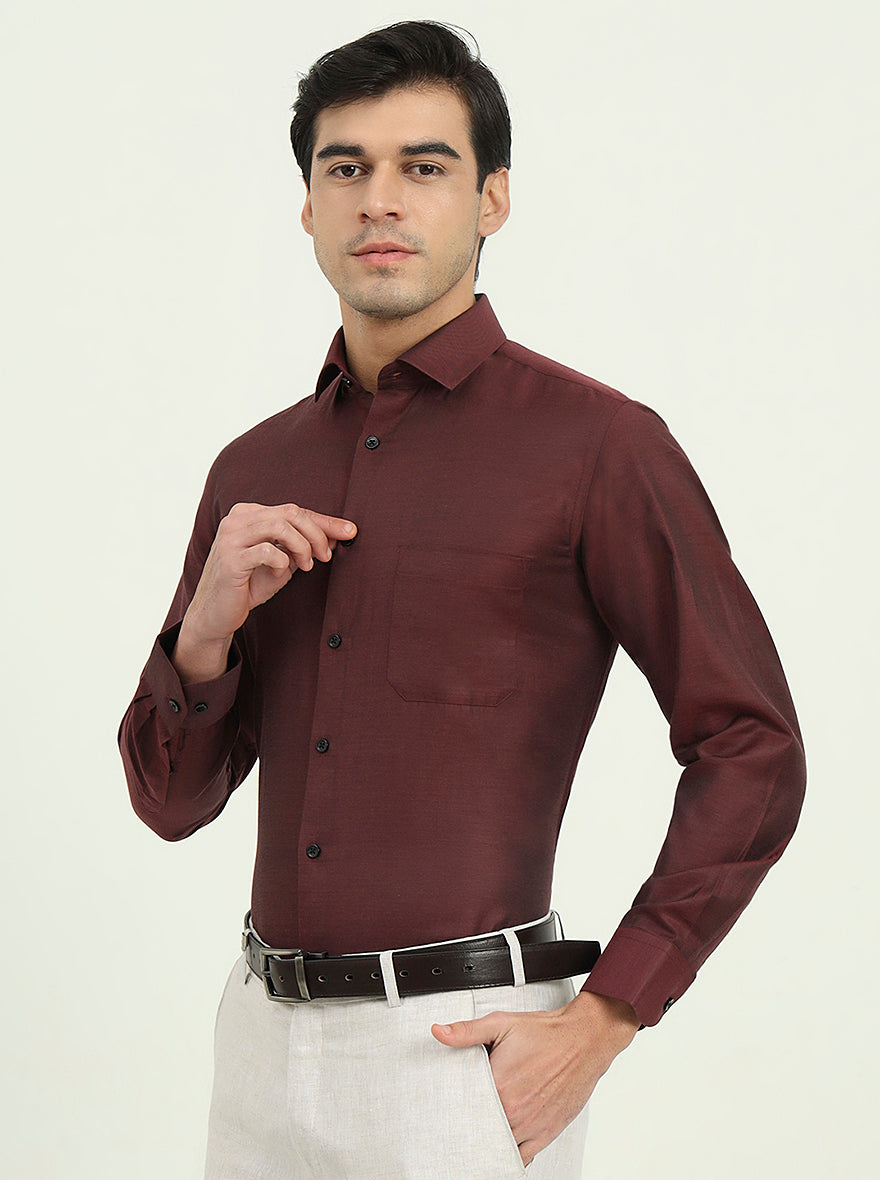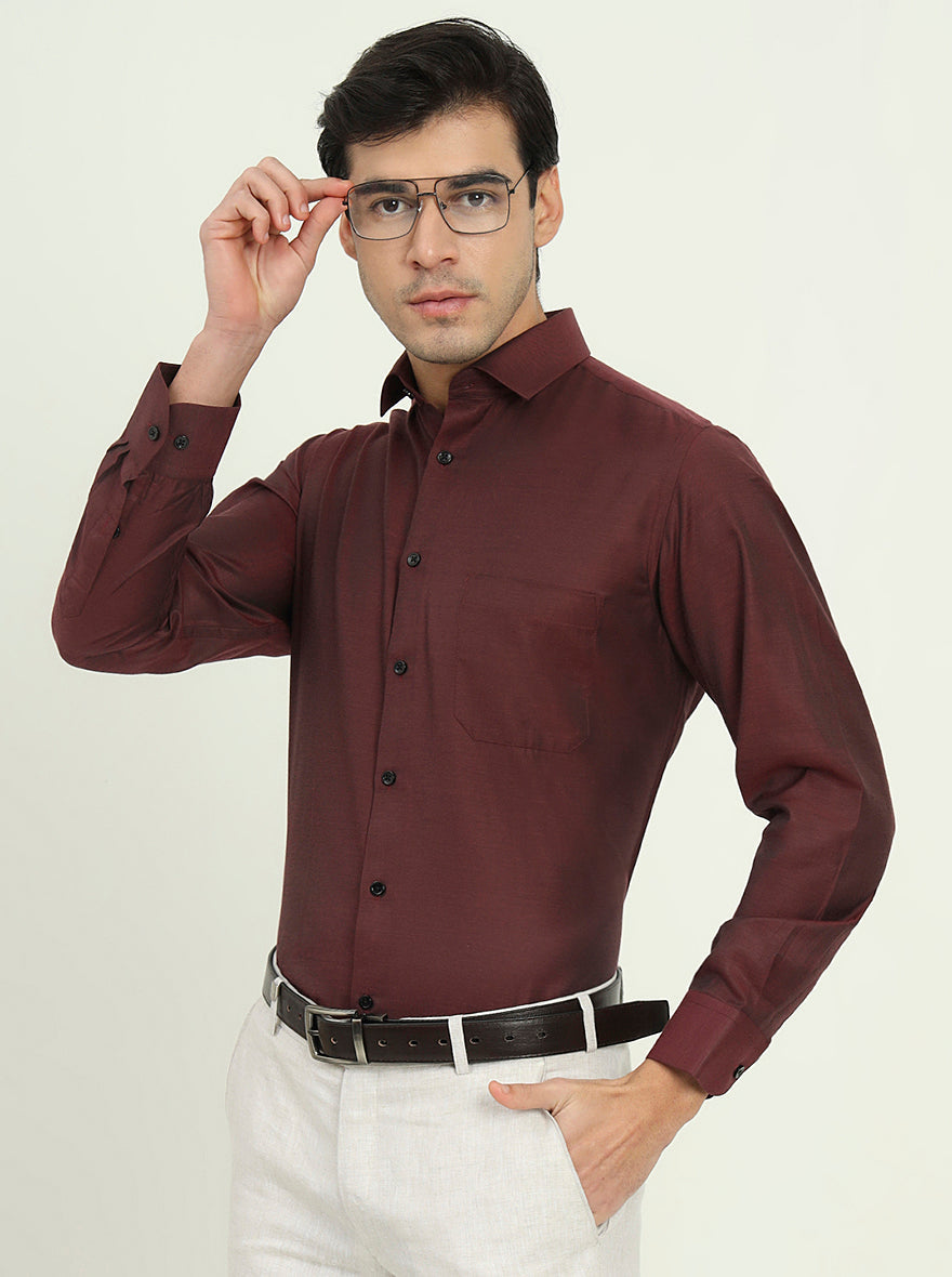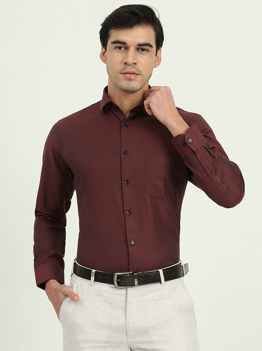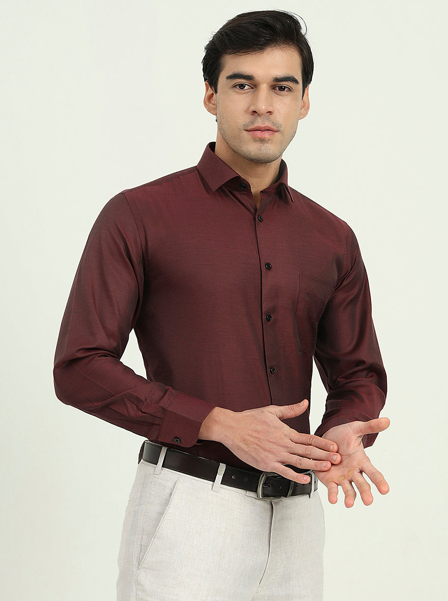 Maroon Solid Slim Fit Party Wear Shirt | Greenfire