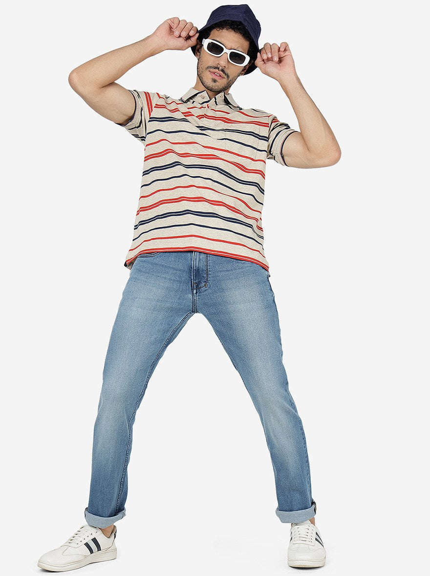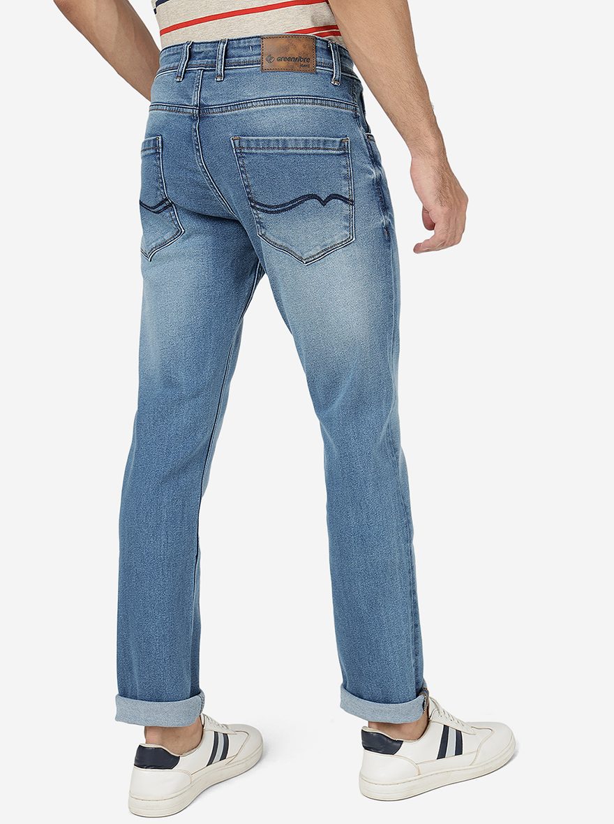 Mid Blue Solid Straight Fit Jeans | Greenfibre