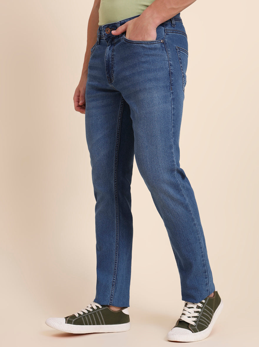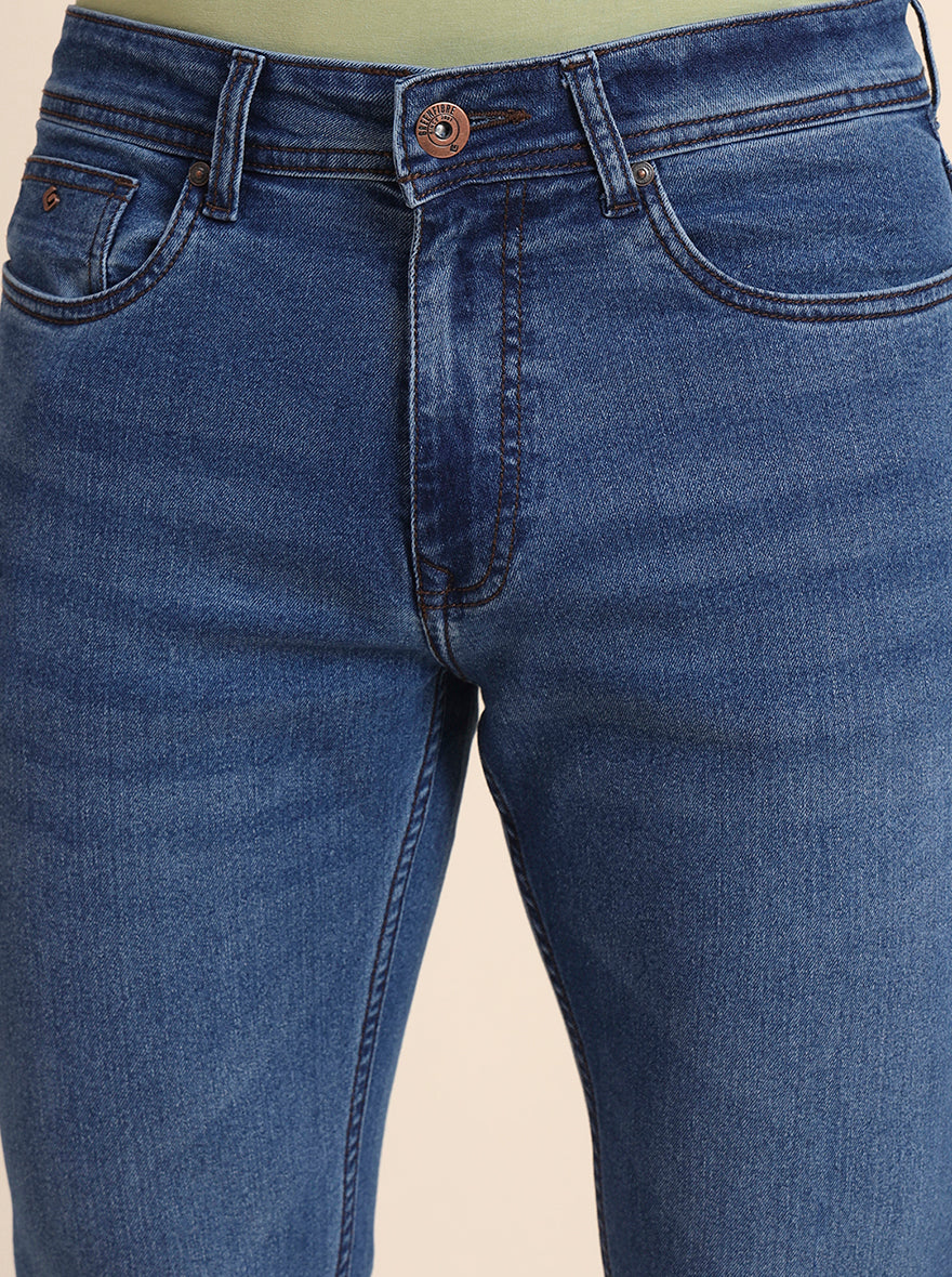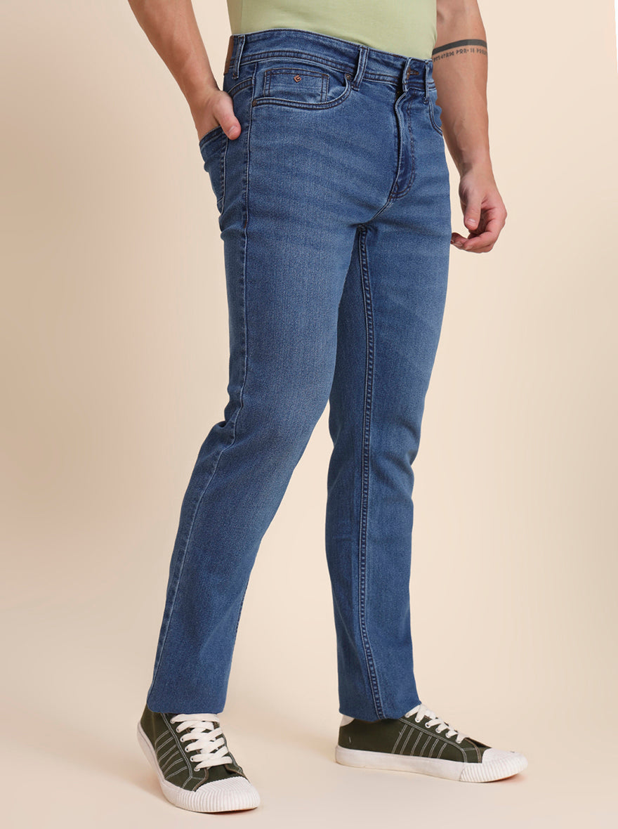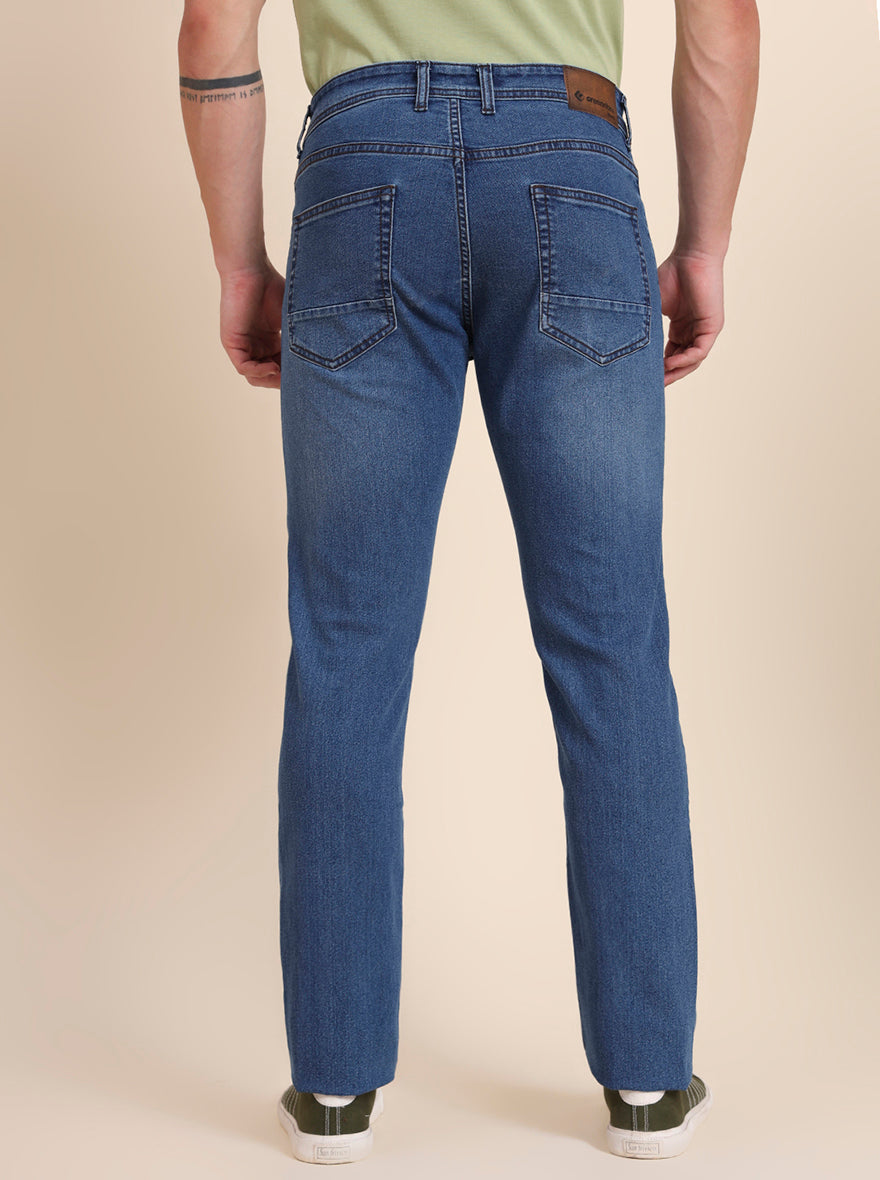 Mid Blue Washed Straight Fit Jeans | Greenfibre