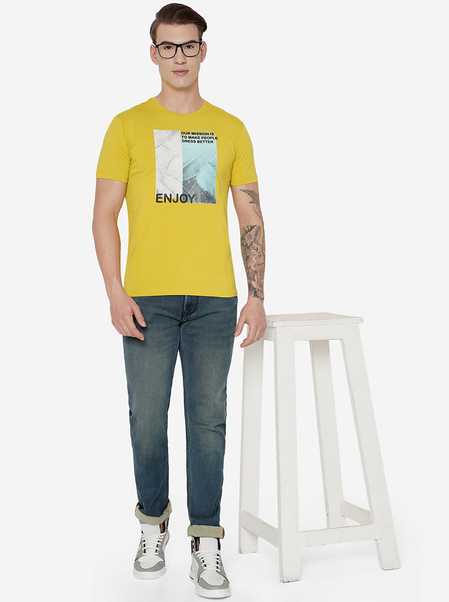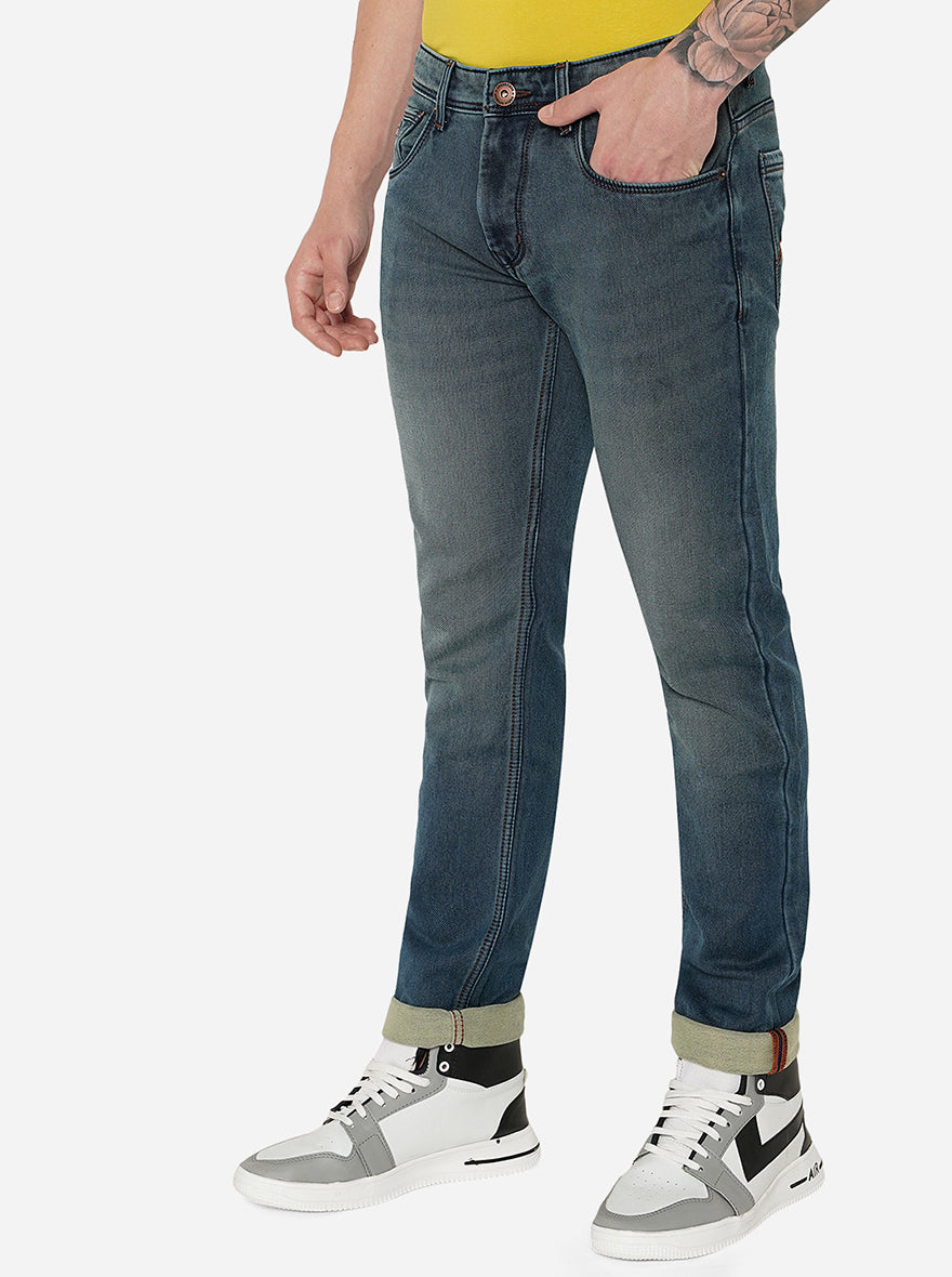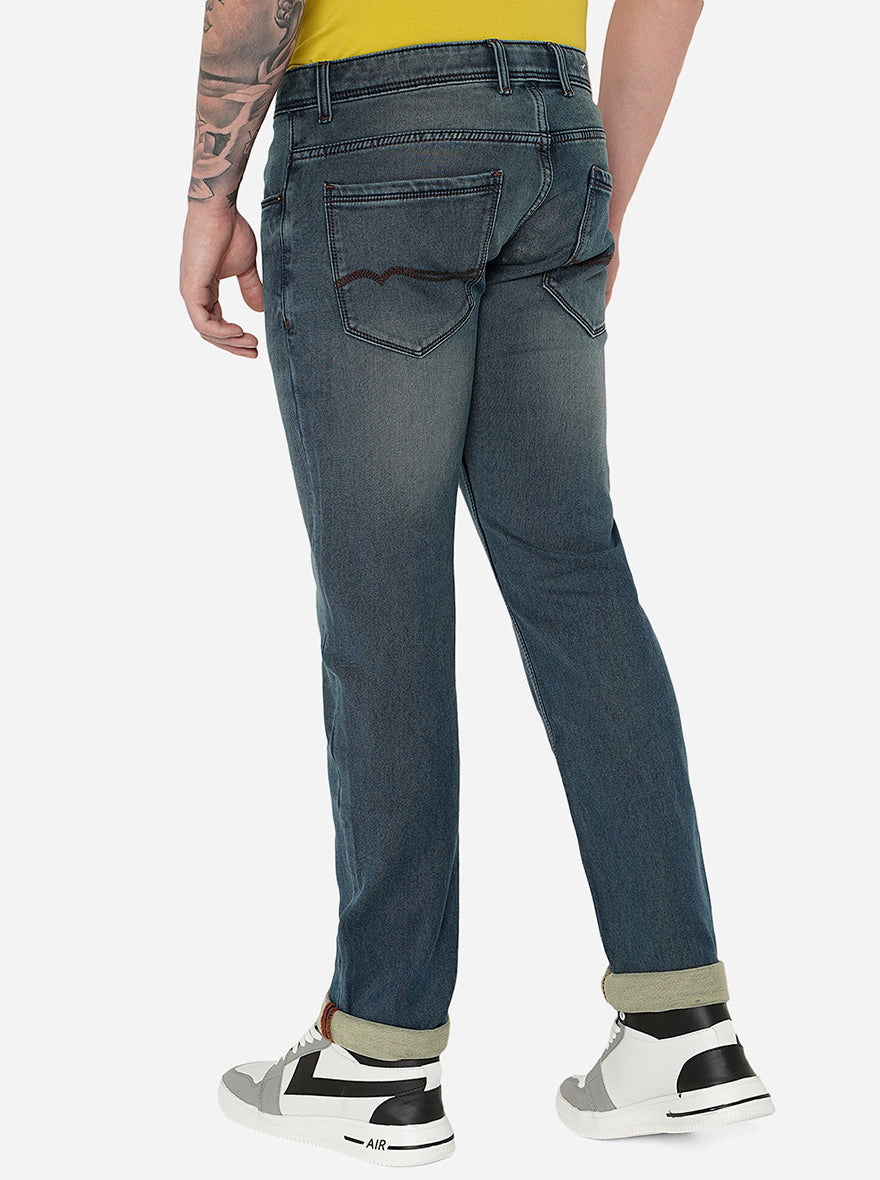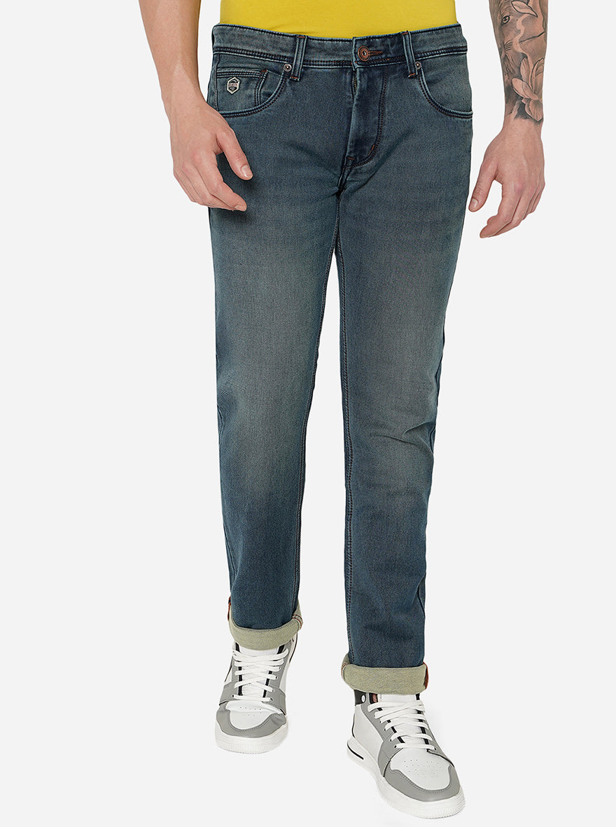 Details: Add this unique shade of blue to your jeans collection with this Greenfibre Men's Midnight Blue Jeans. Made out of Cotton Stretch fabric ensuring comfort, breathability, and excellent stretchability all day. Offers a Mid Rise waist with a Narrow fit and a flat front for a sleek look that has been elevated with a Washed pattern. Features five pockets, zipper, and button for closure. Match it with a T-shirt of your choice and a pair of canvas for an iconic look. Perfect for casual looks.