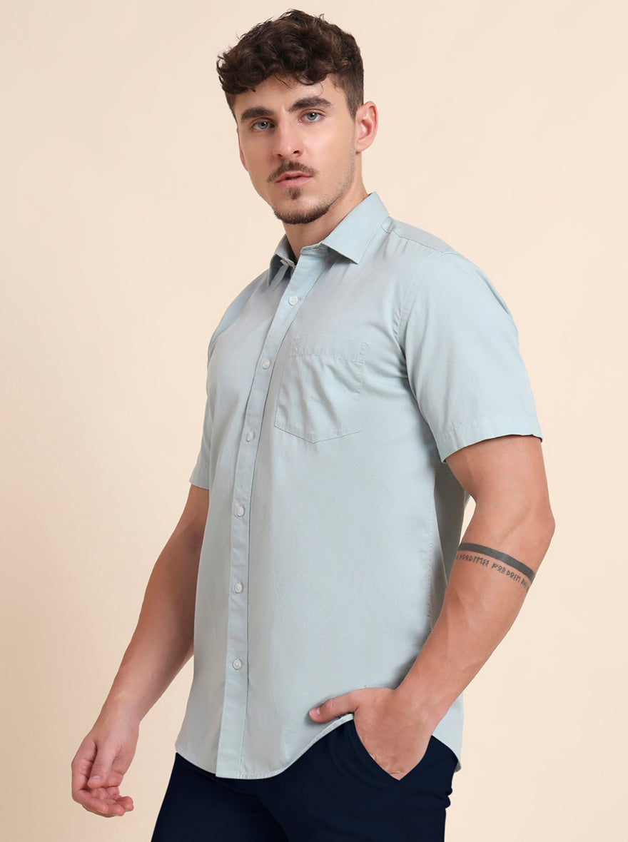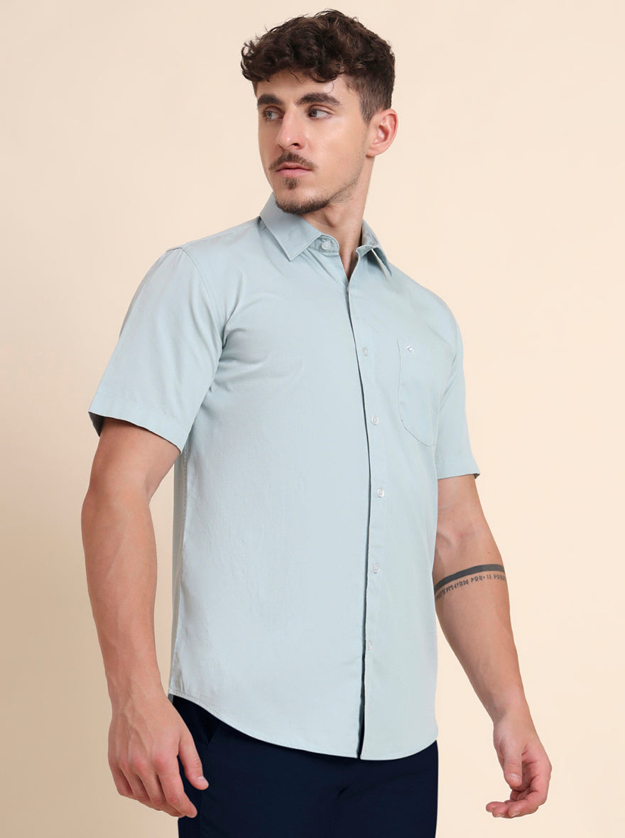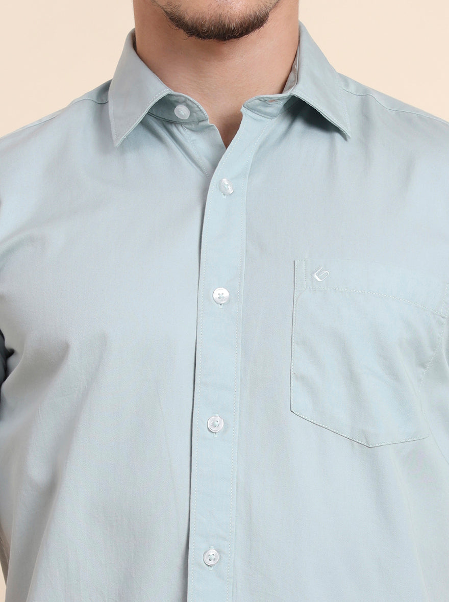 Mint Green Solid Smart Fit Semi Casual Shirt | Greenfibre