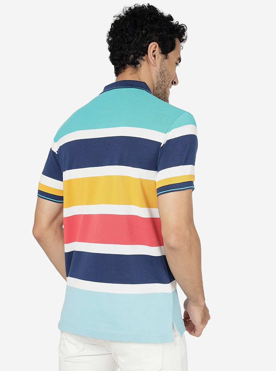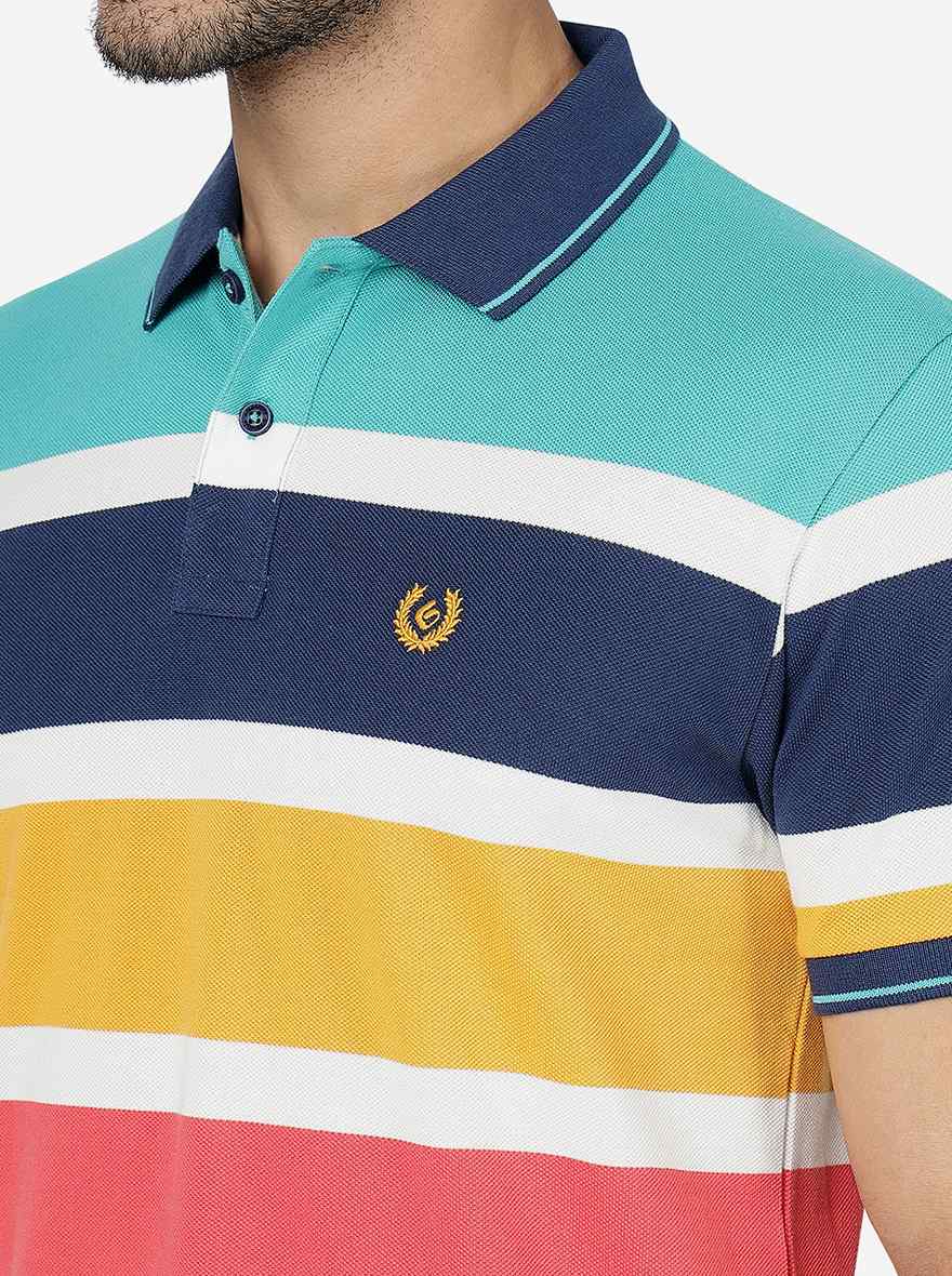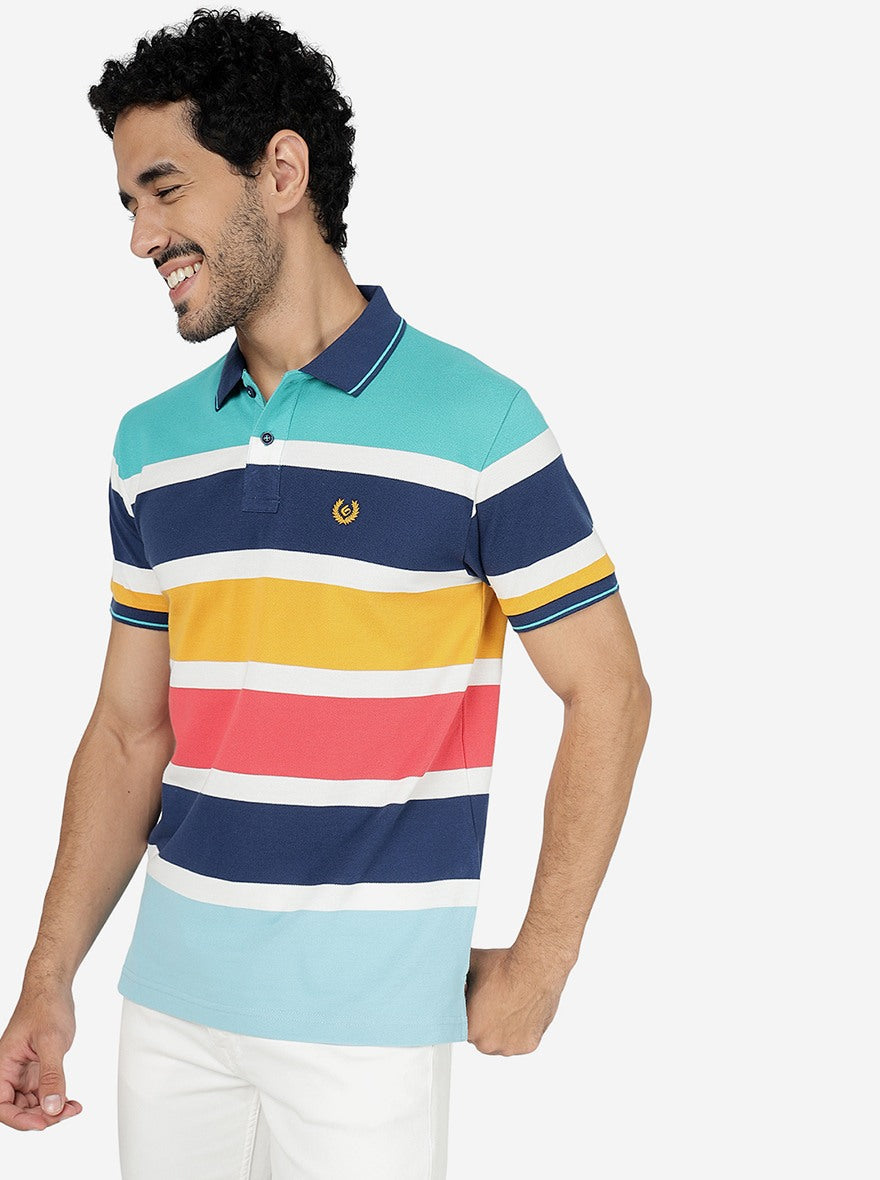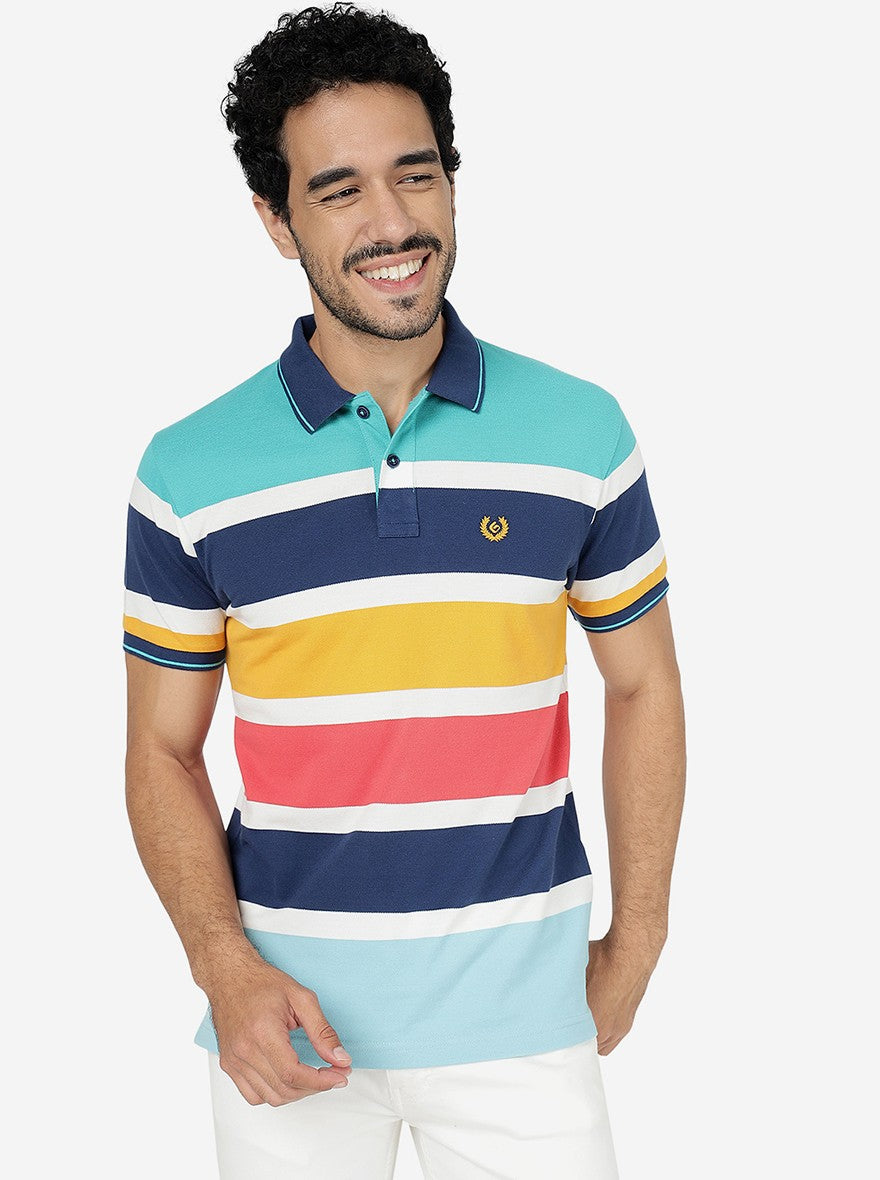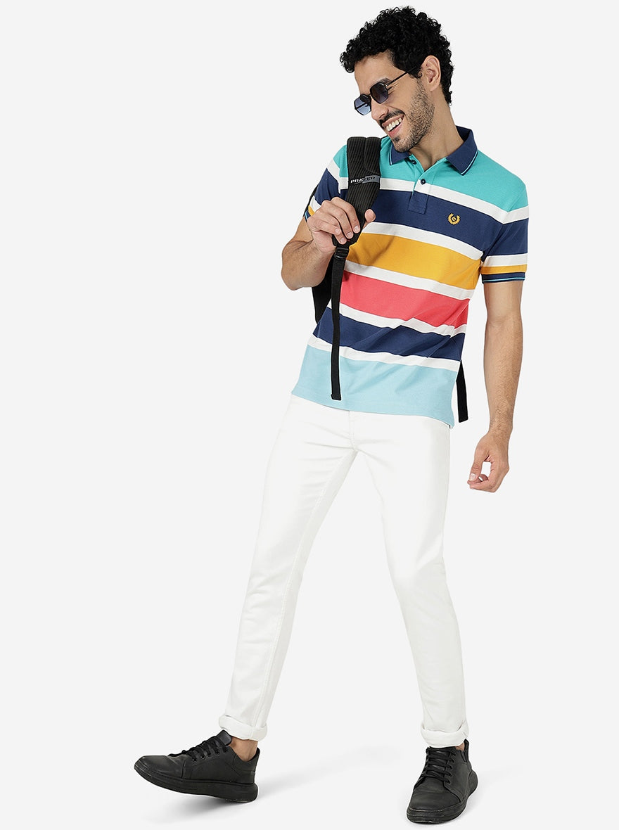 Multicolor Striped Slim Fit Polo T-Shirt | Greenfibre