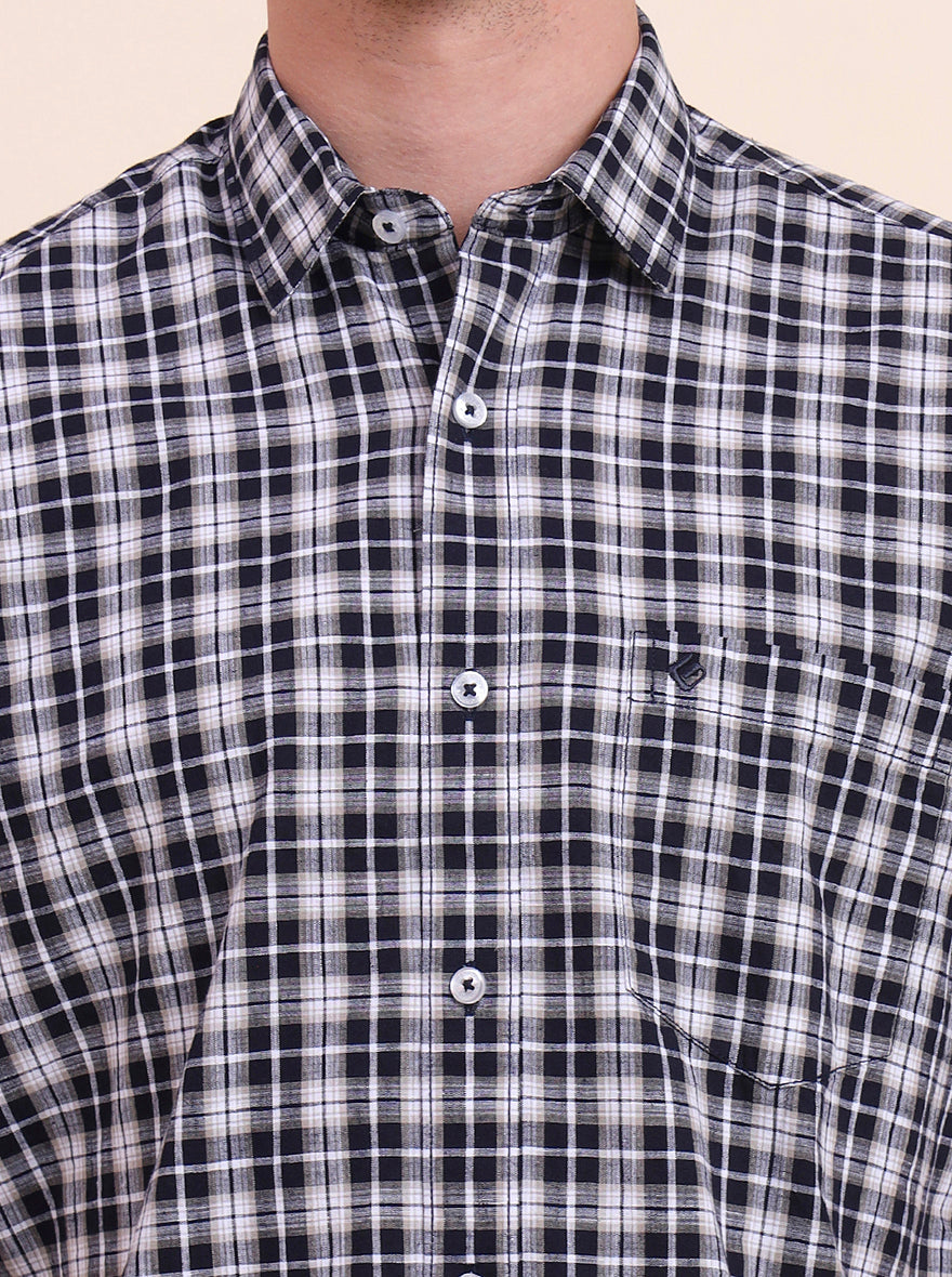 Navy Blue Checked Smart Fit Semi Casual Shirt | Greenfibre