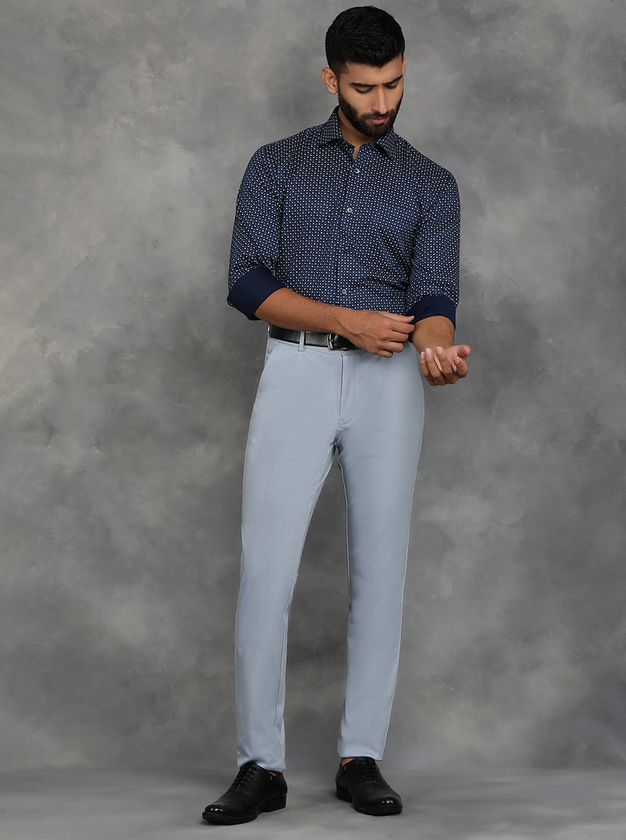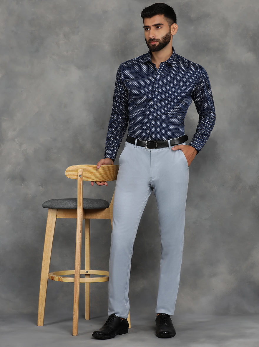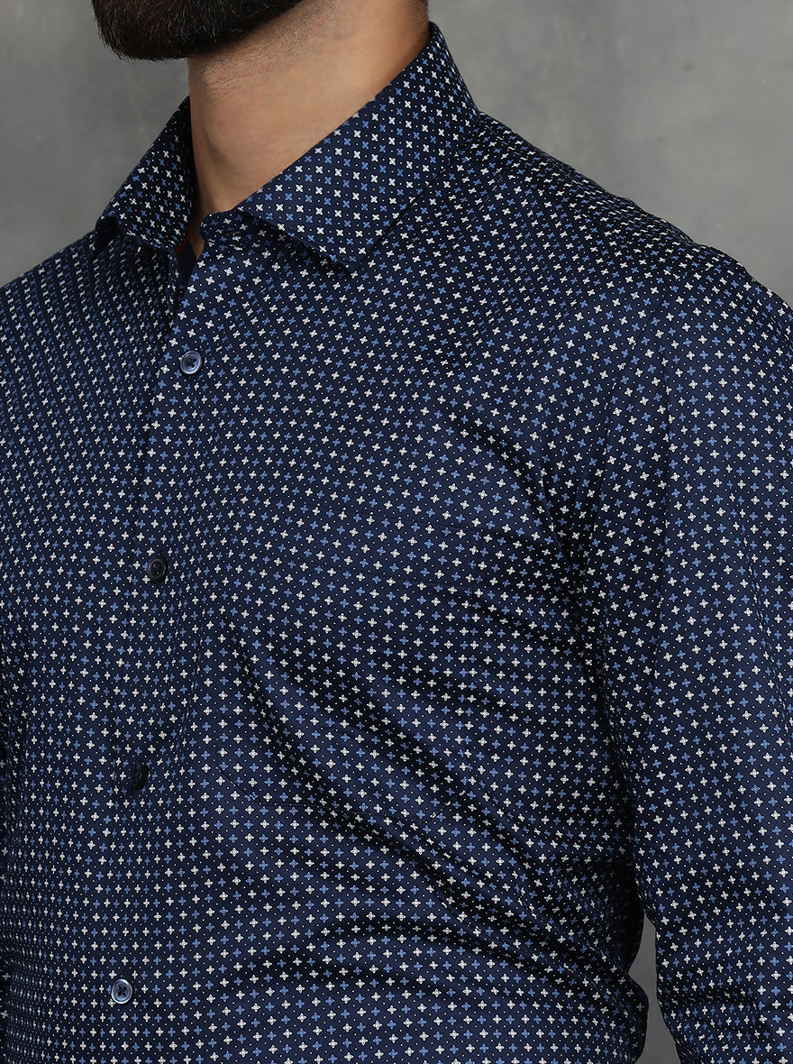 Navy Blue Printed Slim Fit Formal Shirt | GreenFibre