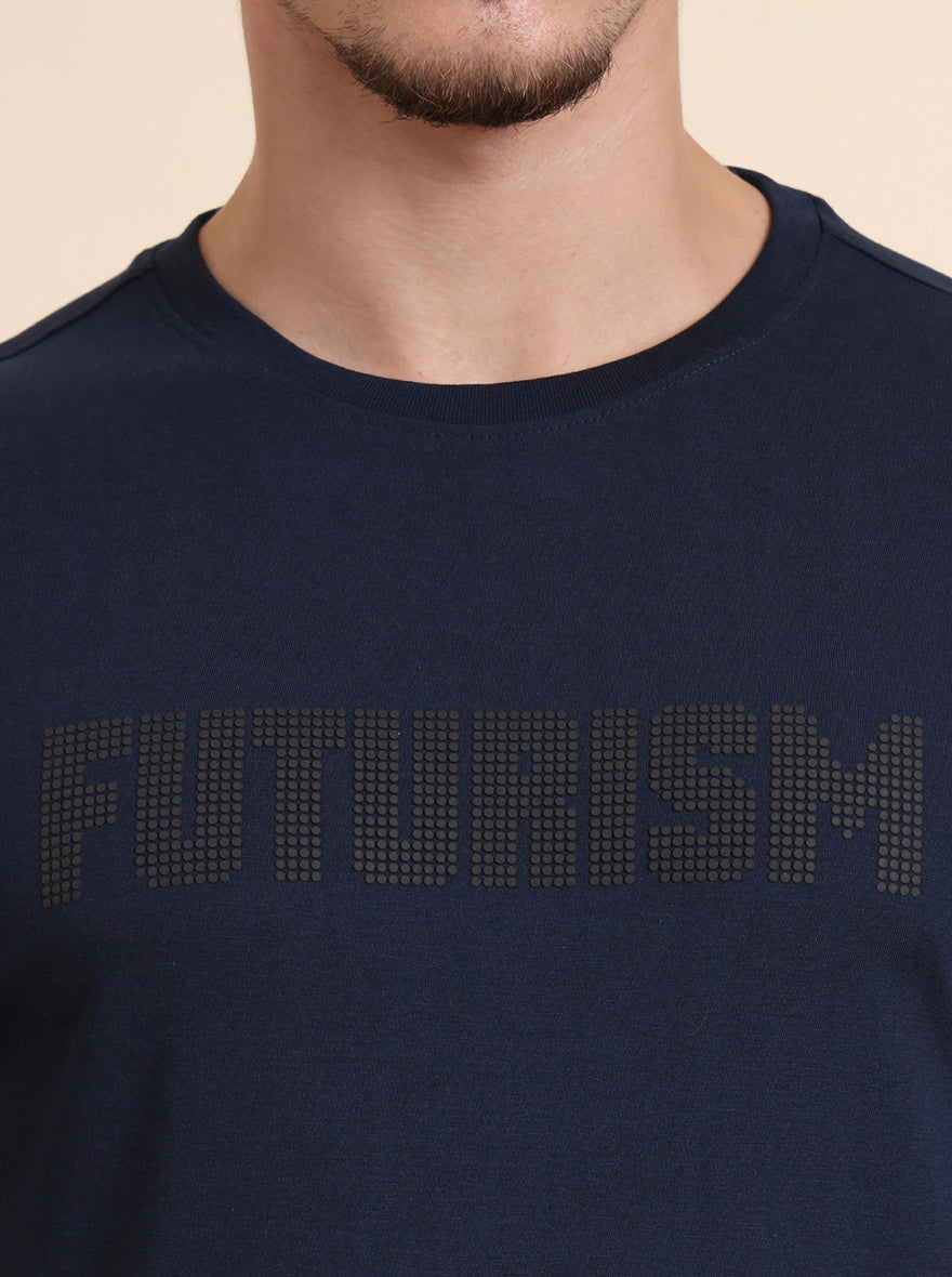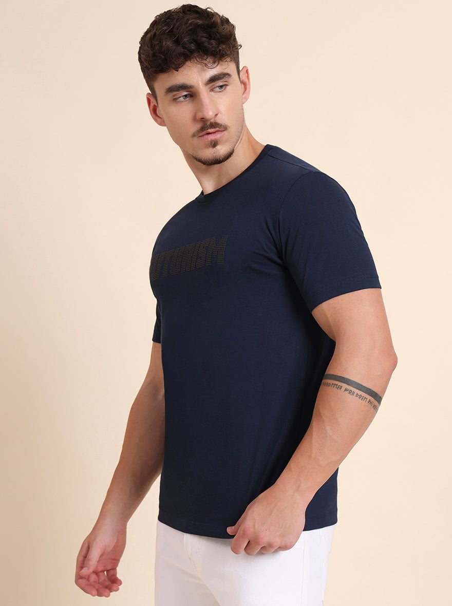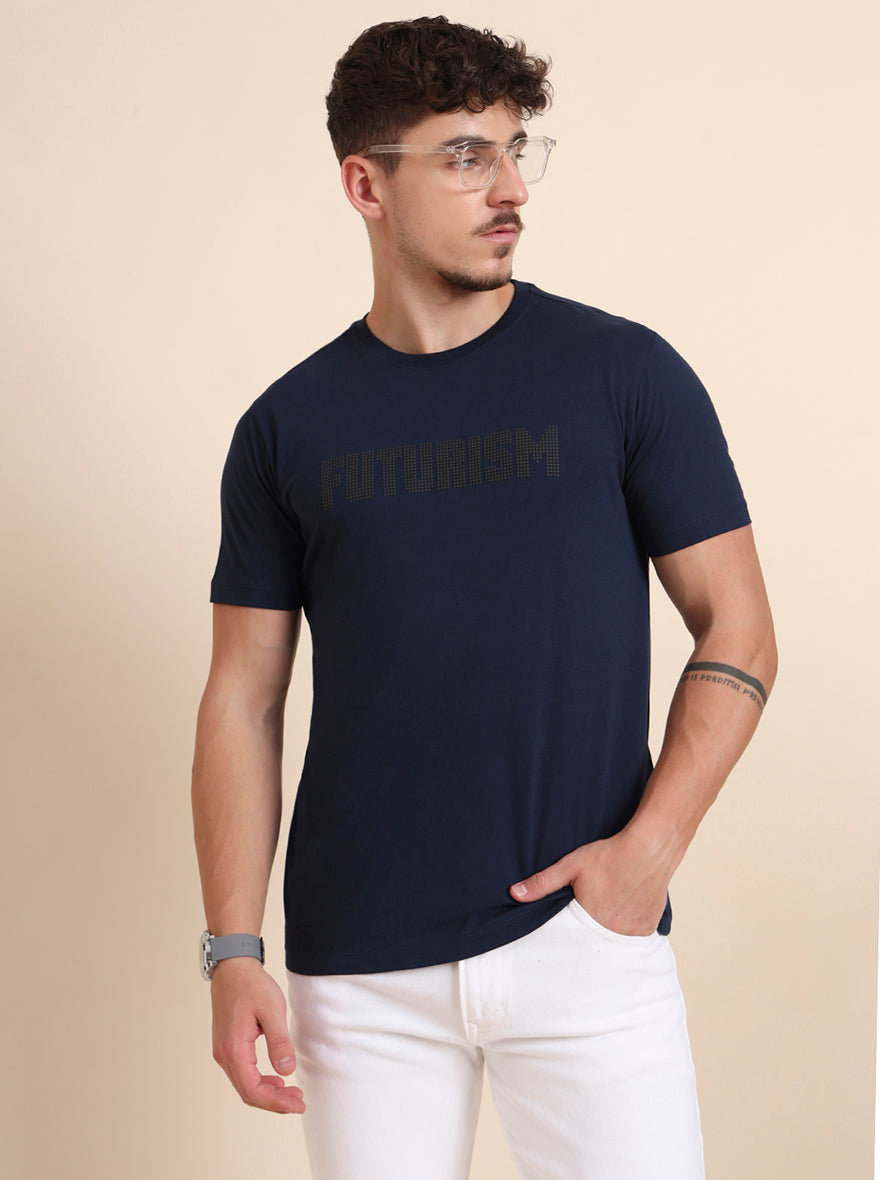 Navy Blue Printed Slim Fit T-Shirt | Greenfibre