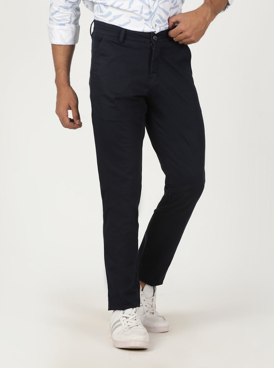 Details: Upgrade your wardrobe with the Greenfibre Casual Trouser crafted with Cotton Stretch and styled with a Slim Fit fit. Perfect for occasions that call for Solid patterns in the stunning Navy Blue shade. Ideal for those who value both comfort and style.