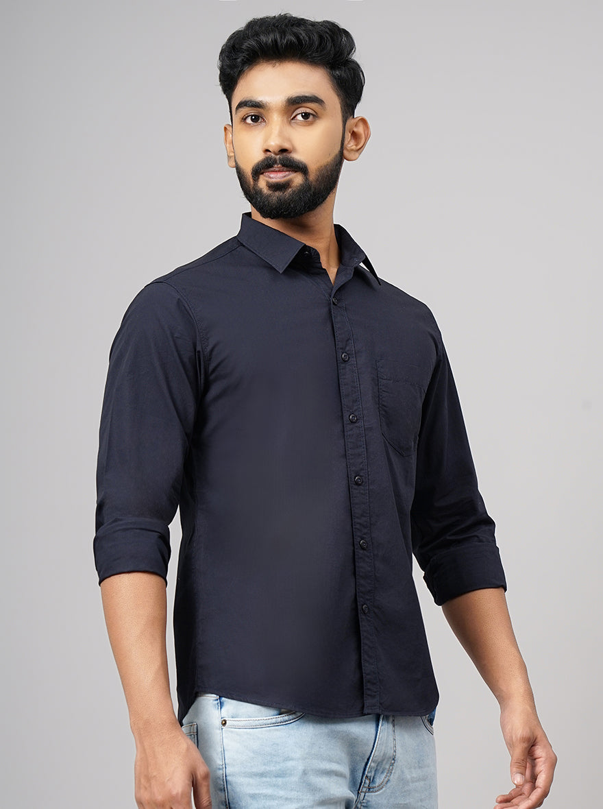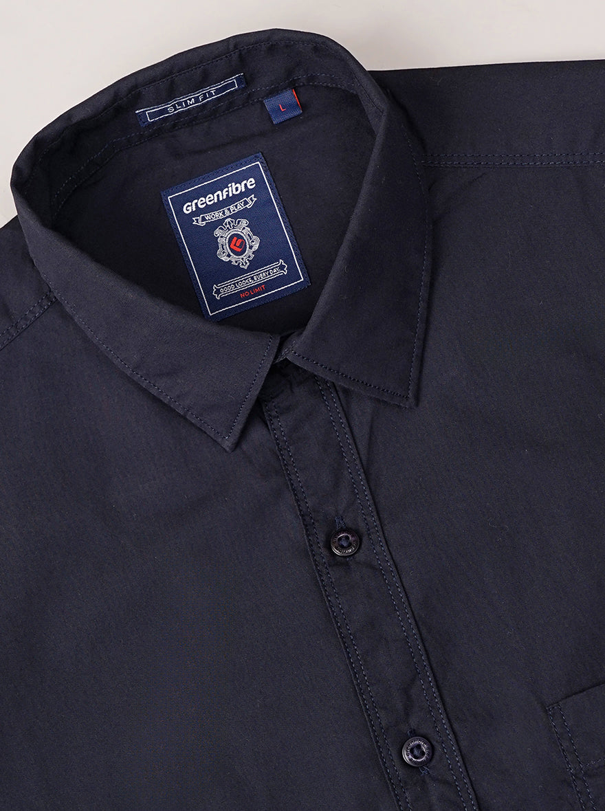 Navy Blue Solid Slim Fit Casual Shirt | Greenfibre