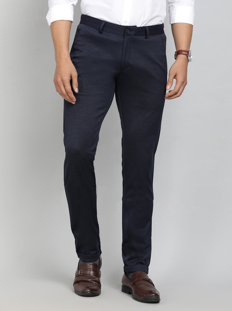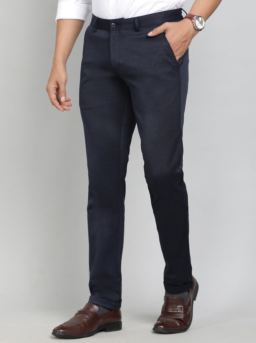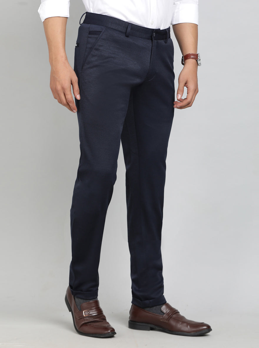 Navy Blue Solid Slim Fit Club Wear Trouser | Greenfibre