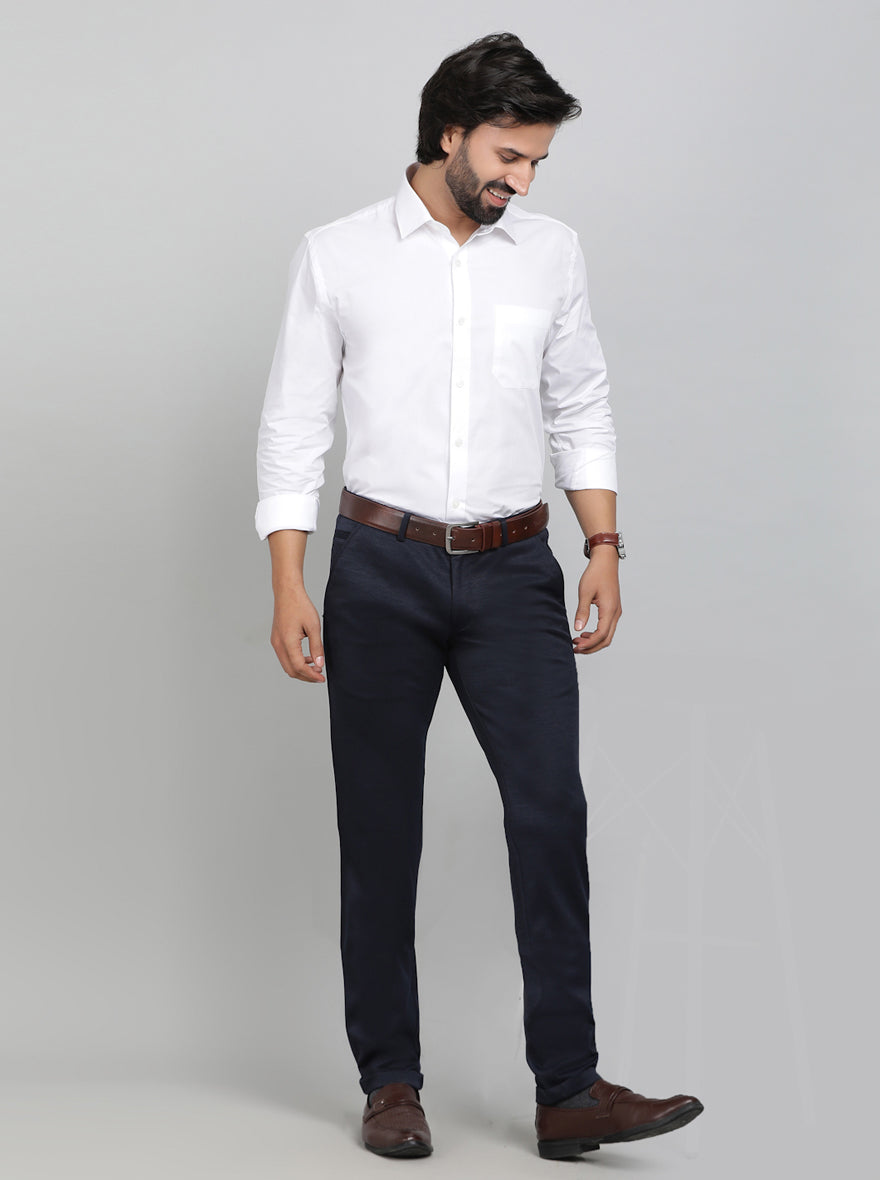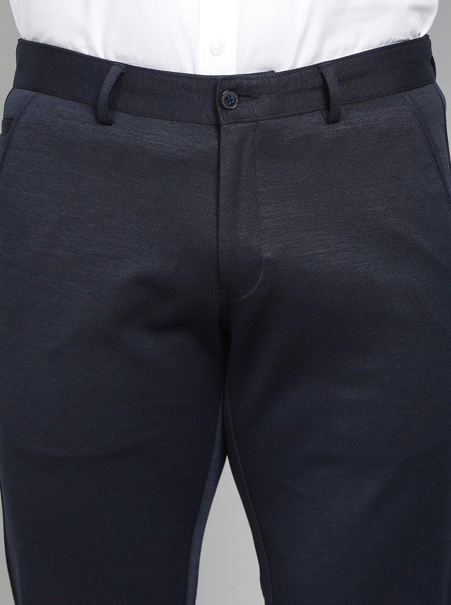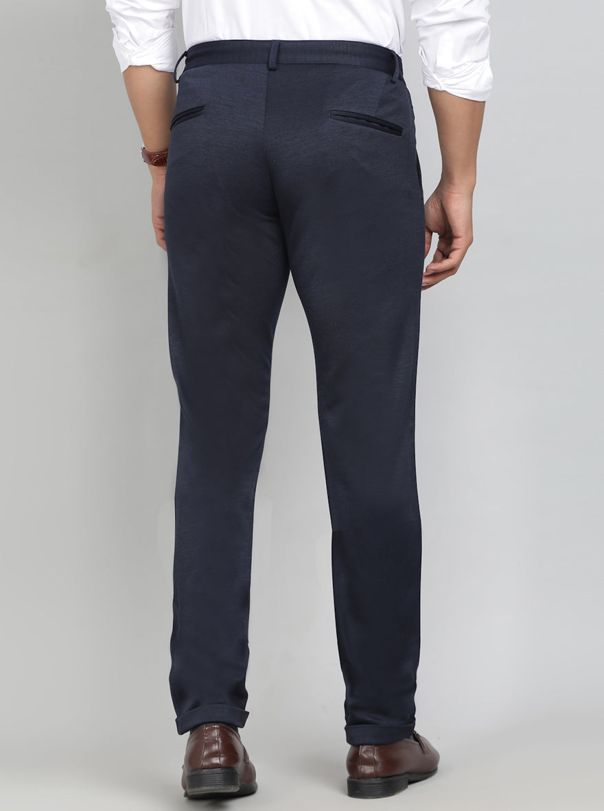 Navy Blue Solid Slim Fit Club Wear Trouser | Greenfibre