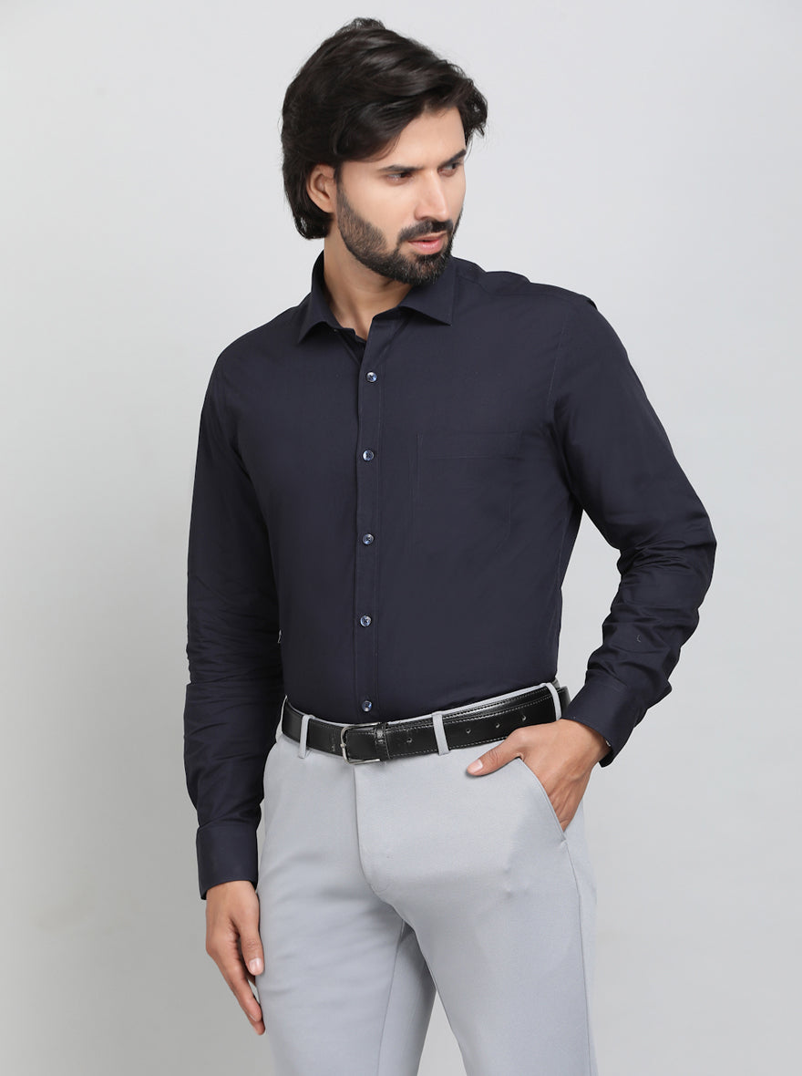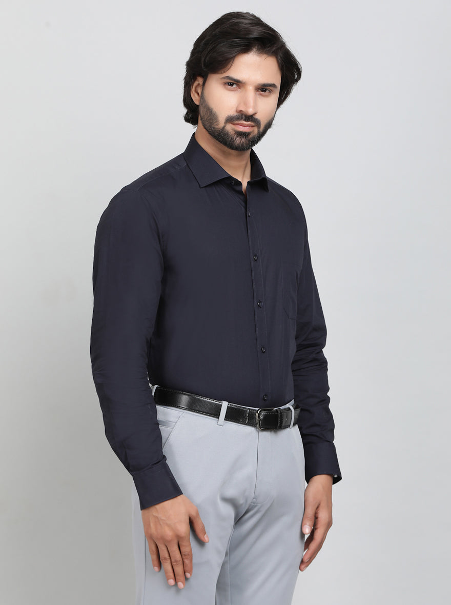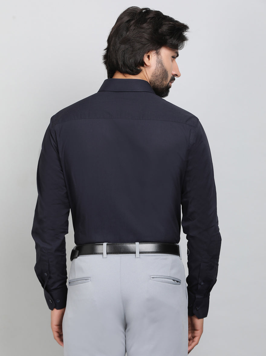 Navy Blue Solid Slim Fit Formal Shirt | Greenfibre