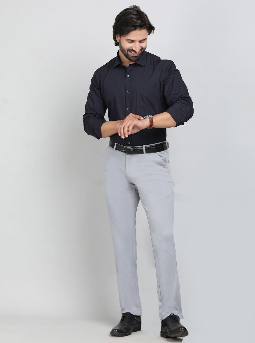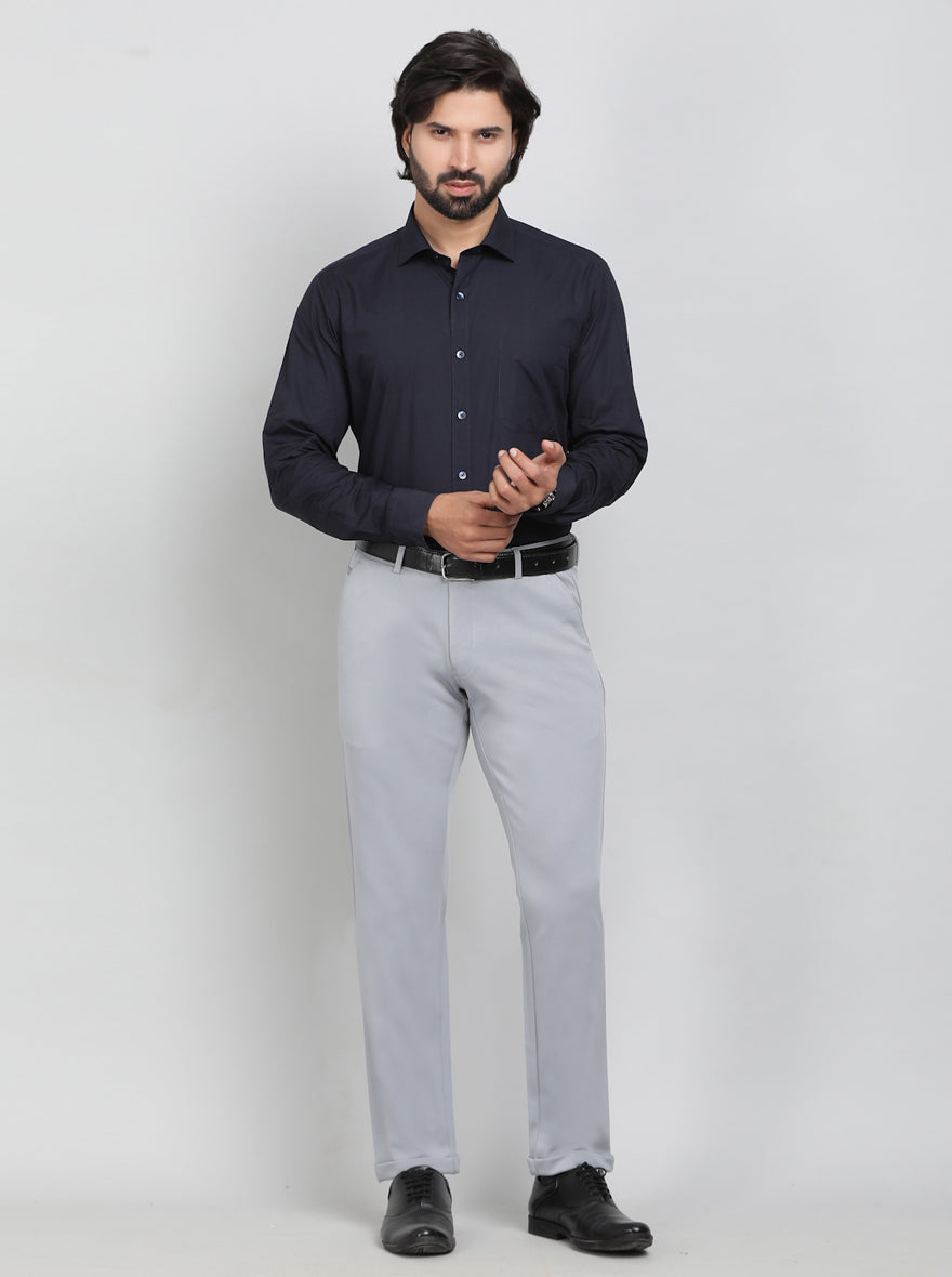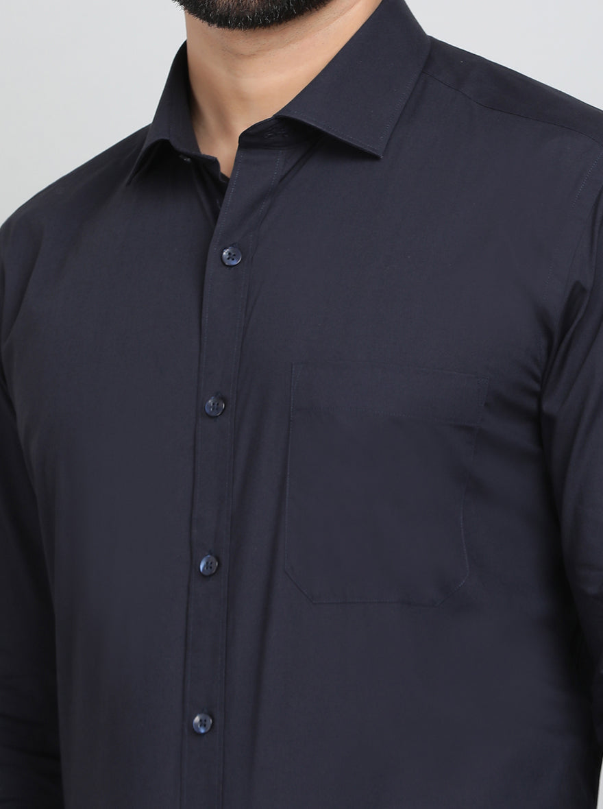 Navy Blue Solid Slim Fit Formal Shirt | Greenfibre