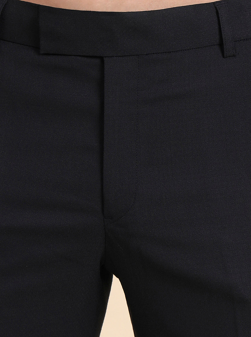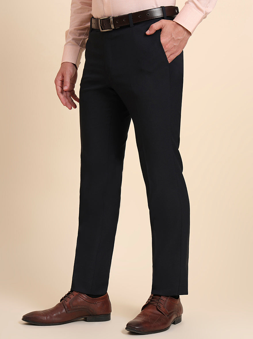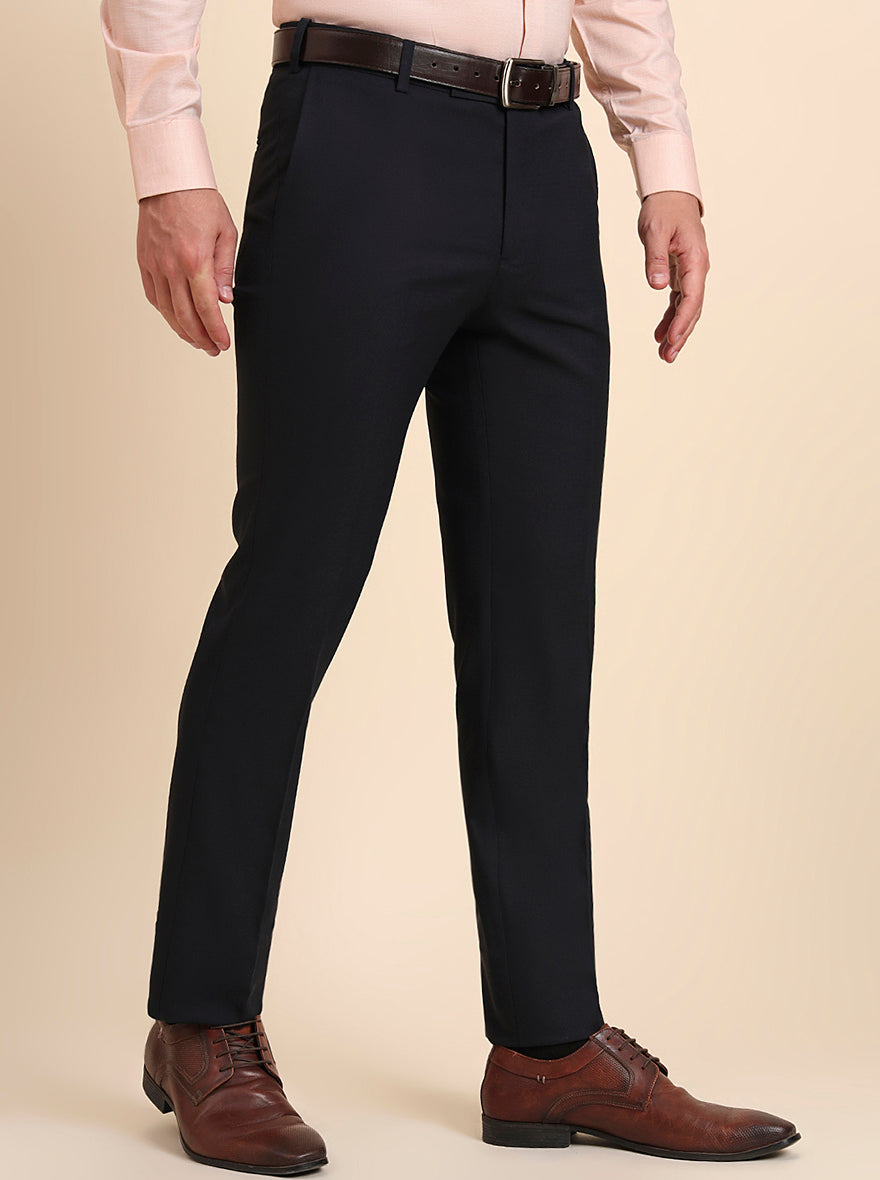 Navy Blue Solid Slim Fit Formal Trouser | Greenfibre