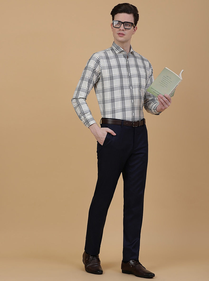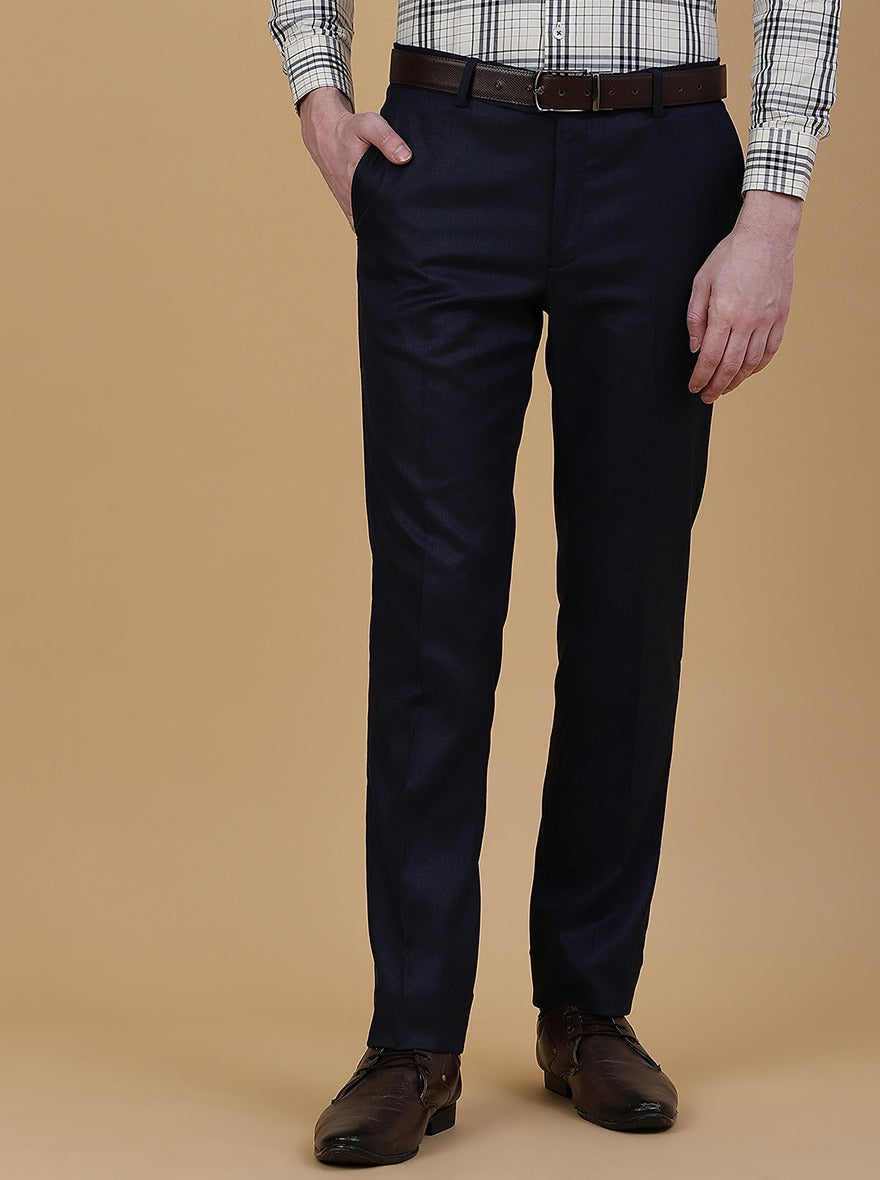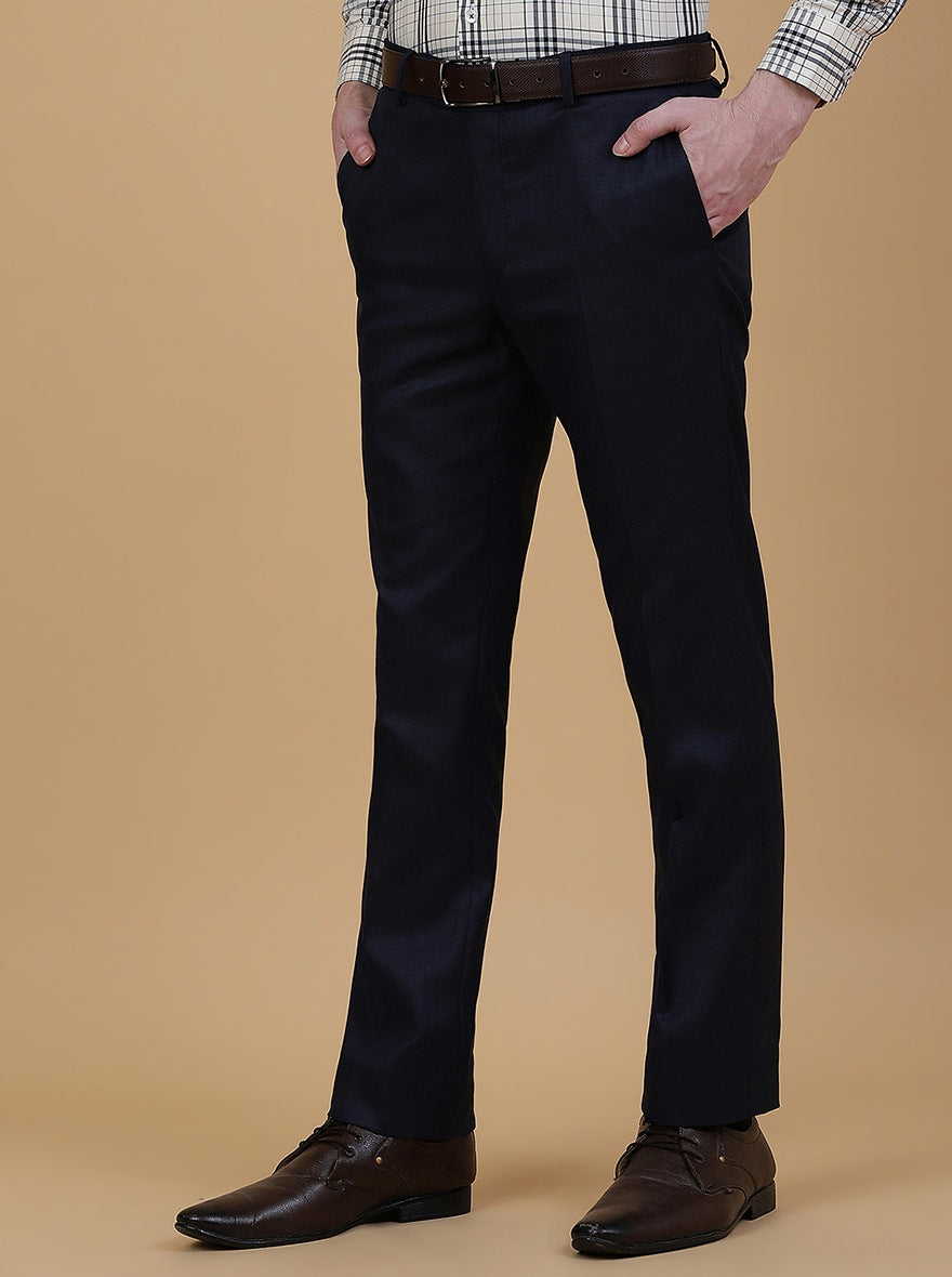Navy Blue Solid Slim Fit Formal Trouser | Greenfibre