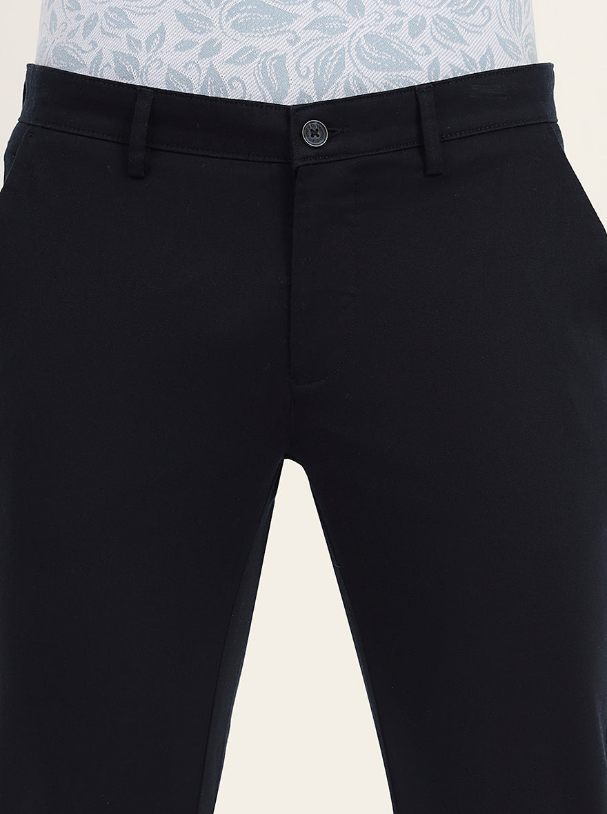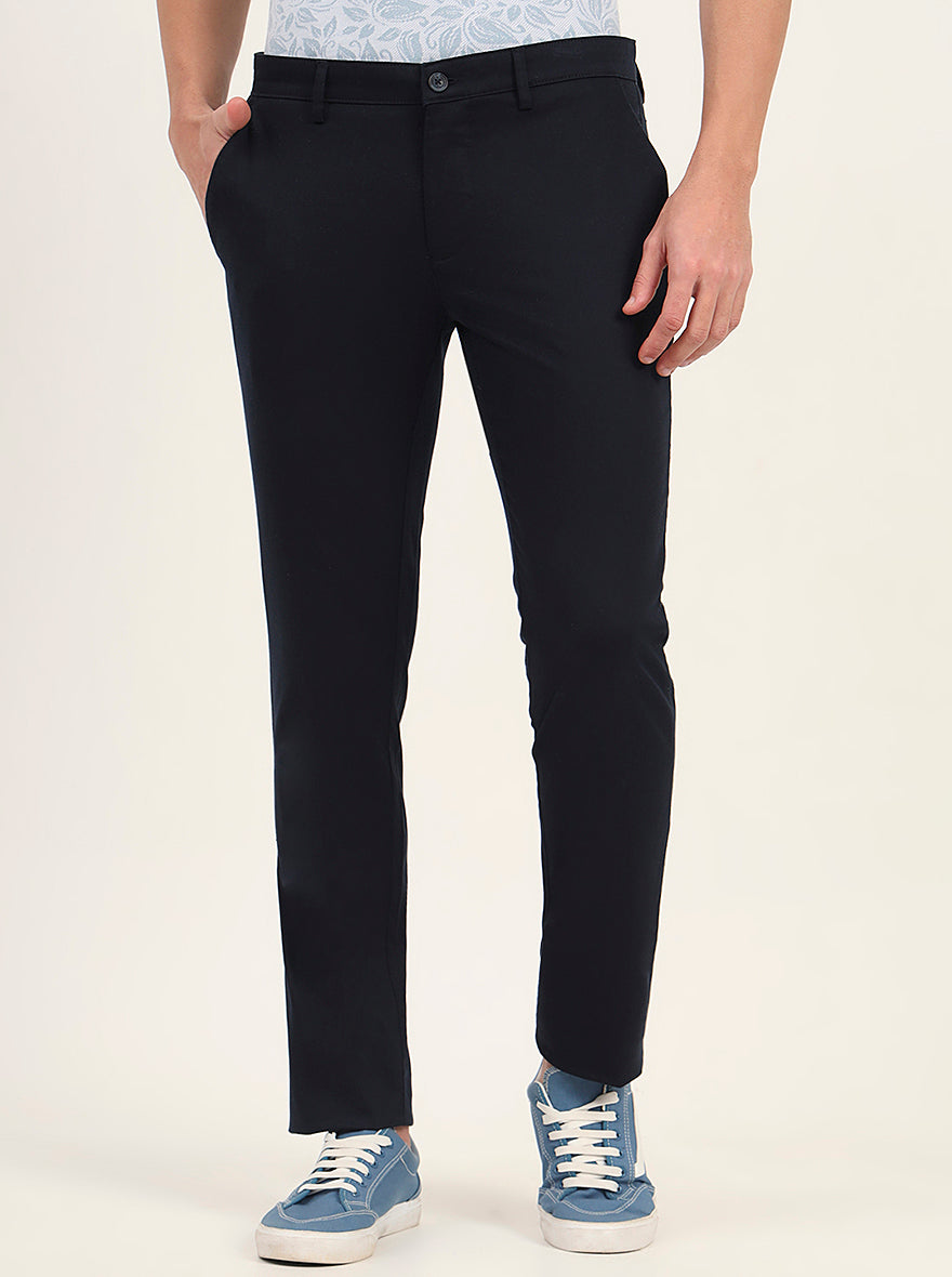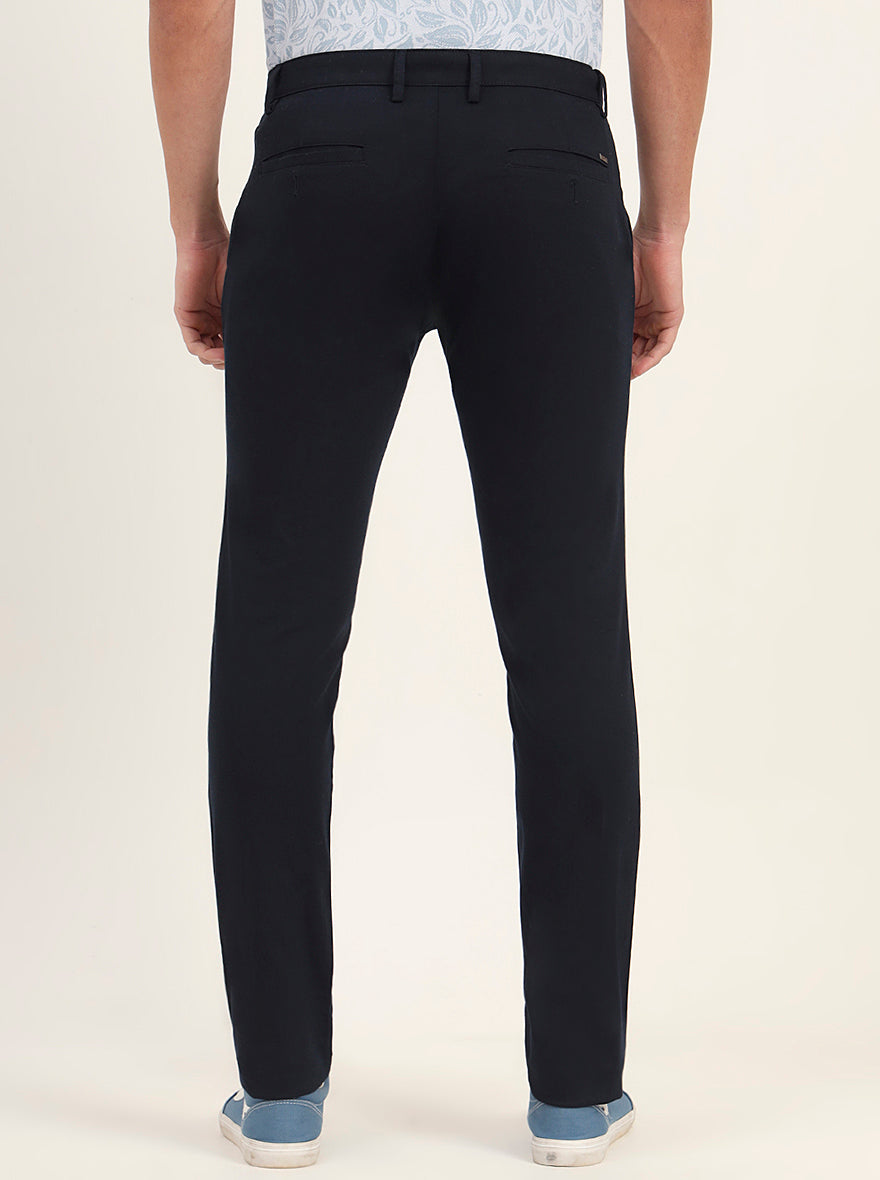 Navy Blue Solid Super Slim Fit Casual Trouser | Greenfibre