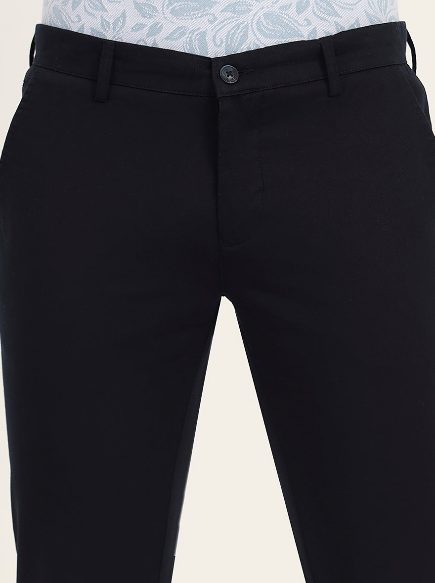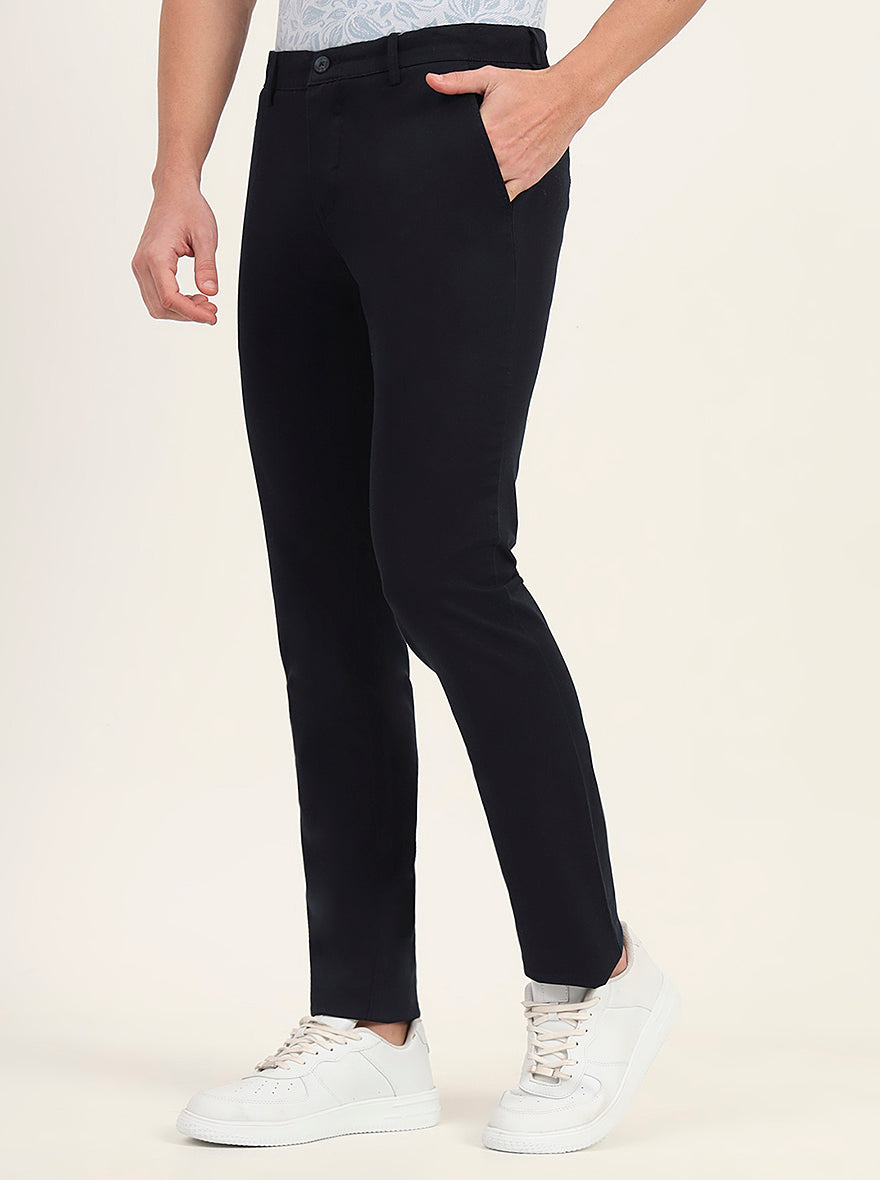 Navy Blue Solid Super Slim Fit Casual Trouser | Greenfibre