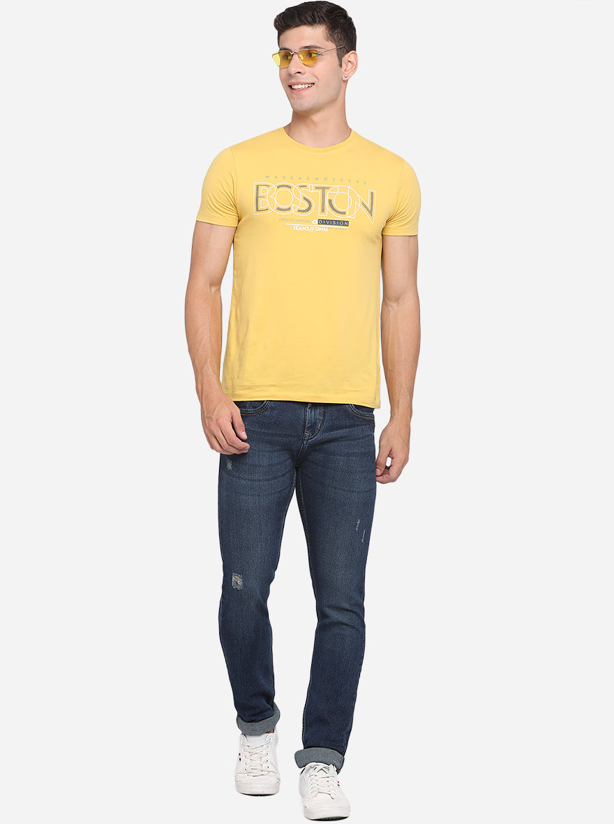 Details: You would fall in love with your casual attire wearing this stunning Blue jeans from the latest collection of Greenfibre. It features a button and a zip closure. It comes with three pockets on the front, one being the coin pocket and two at the back. Tailored to a Narrow-fit. It is adorned with a solid pattern with a washed look, making it a fashionable choice. It is perfect for casual wear. Crafted with cotton stretch, it assures you the best of comfort and ease during long hours. Team it with a t-shirt of your choice and white sneakers and you are good to go.