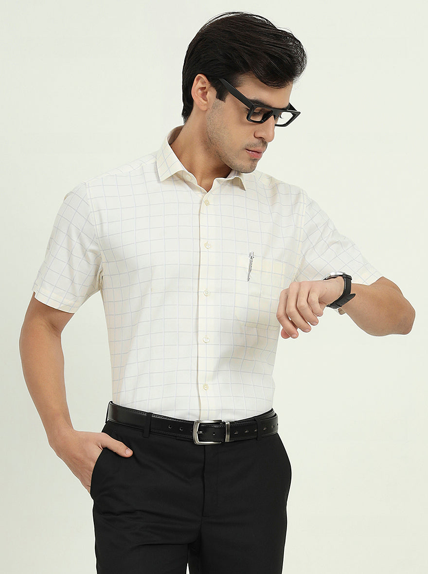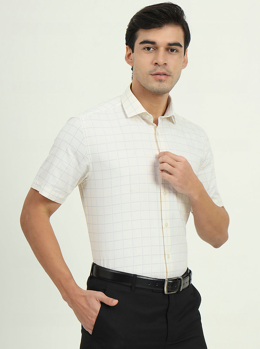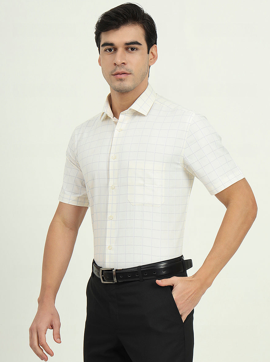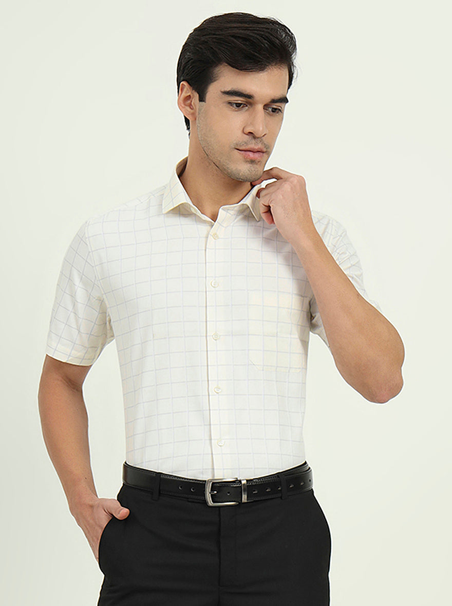 Off-White & Grey Checked Regular Fit Formal Shirt | Greenfire