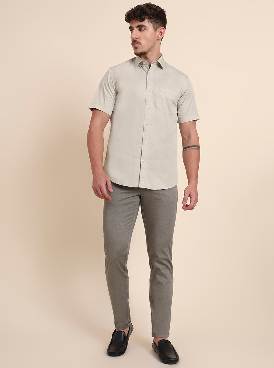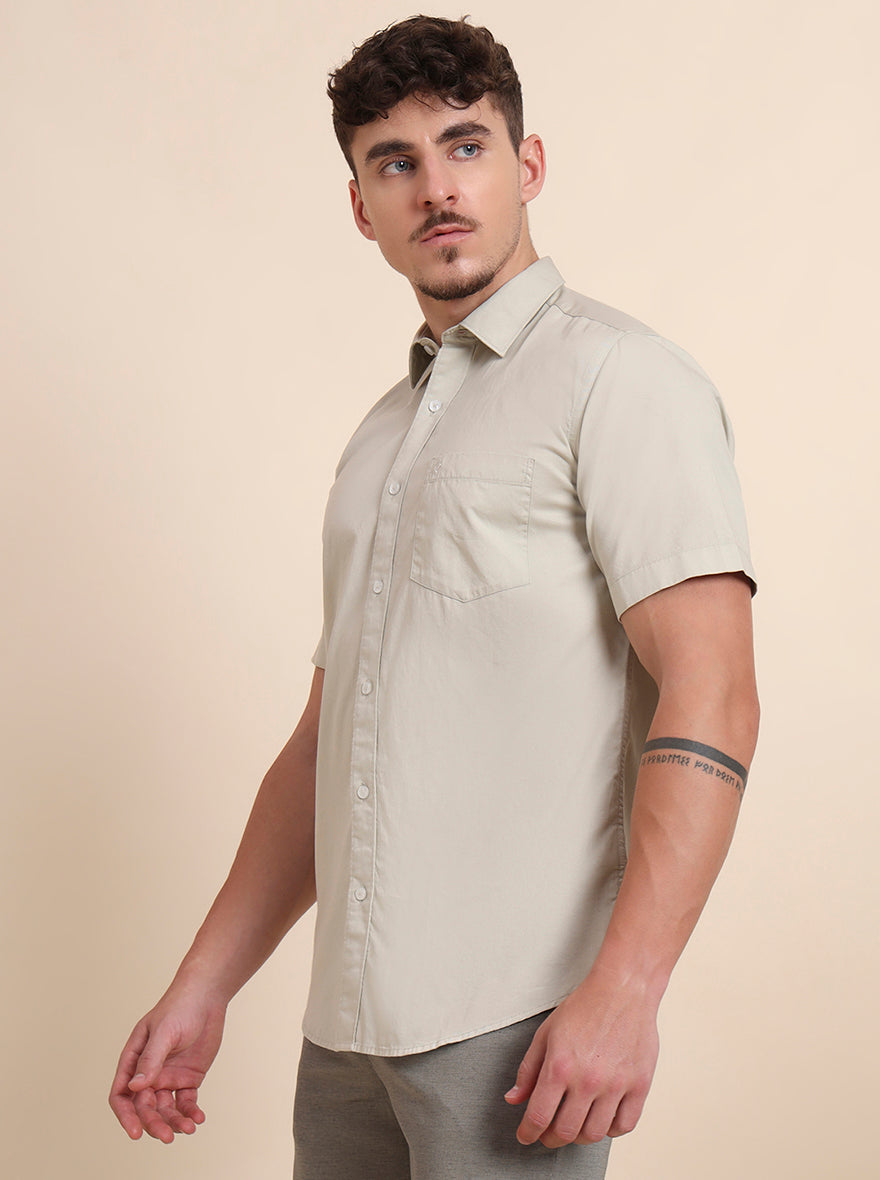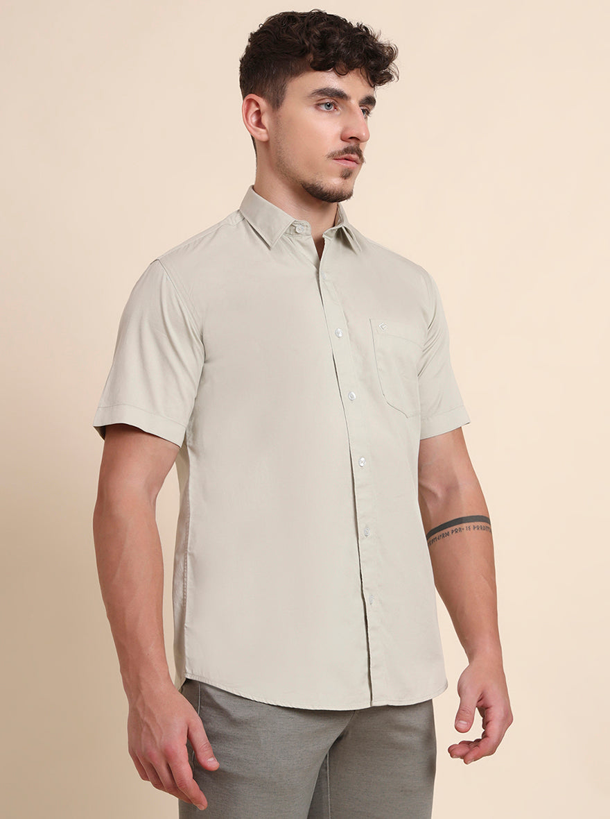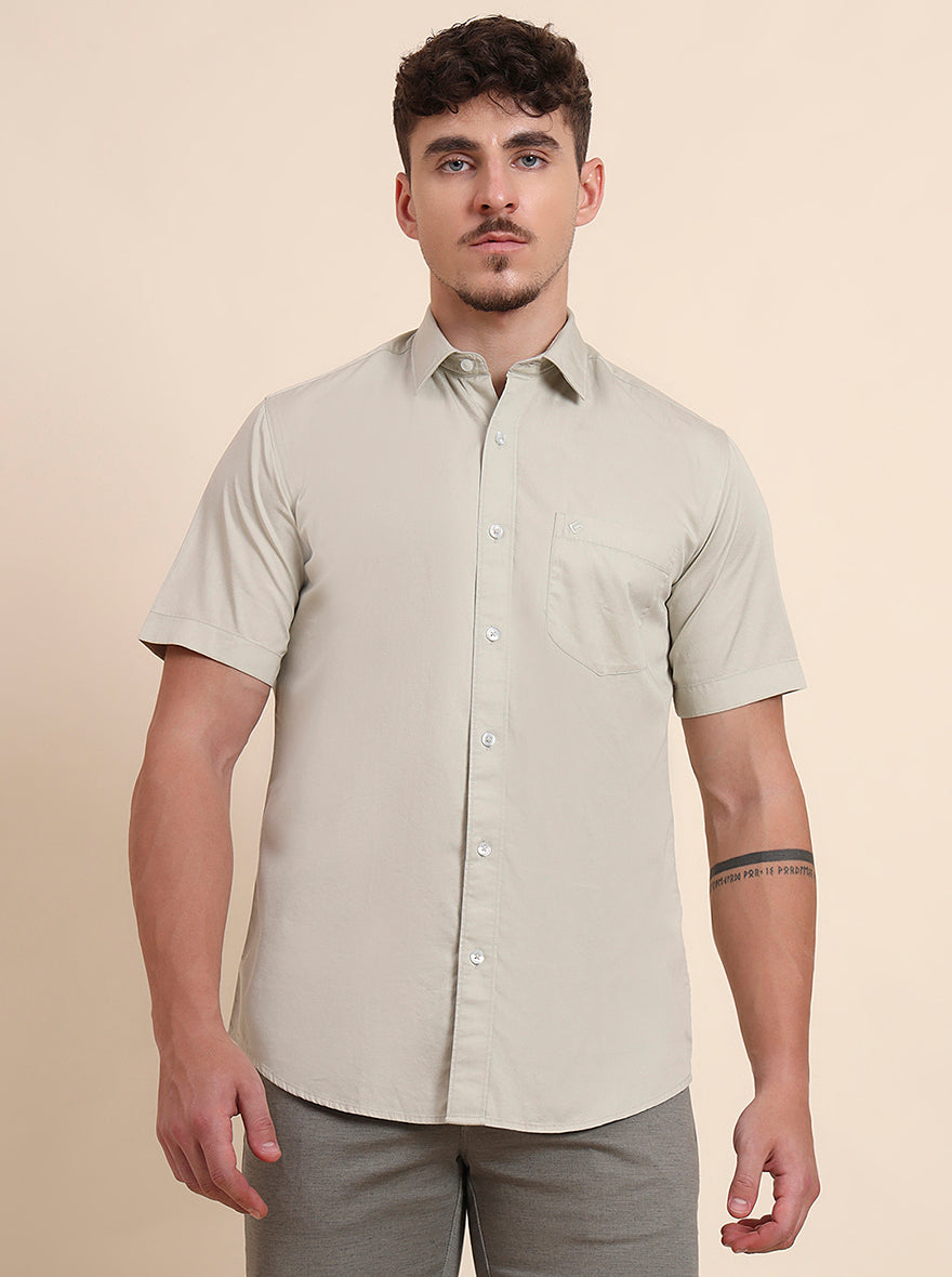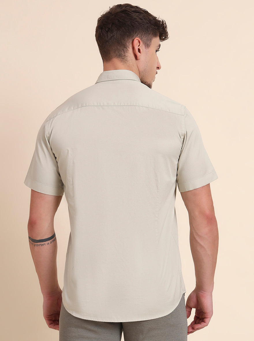 Off-White Solid Smart Fit Semi Casual Shirt | Greenfibre