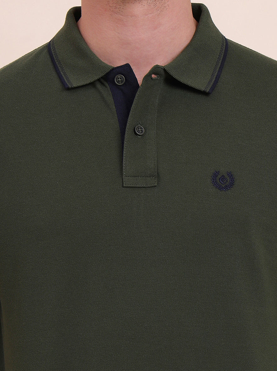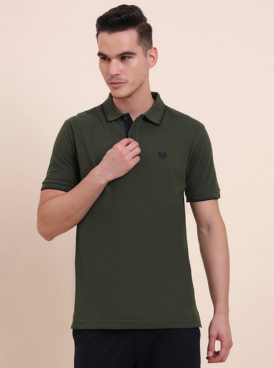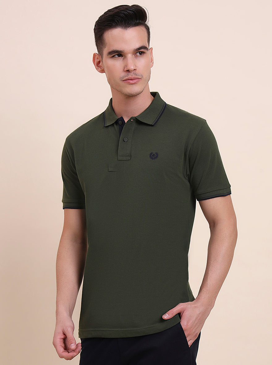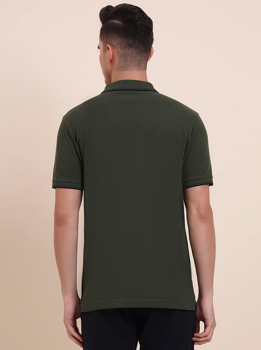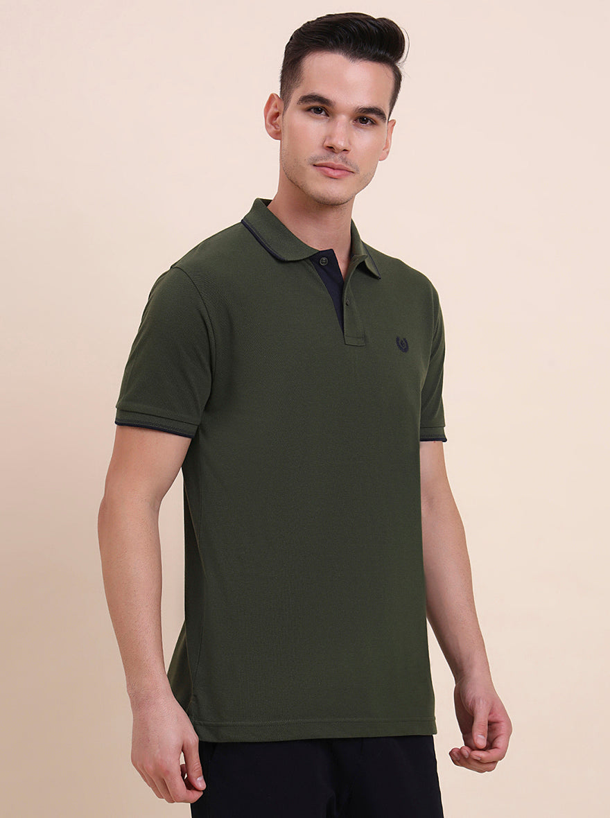 Olive Green Solid Slim Fit Polo T-Shirt | Greenfibre