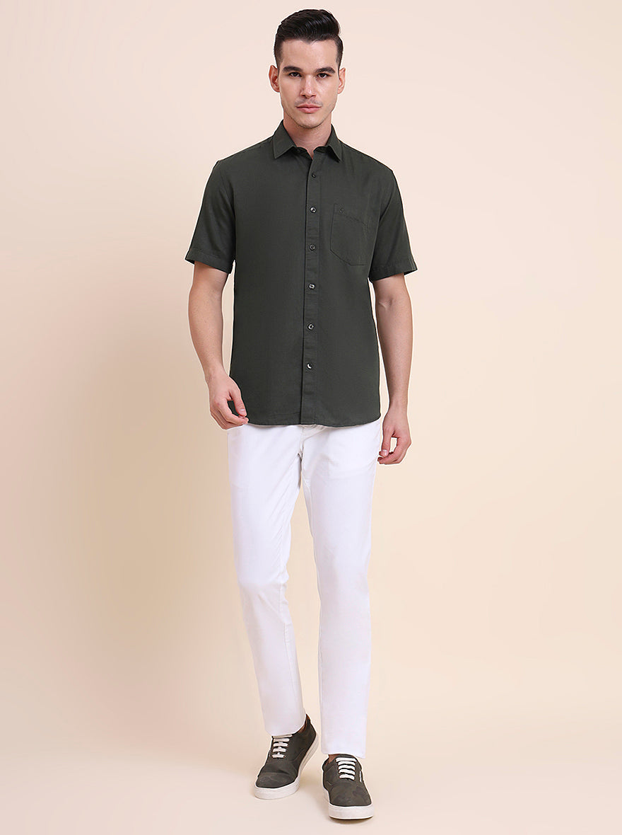 Olive Green Solid Smart Fit Semi Casual Shirt | Greenfibre