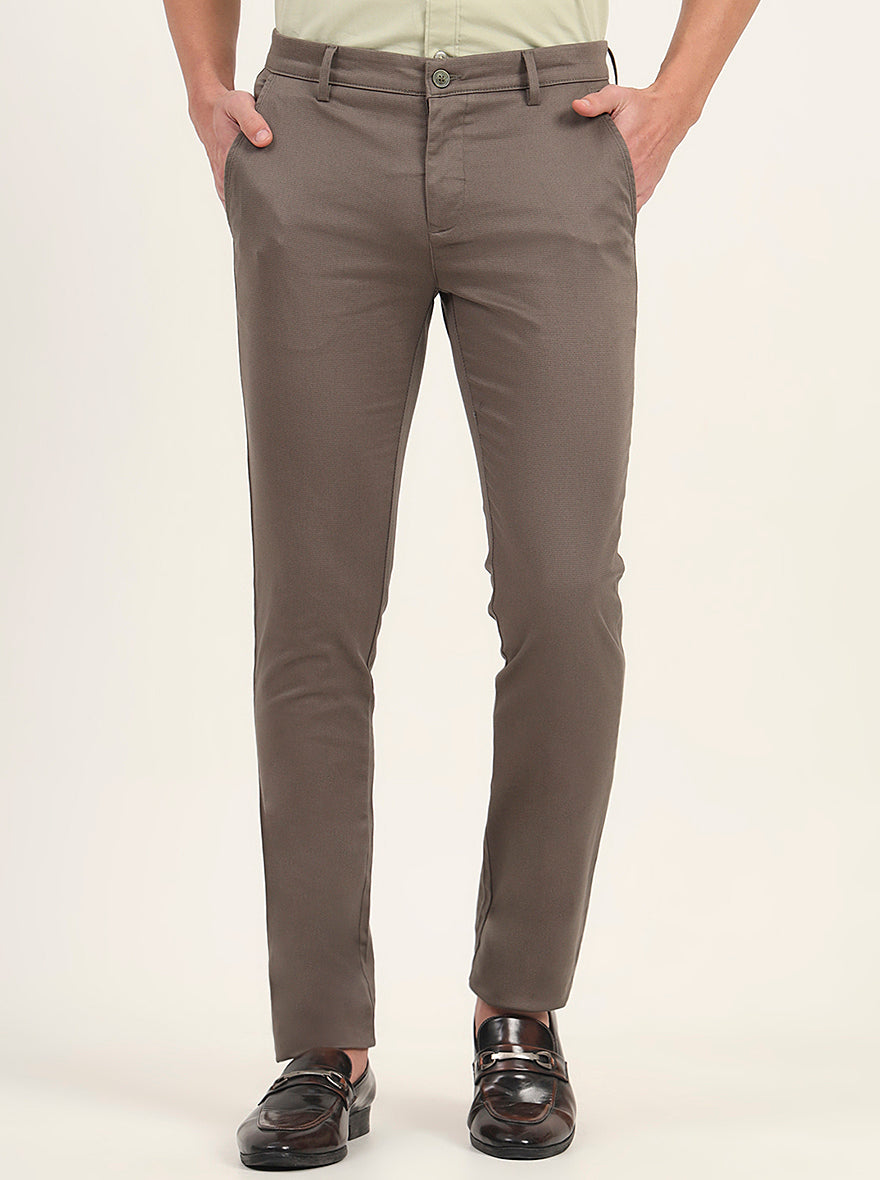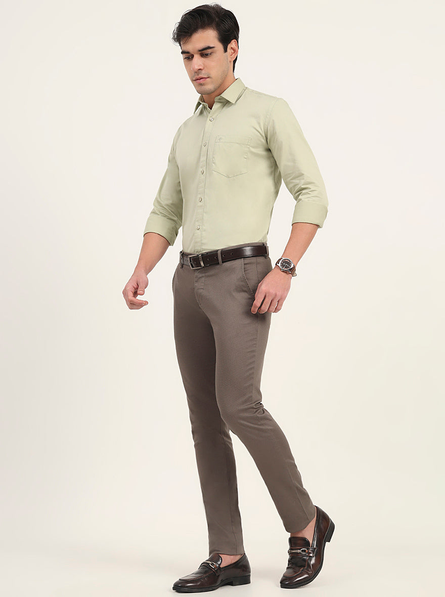 Olive Solid Super Slim Fit Casual Trouser | Greenfibre