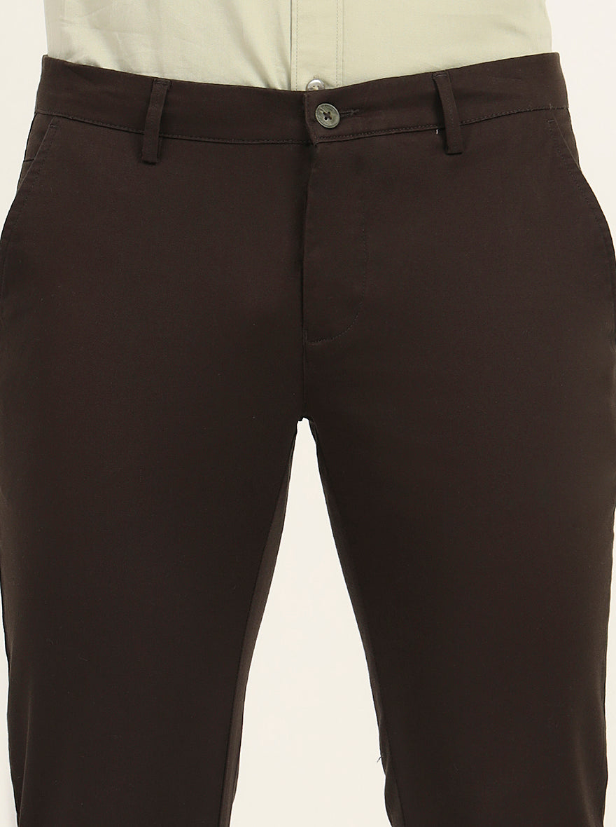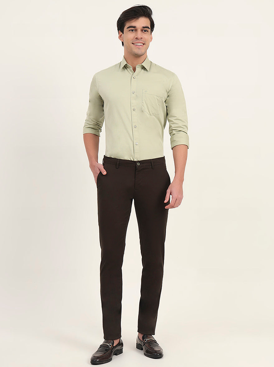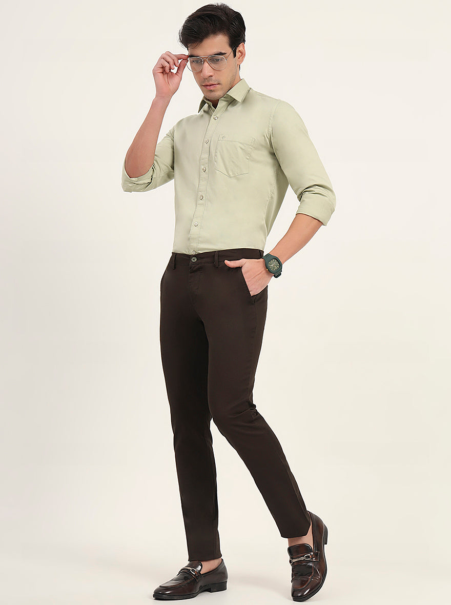 Olive Solid Super Slim Fit Casual Trouser | Greenfibre