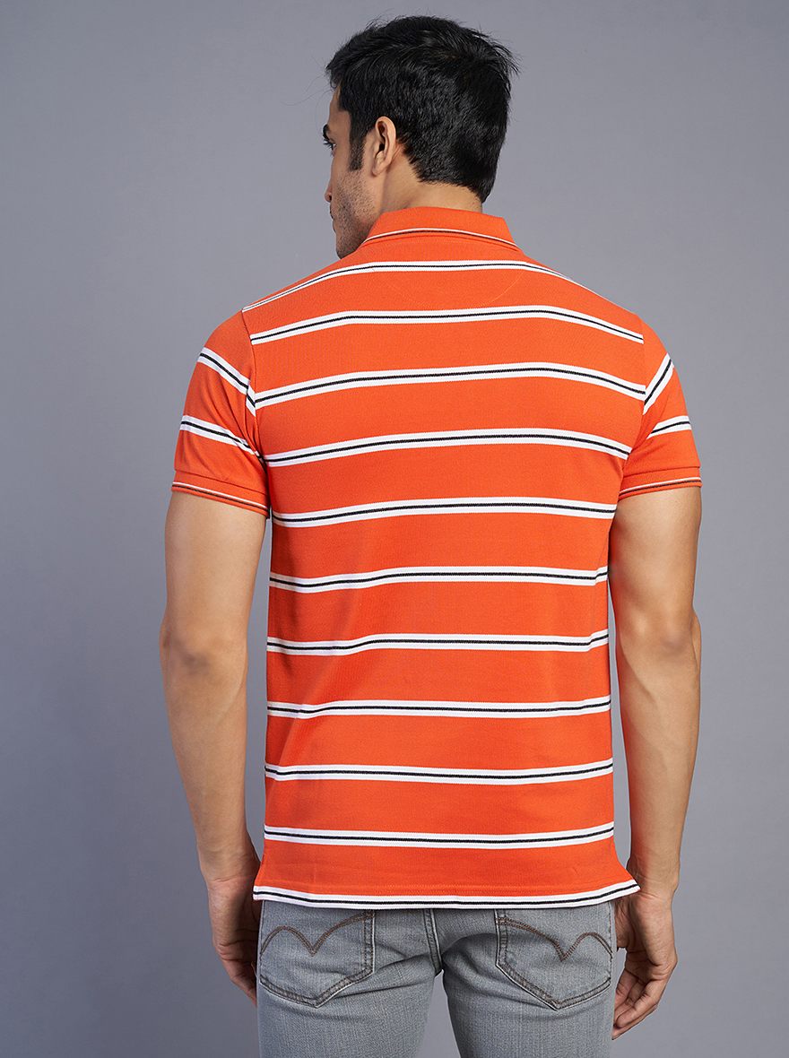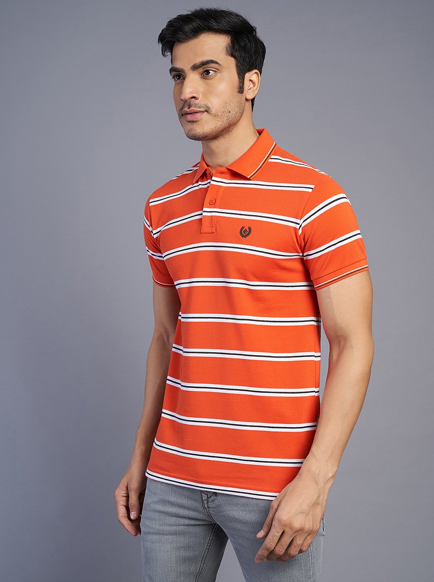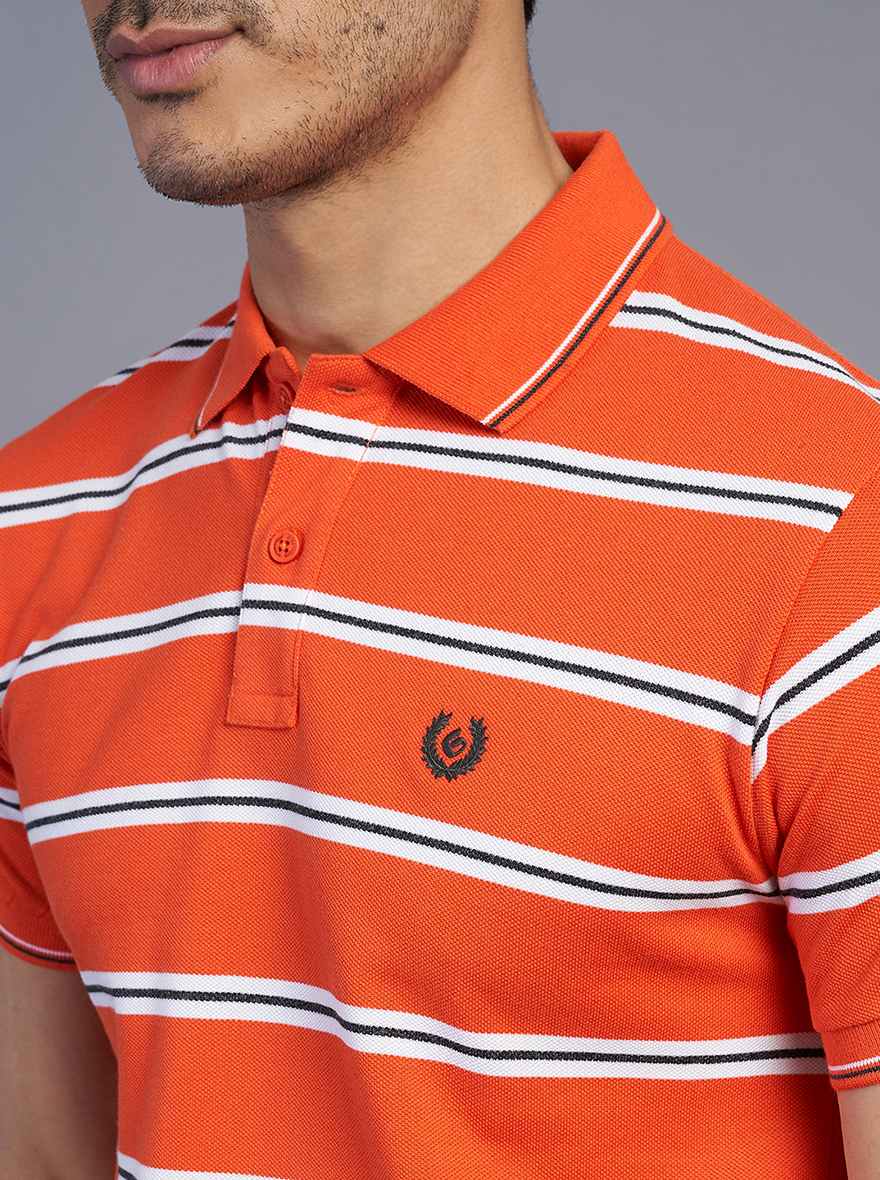 Orange Striped Slim Fit Polo T-Shirt | Greenfibre