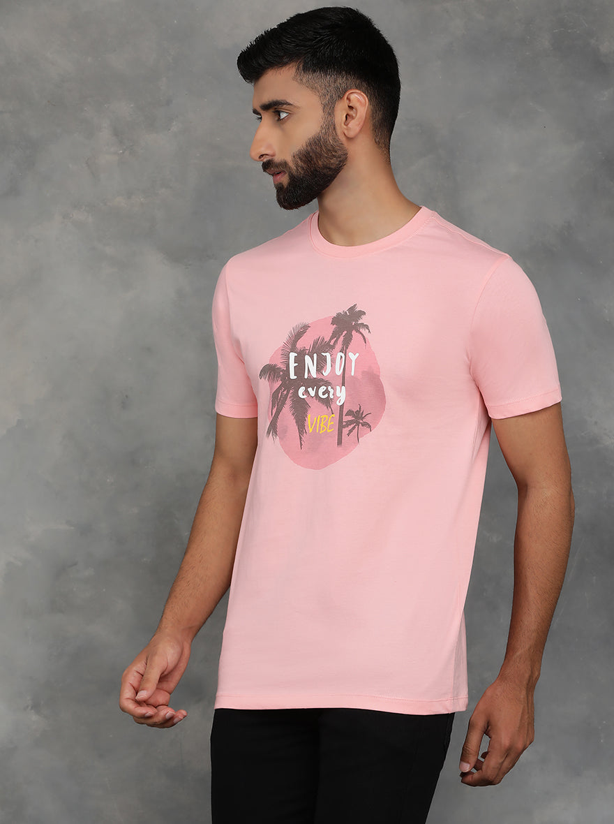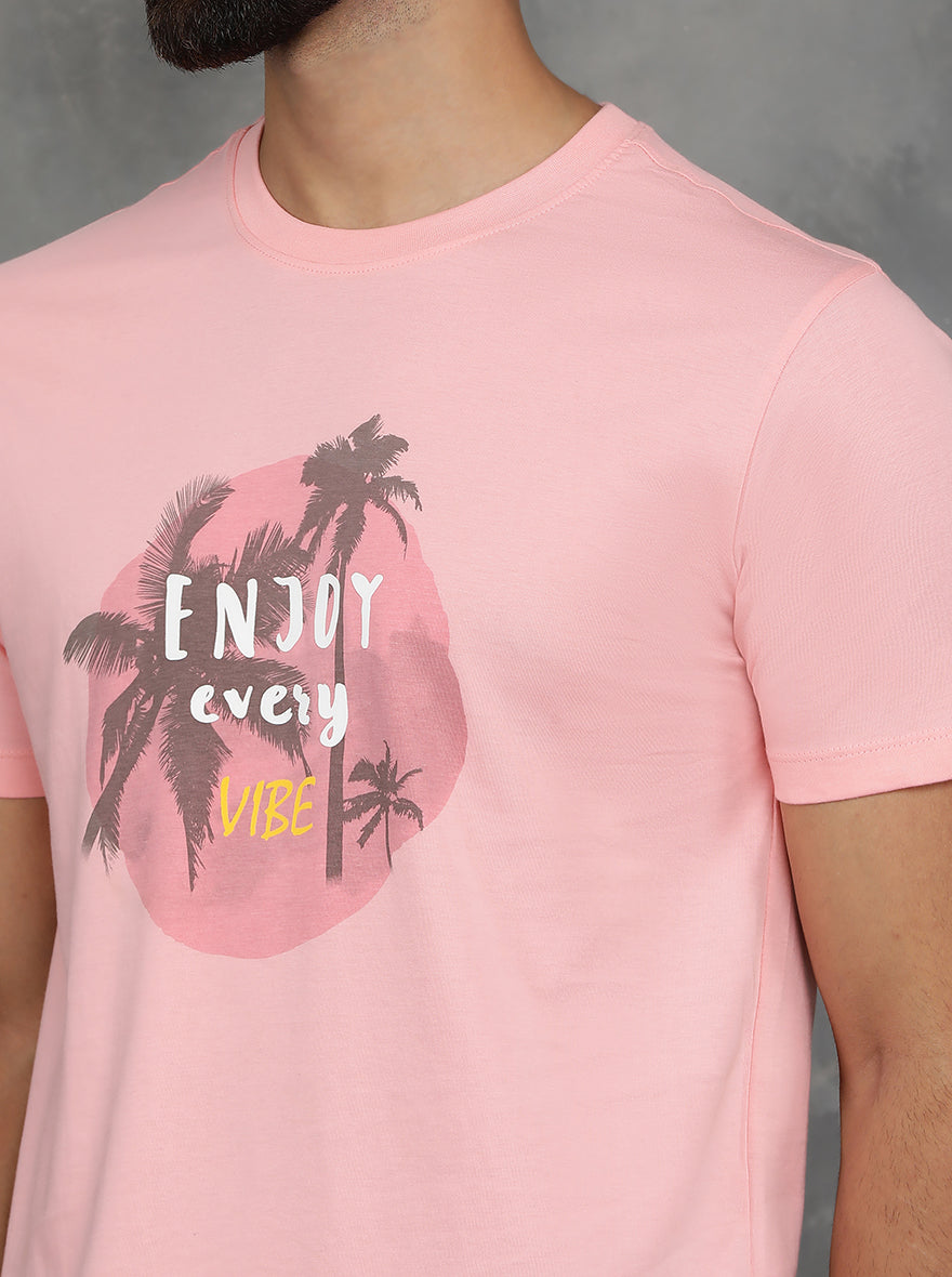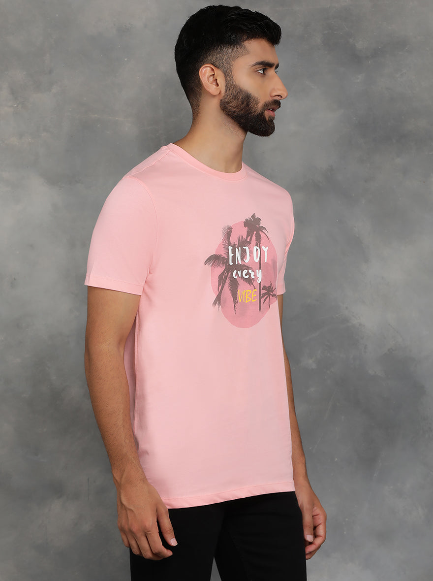 Peach Printed Slim Fit T-Shirt | GreenFibre