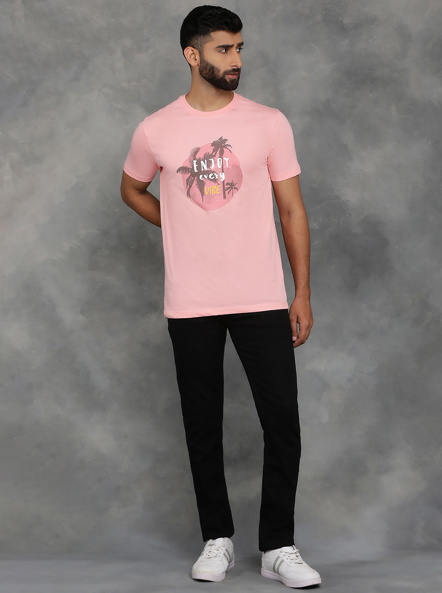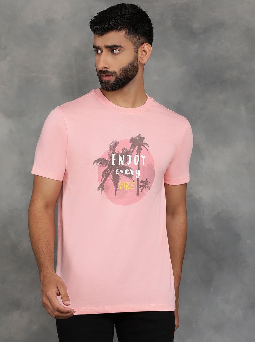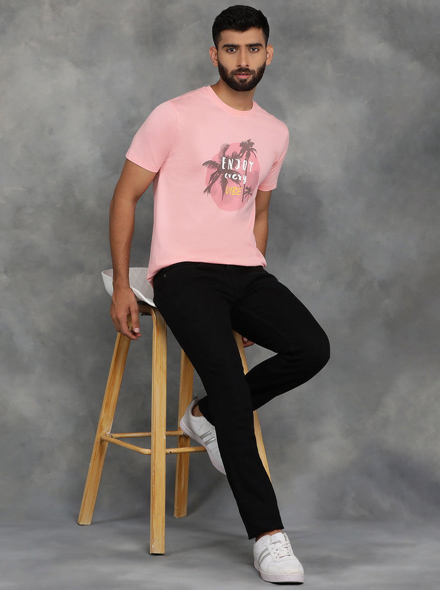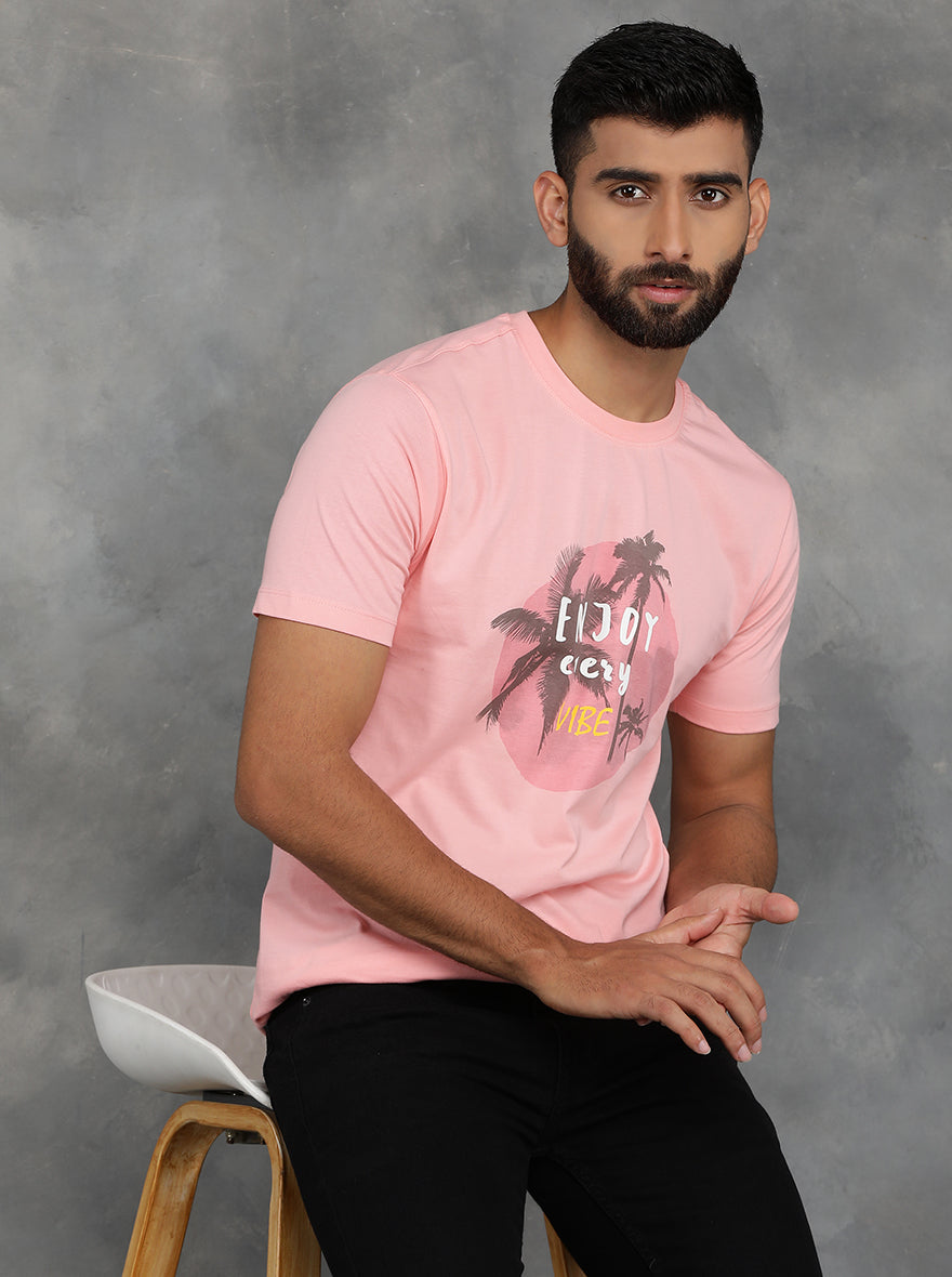 Peach Printed Slim Fit T-Shirt | GreenFibre