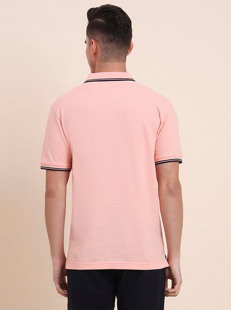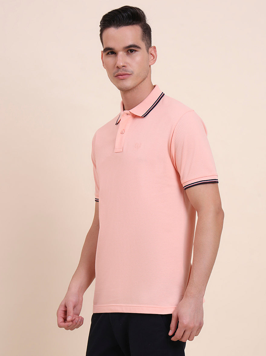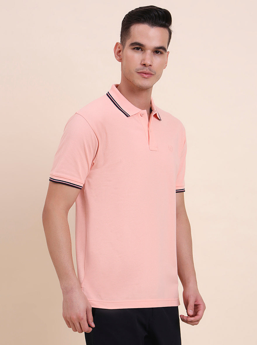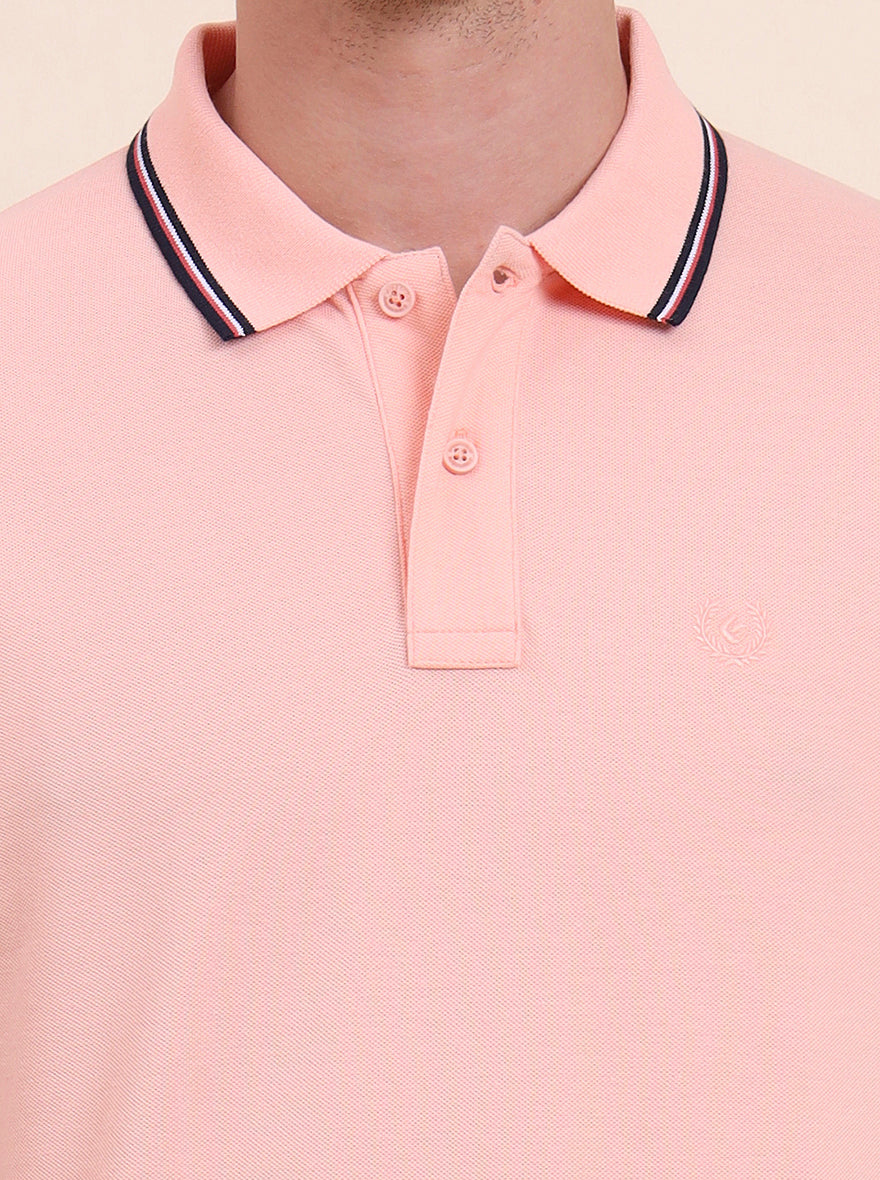 Peach Solid Slim Fit Polo T-Shirt | Greenfibre