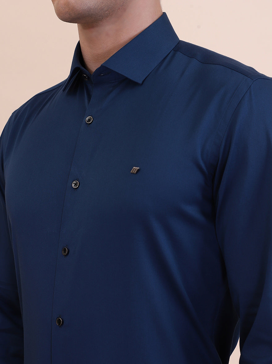 Peacock Blue Solid Slim Fit Party Wear Shirt | Greenfibre