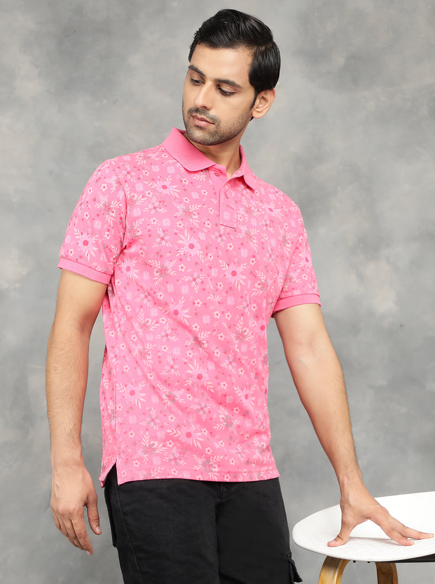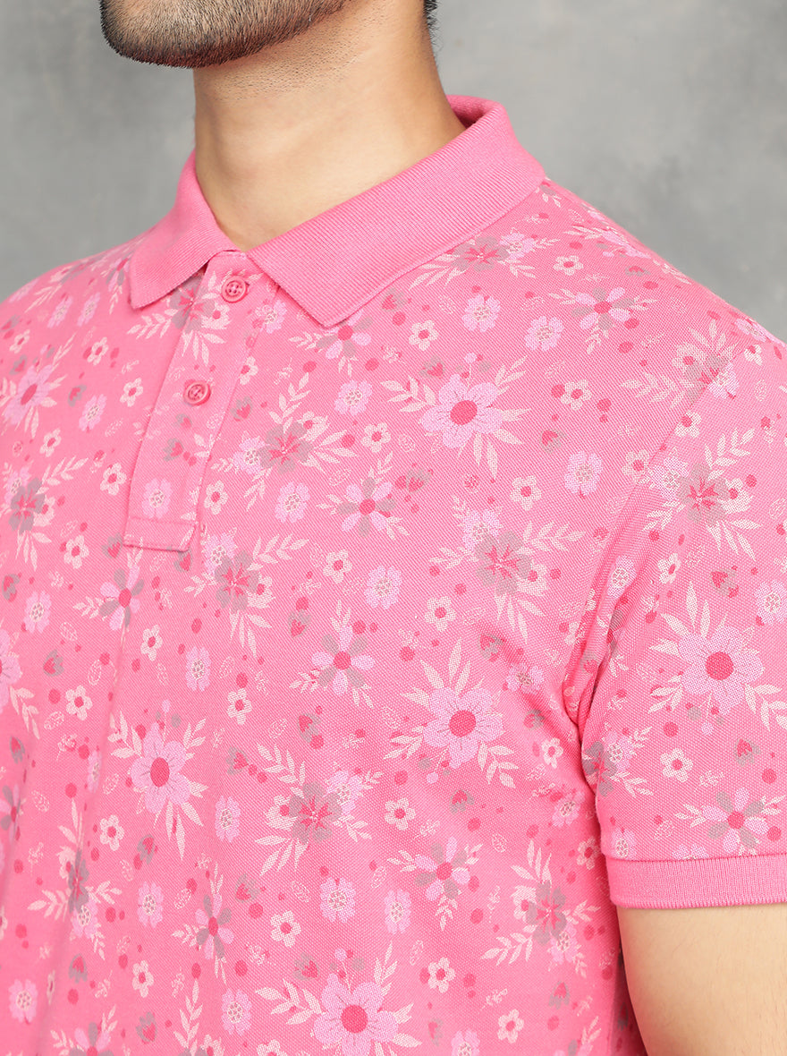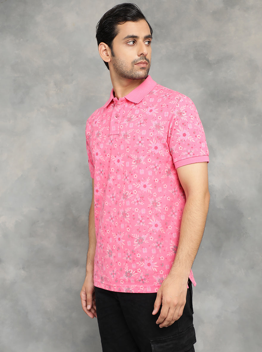 Pink Printed Slim Fit Polo T-Shirt | GreenFibre