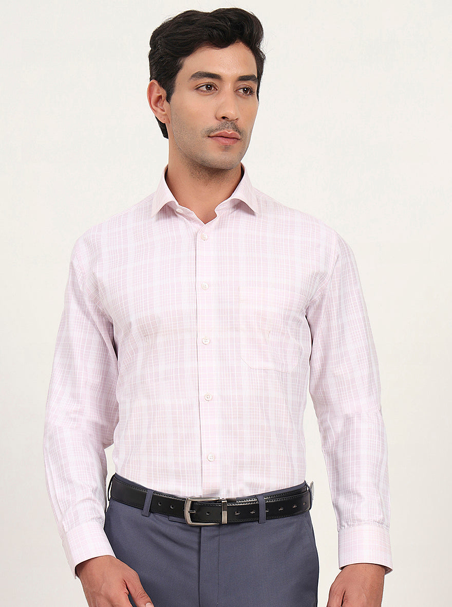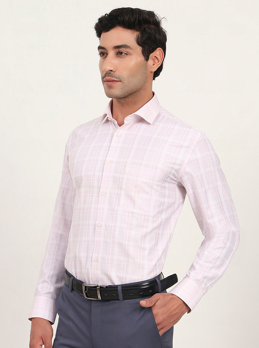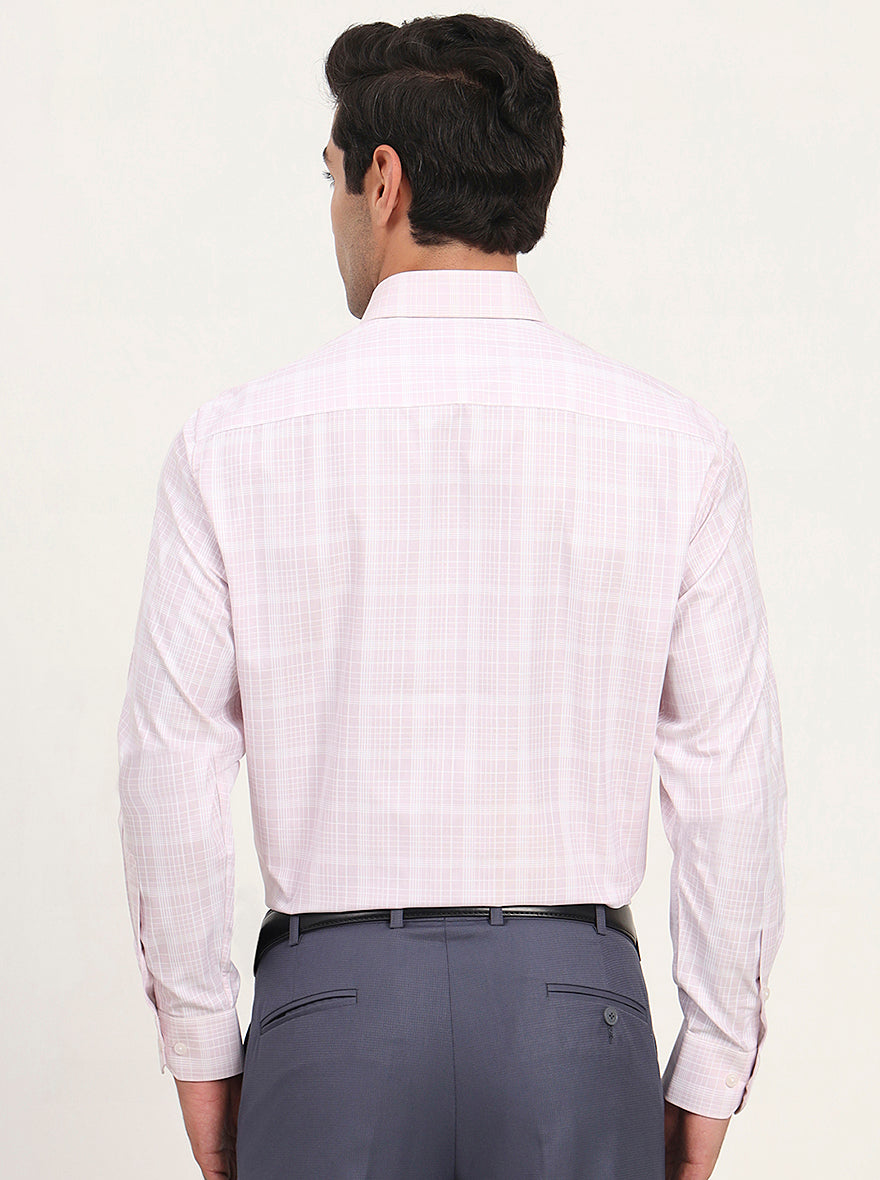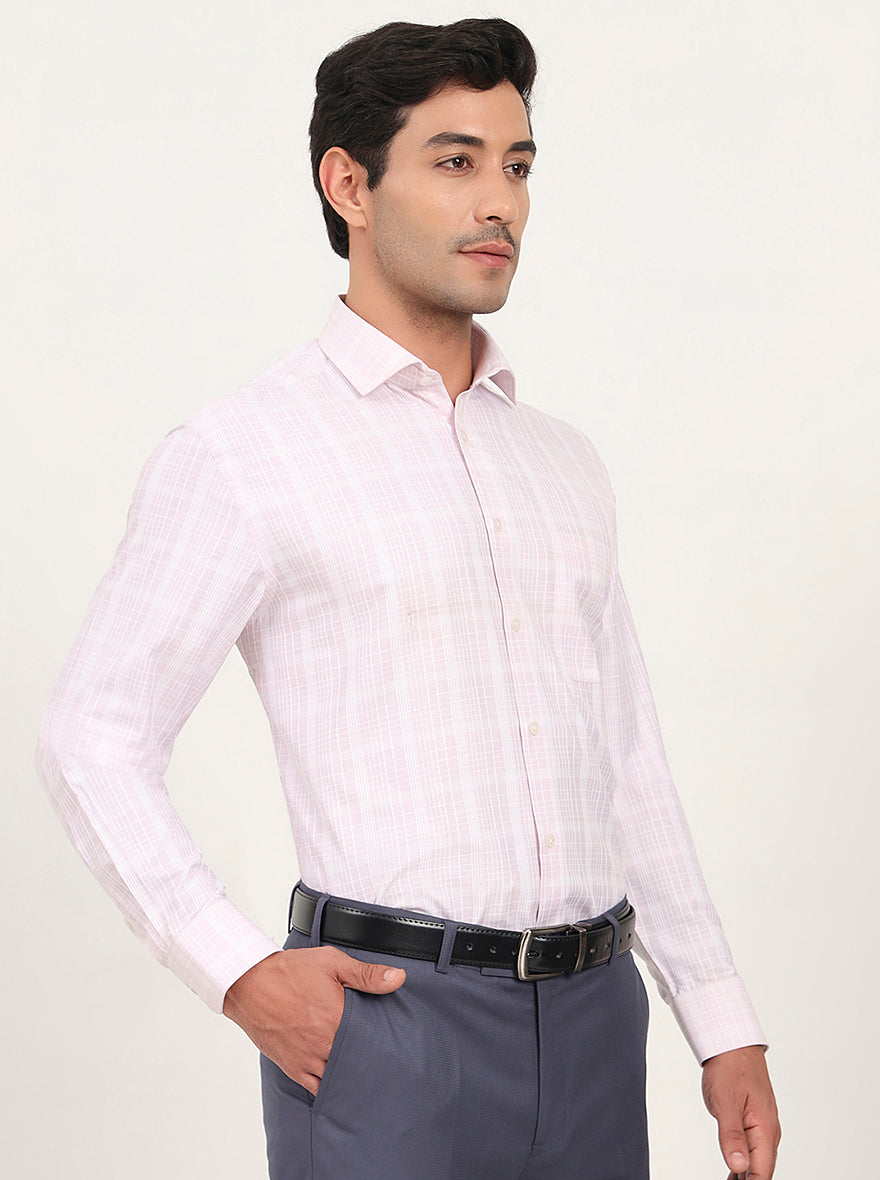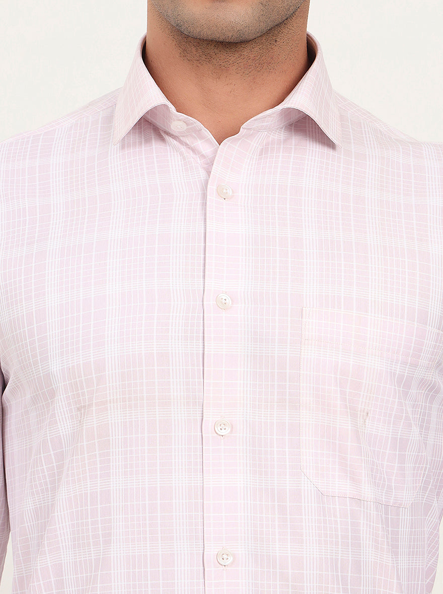 Pink & White Checked Regular Fit Formal Shirt | Greenfibre