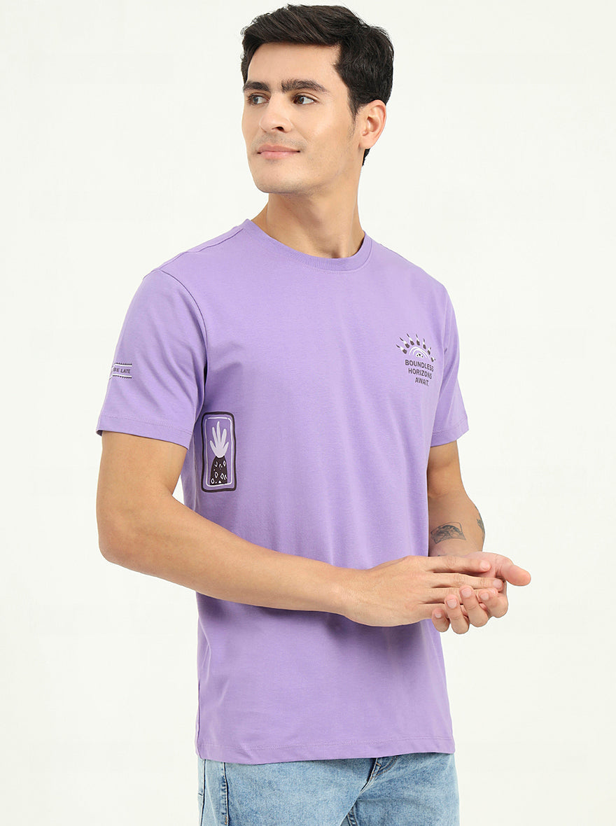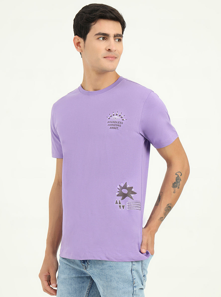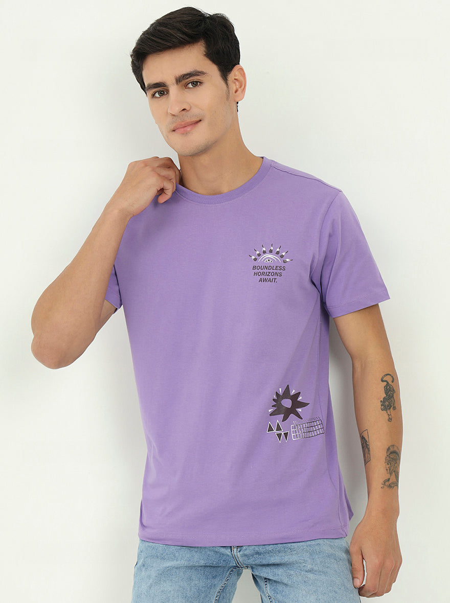 Purple Printed Slim Fit T-Shirt | Greenfibre