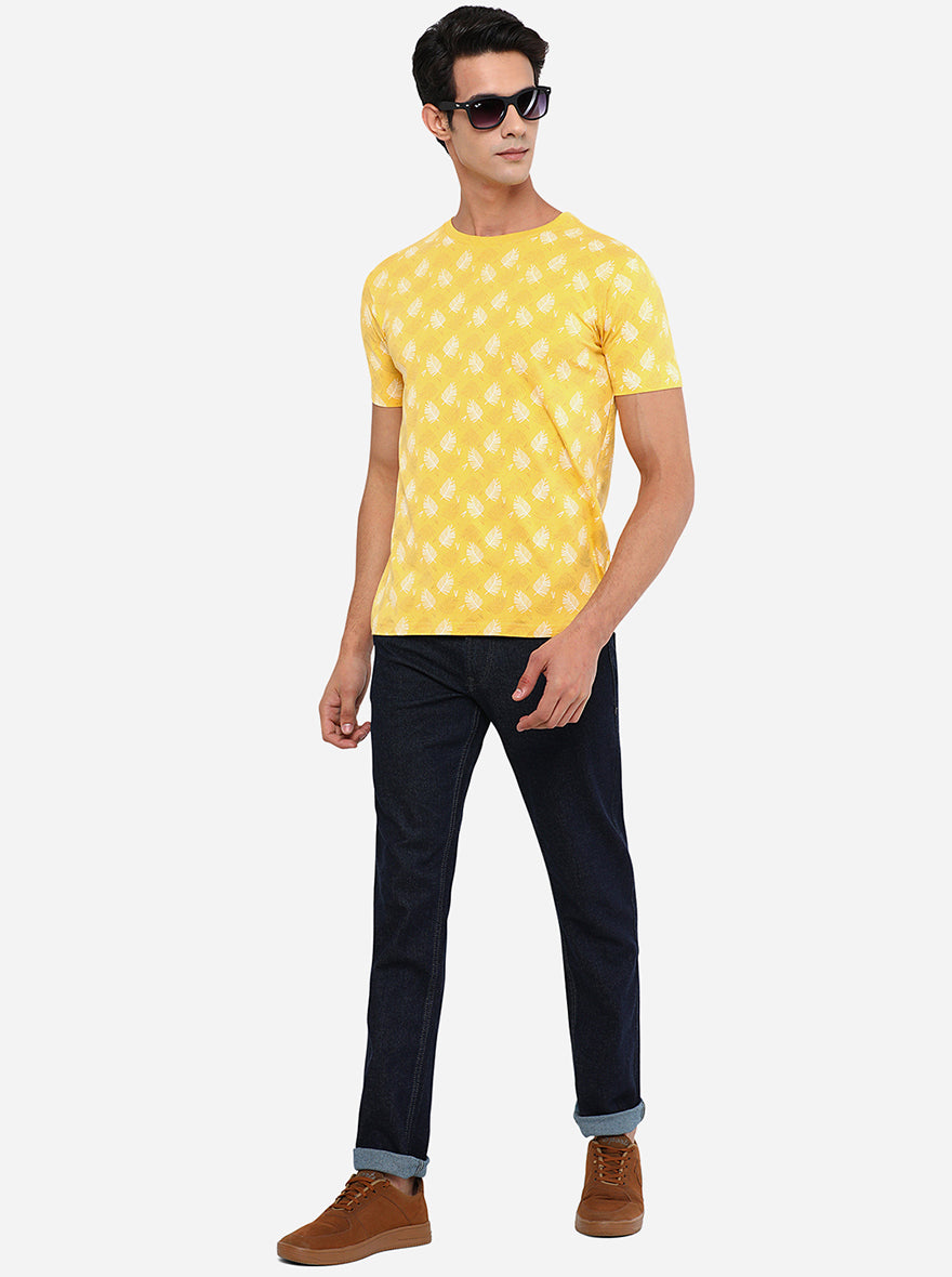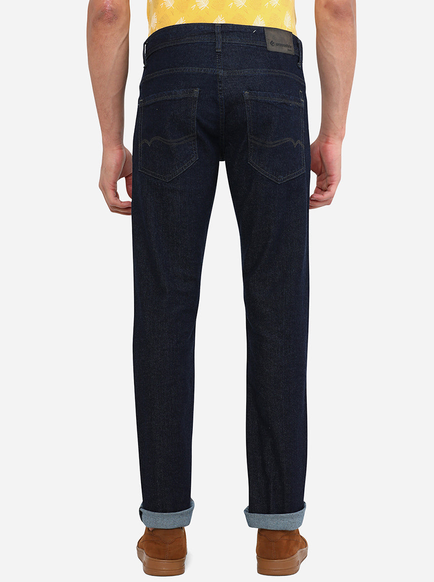 Details: This Greenfibre Men's Raw Blue Jeans is suitable with printed T-shirts. Made out of Cotton Stretch fabric ensuring comfort, breathability, and excellent stretchability all day. Offers a Mid Rise waist with a straight fit and a flat front for a sleek look that has been elevated with a Washed pattern. Features five pockets, zipper, and button for closure. Match it with a T-shirt of your choice and a pair of canvas for an iconic look. Perfect for semi-formal looks.