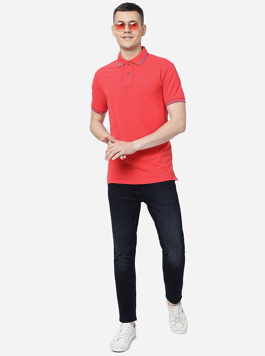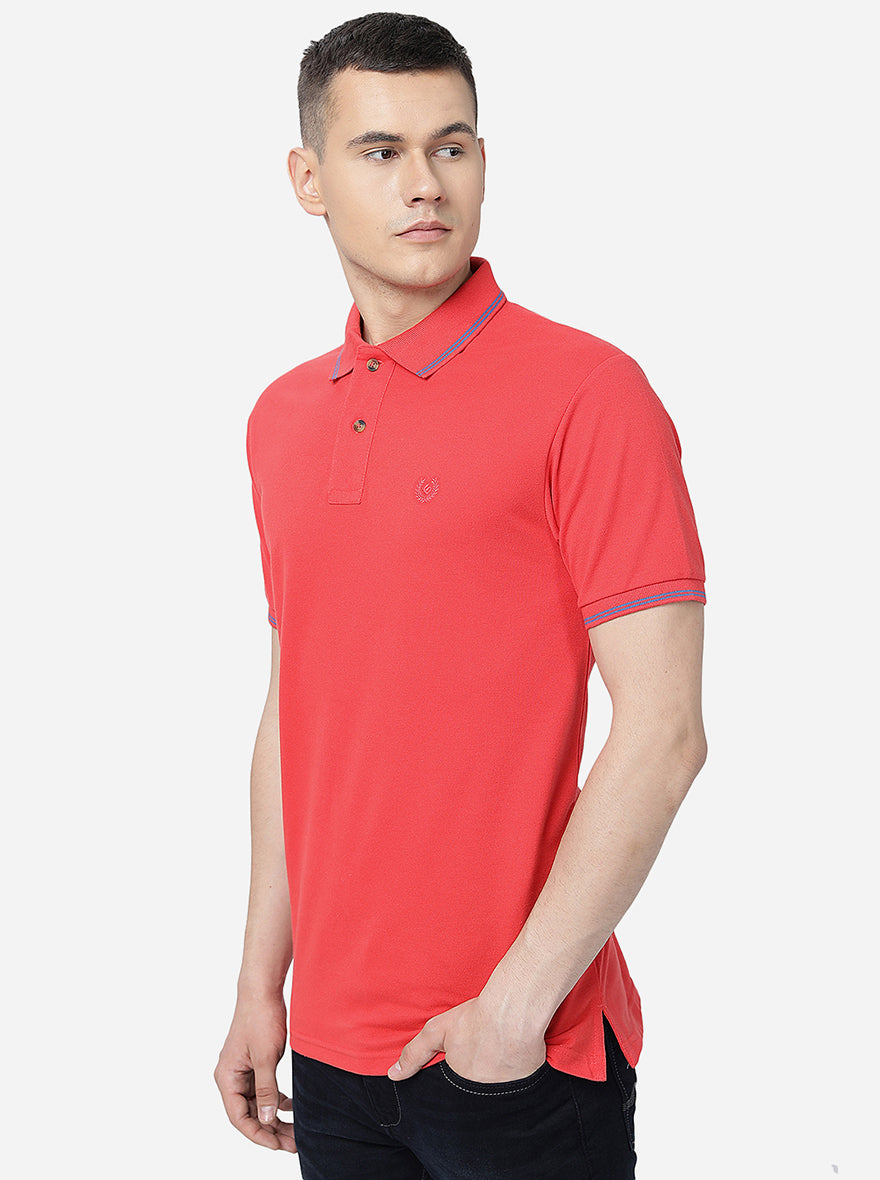 Red Solid Slim Fit Polo T-Shirt | Greenfibre