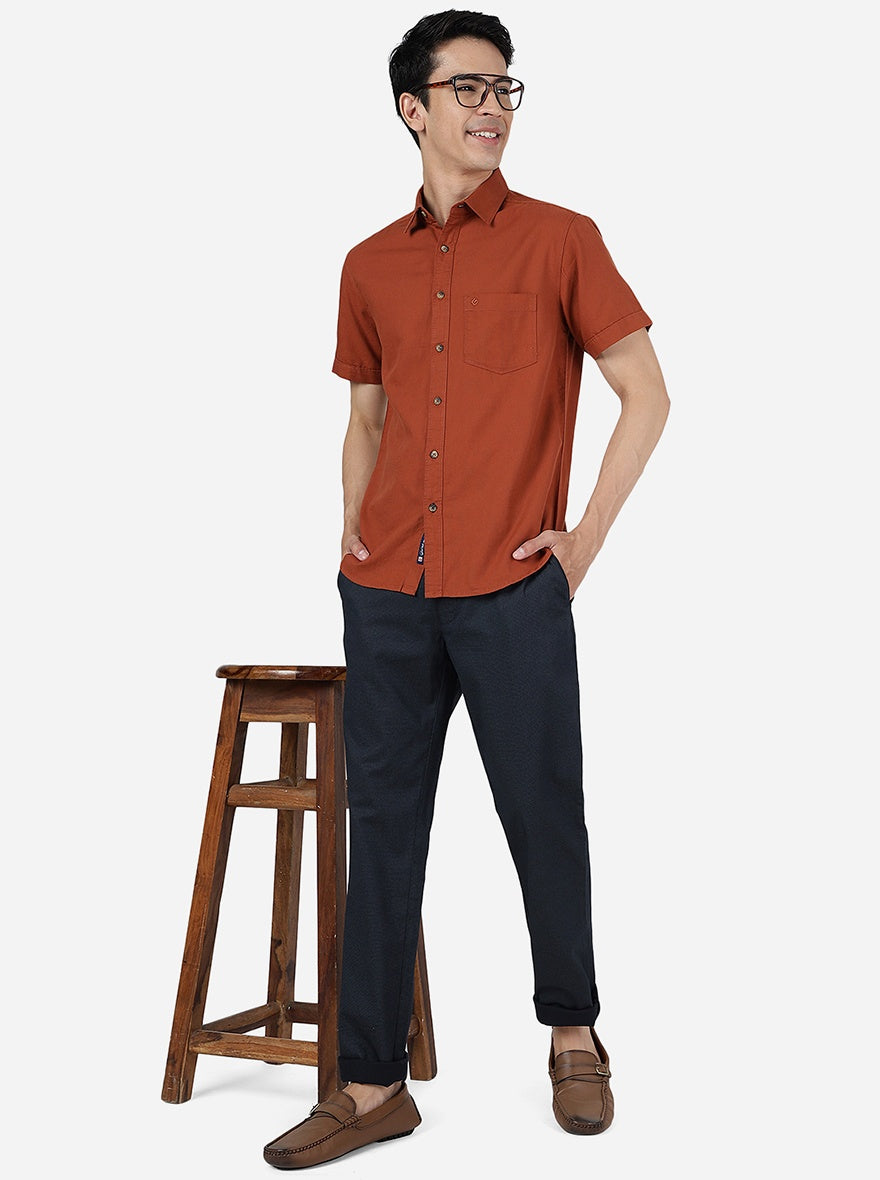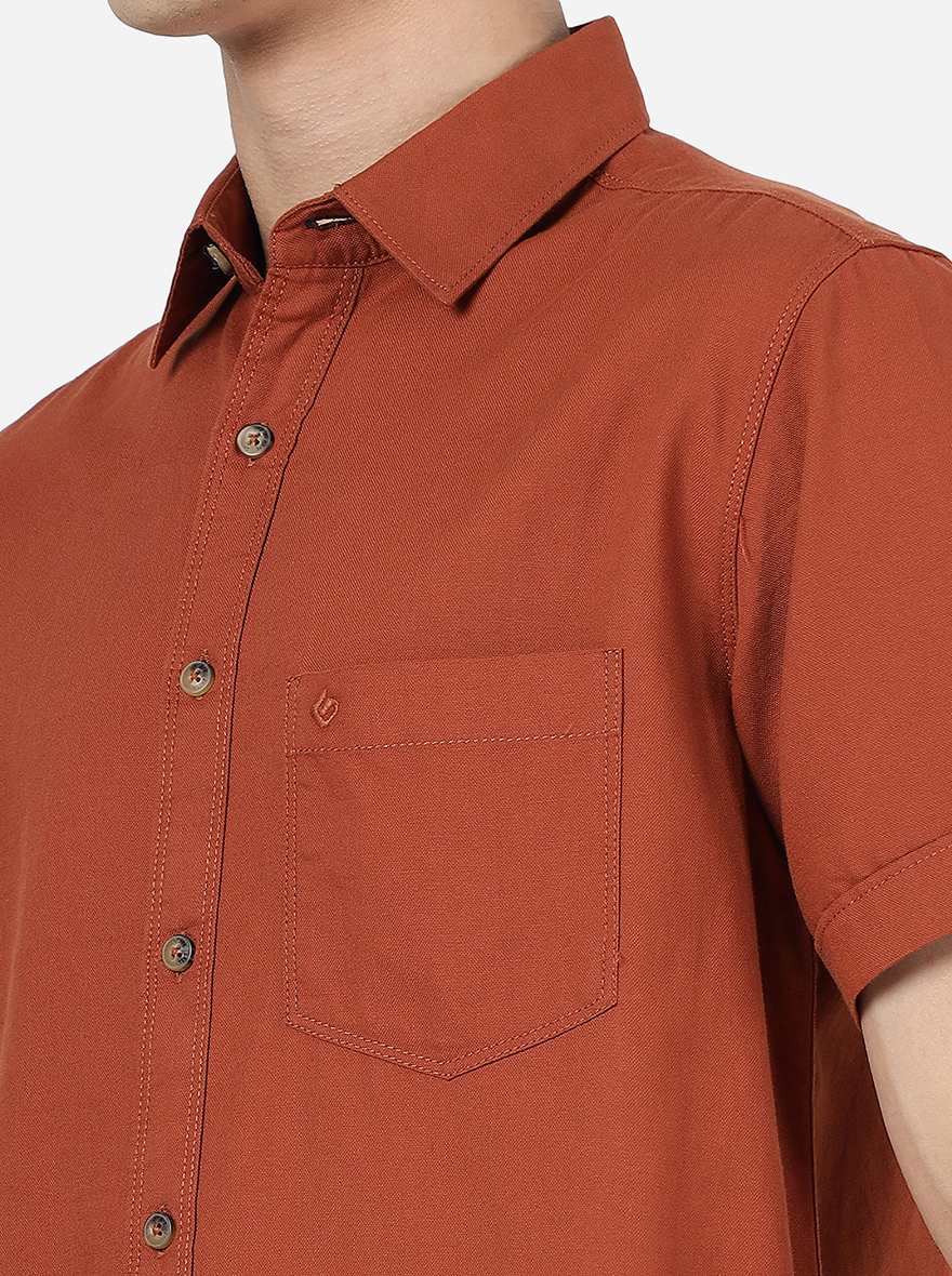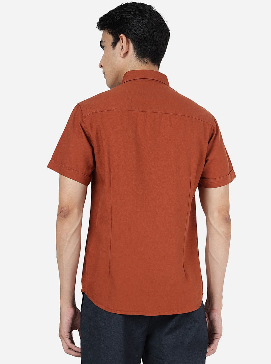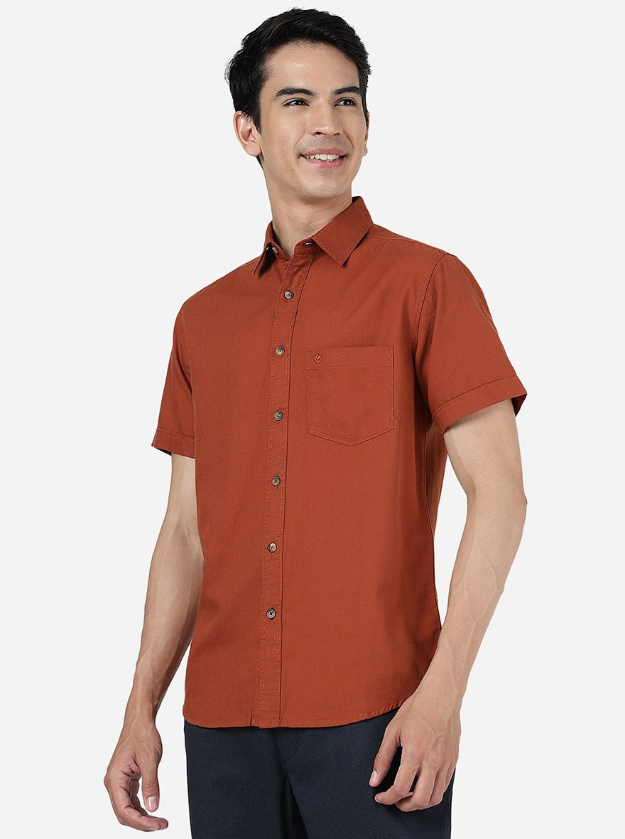Rust Solid Slim Fit Casual Shirt | Greenfibre