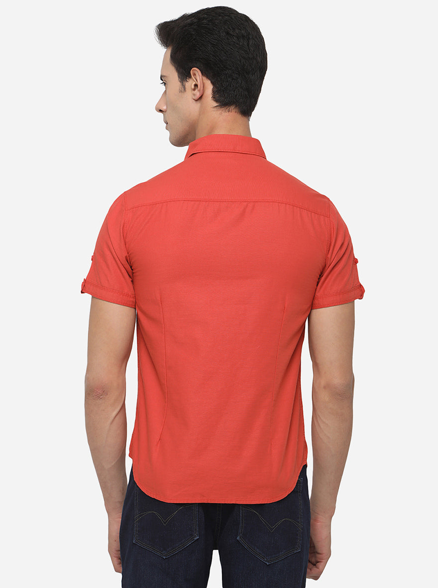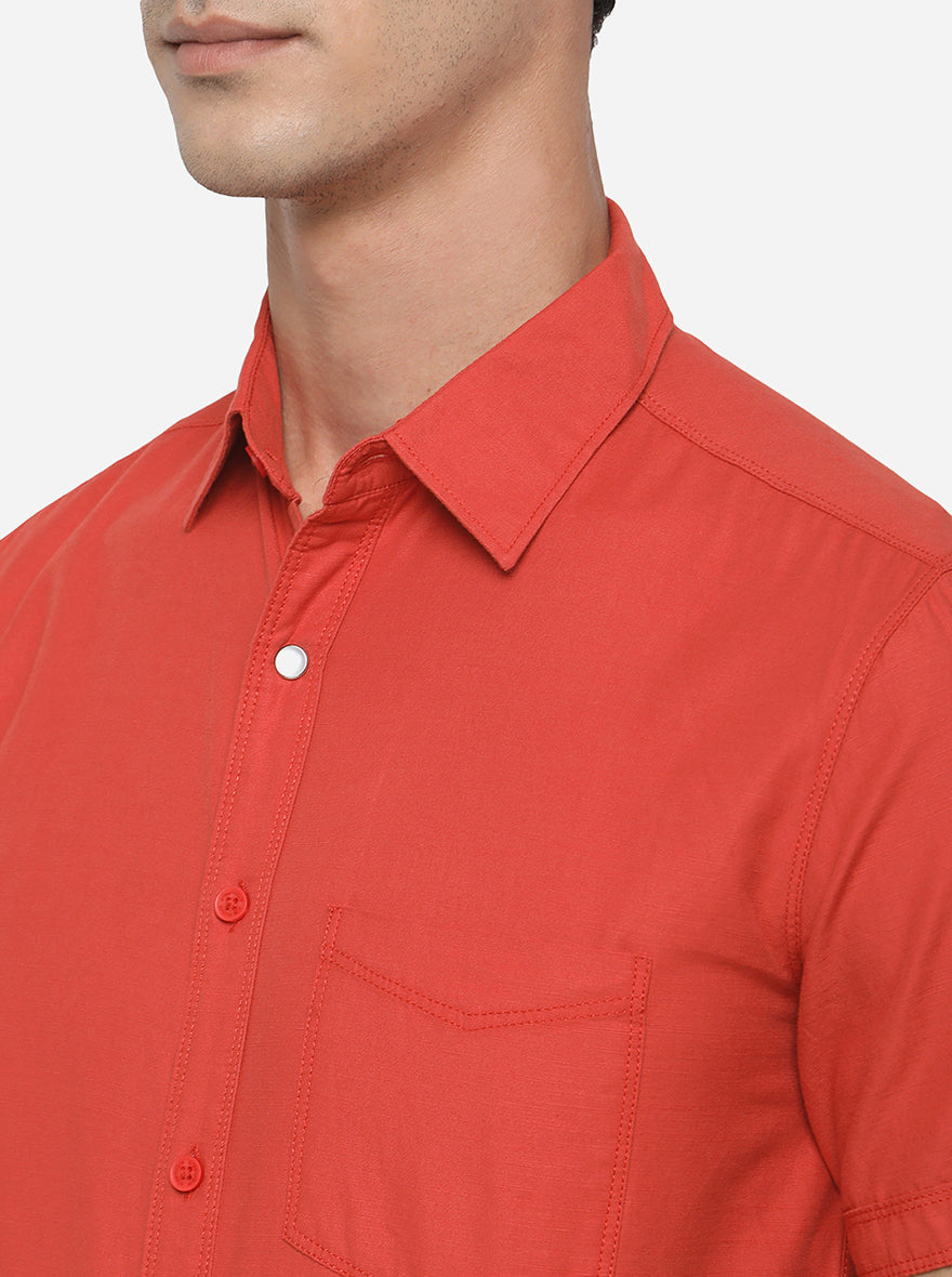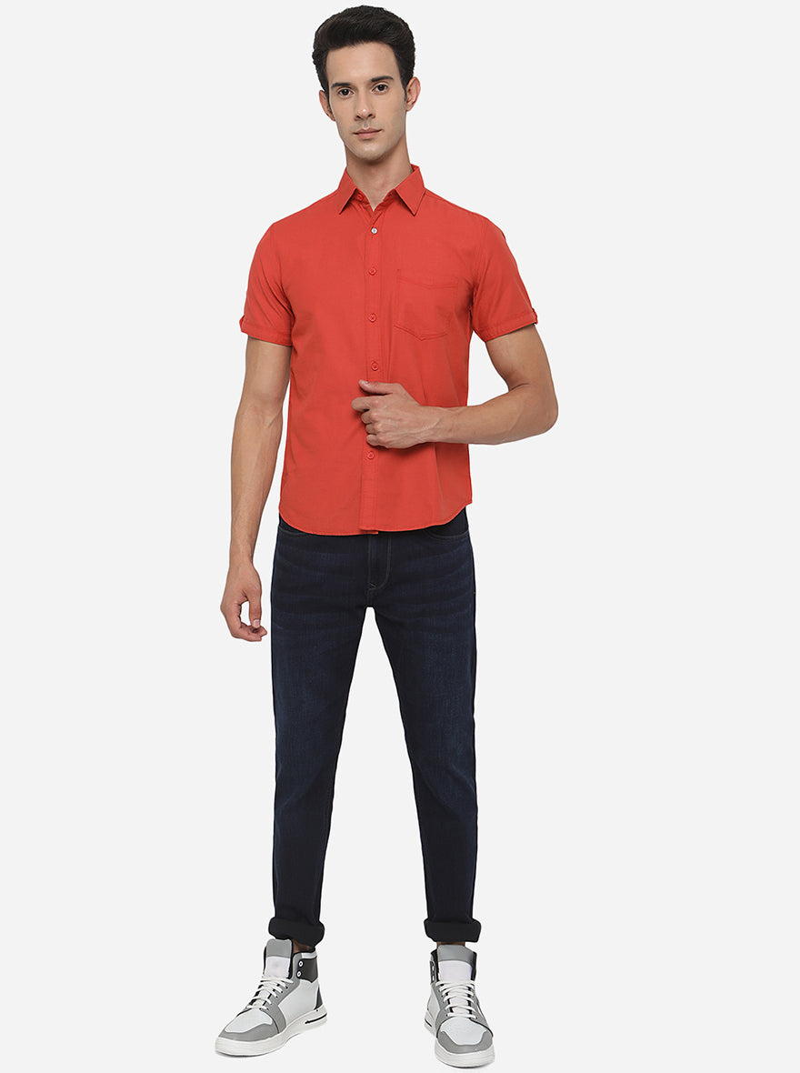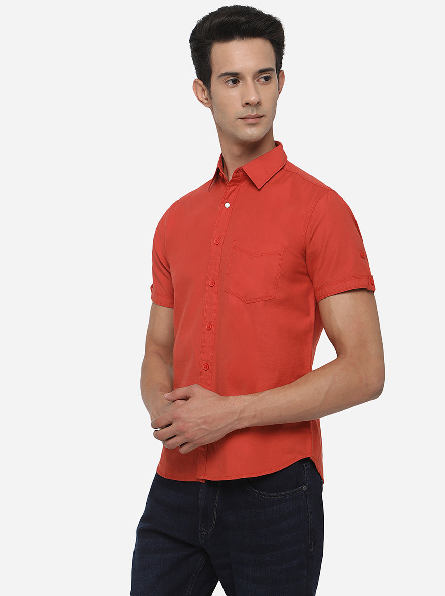 Rust Solid Slim Fit Semi Casual Shirt | Greenfibre