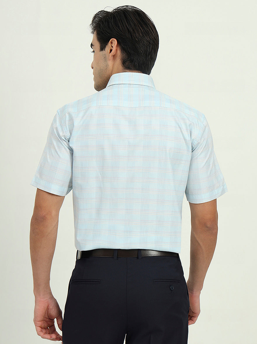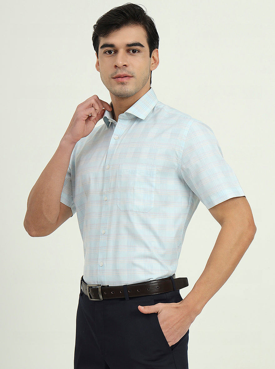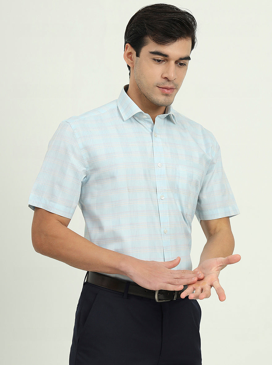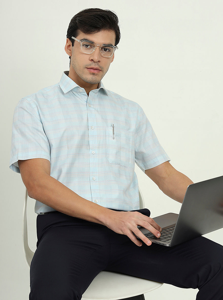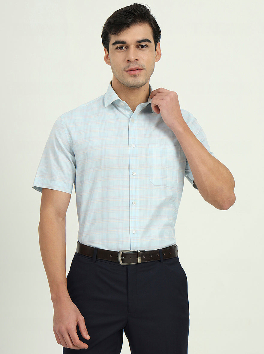 Details: Stay cool and stylish with the Greenfire Sea Blue Solid Half Sleeve Formal Shirt. Its refreshing color and comfortable blend are perfect for warm weather.