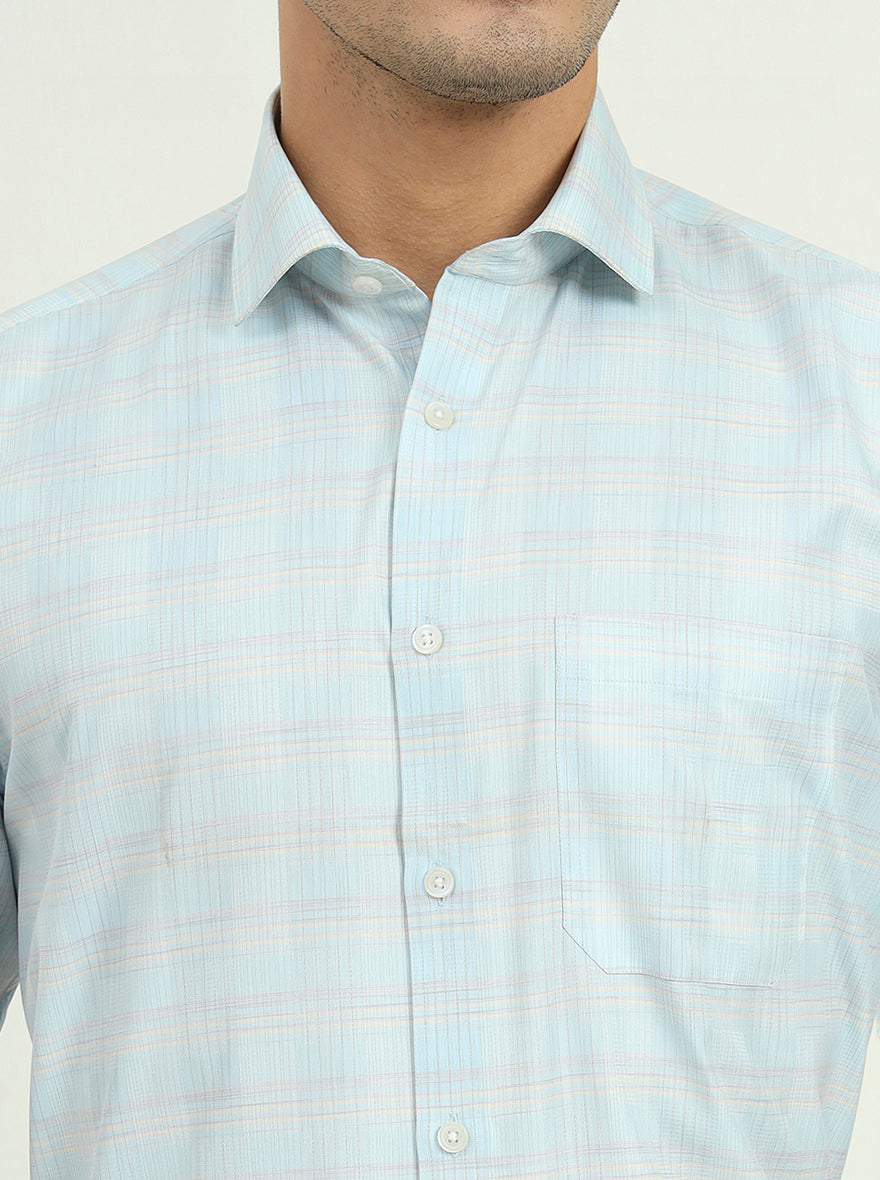 Sea Blue Solid Regular Fit Formal Shirt | Greenfire