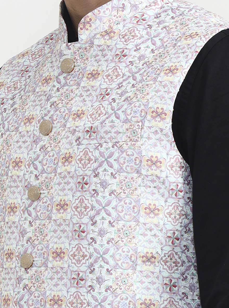 Sea Green Printed Waistcoat | Greenfibre